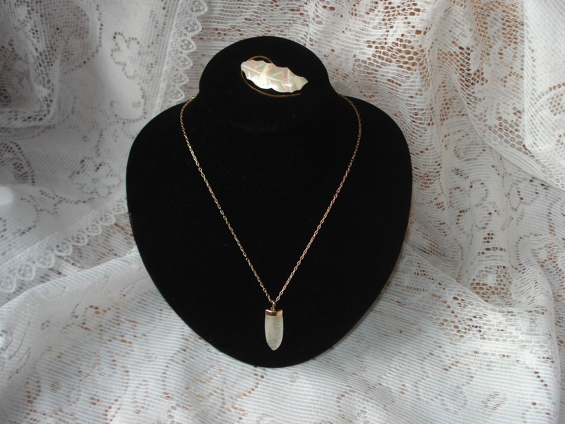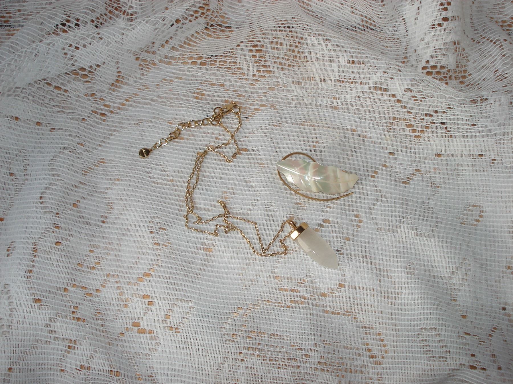 Vintage Mother of Pearl Brooch and Signed Stella and Dot Necklace