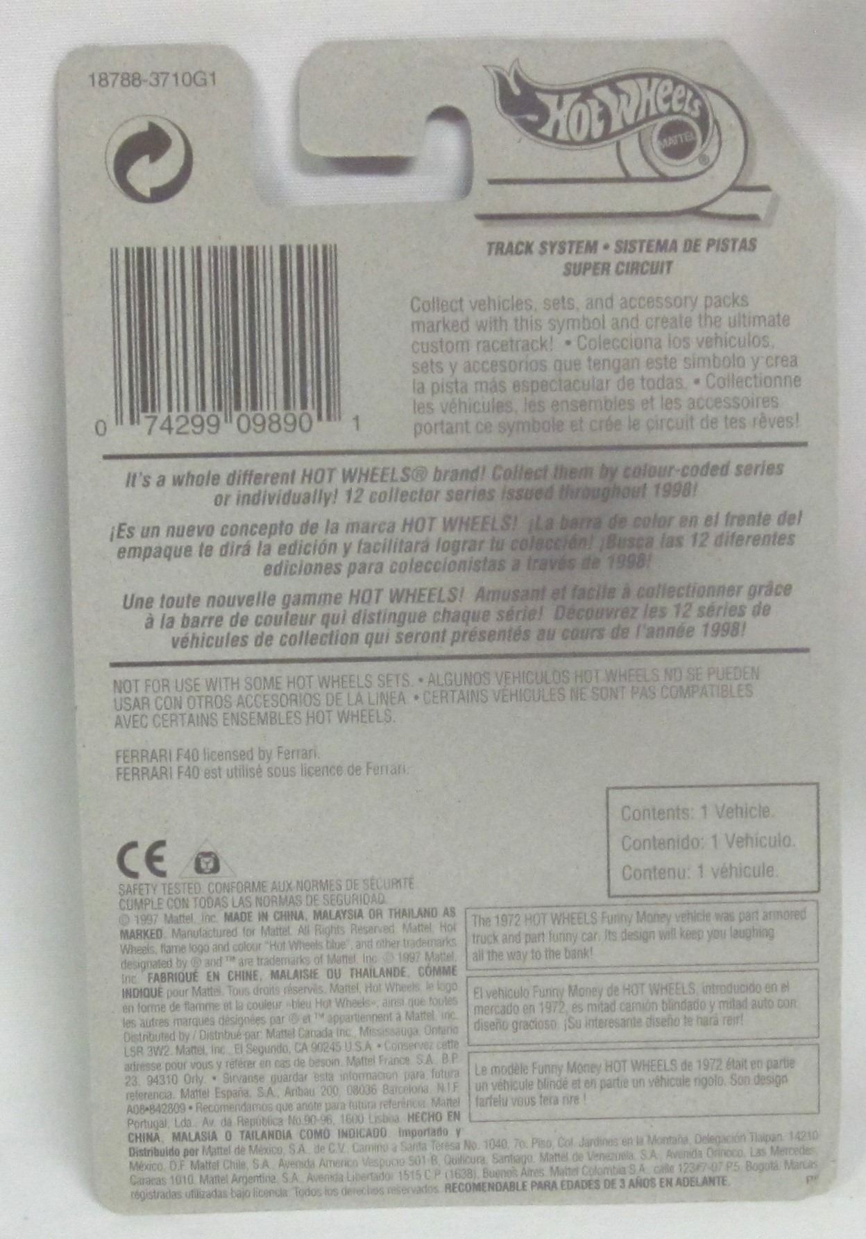Vintage New 1997 HotWheels Diecast # 2 of 4 Ferrari F40