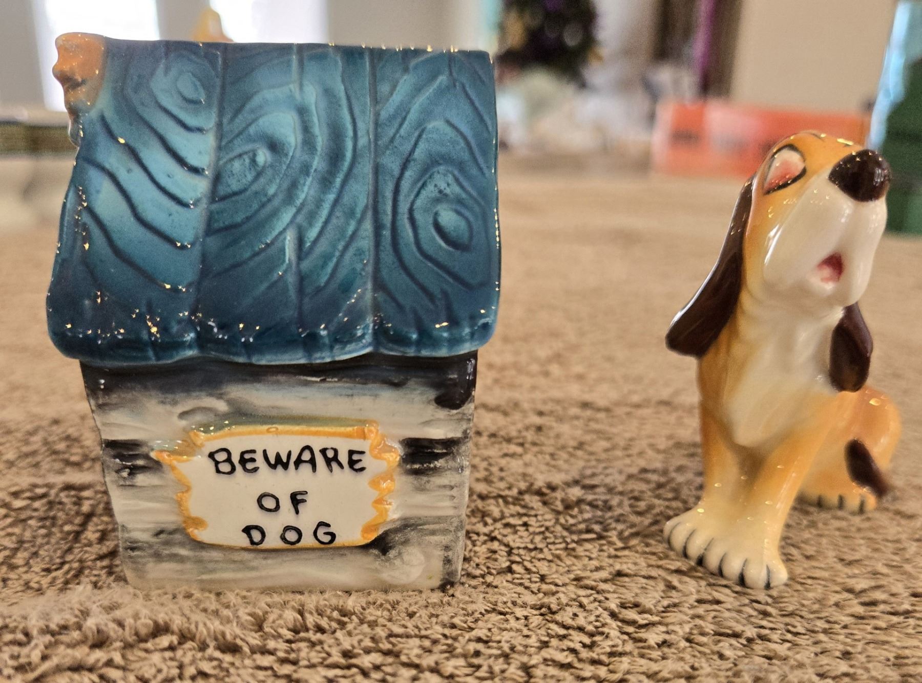 Vintage Norleans CHOOSIE dog house salt and pepper shakers. Stamped |Japan. No corks or plugs