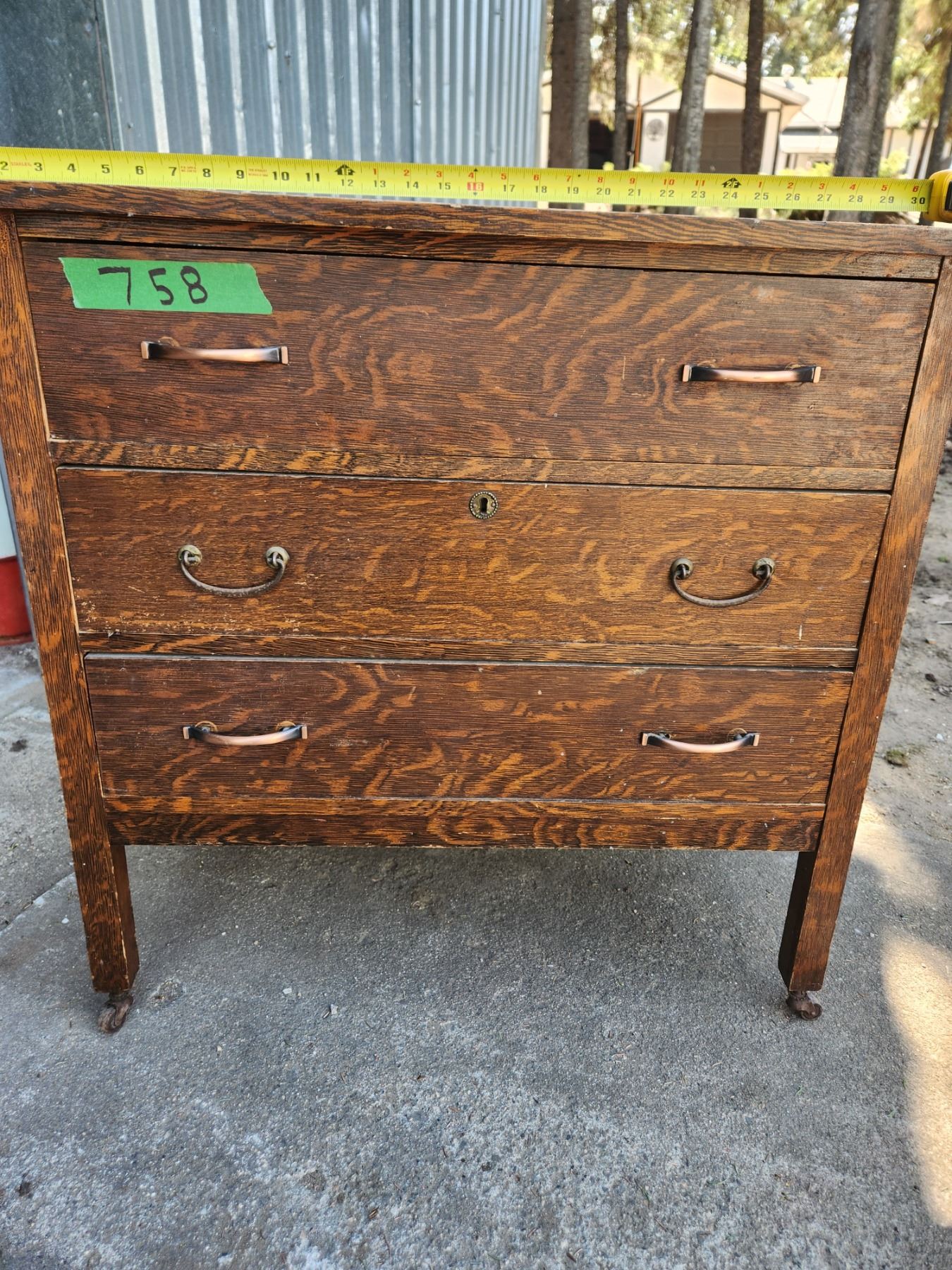 Vintage Oak 3 drawer dresser 9n wheels