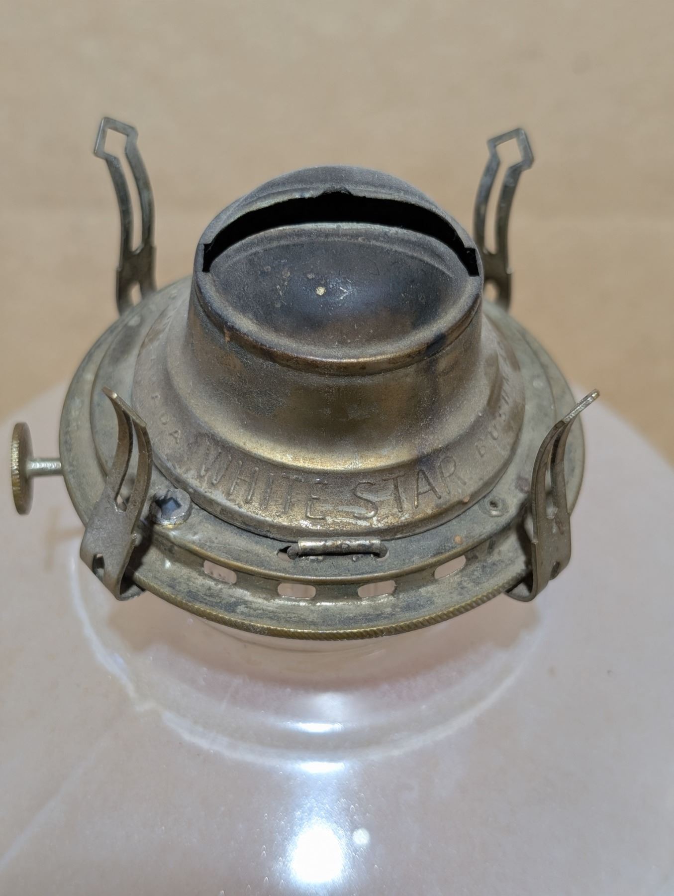 Vintage Oil Lamp (Made in Canada) White Star Bushman W/ Glass Shade