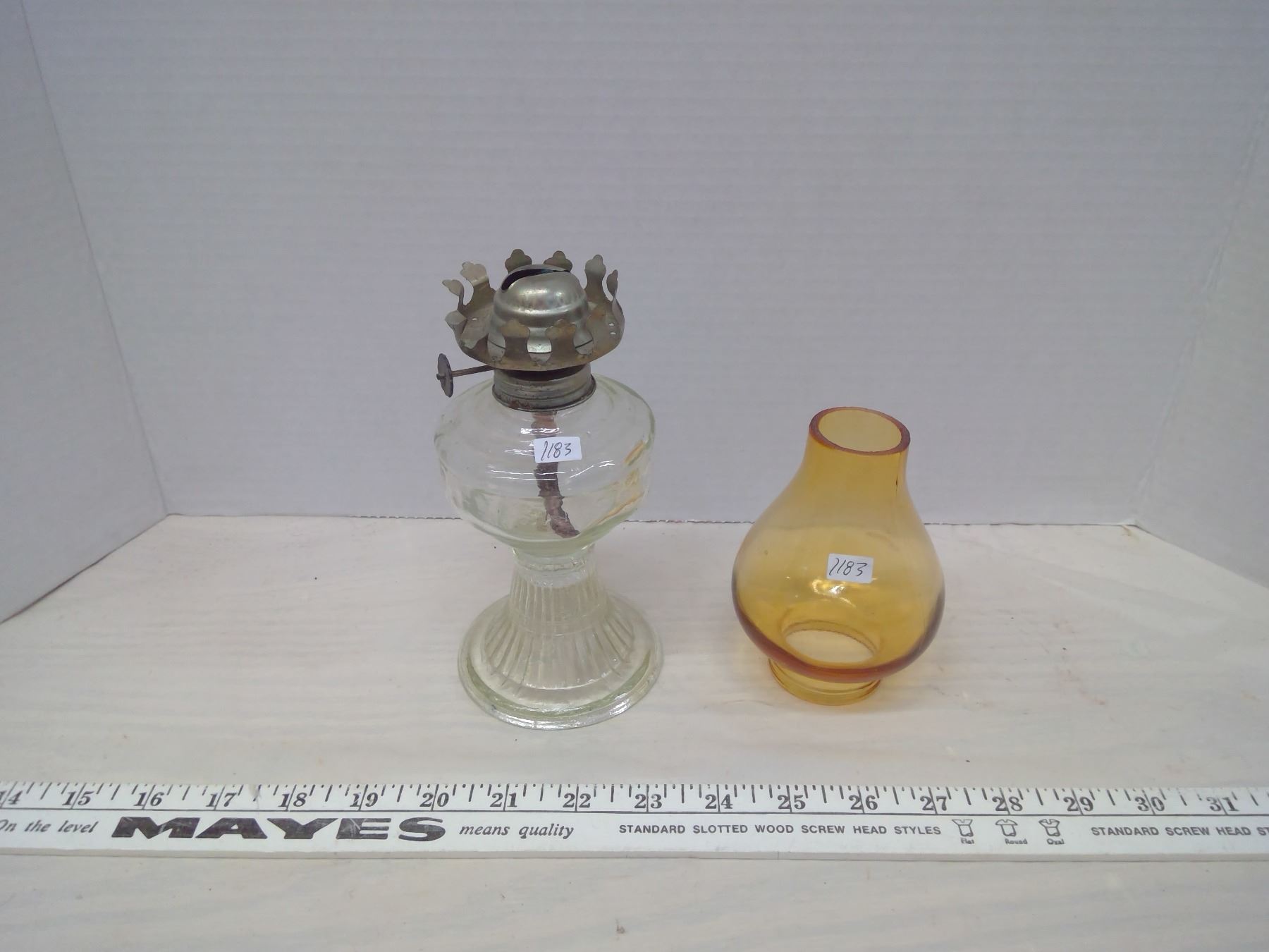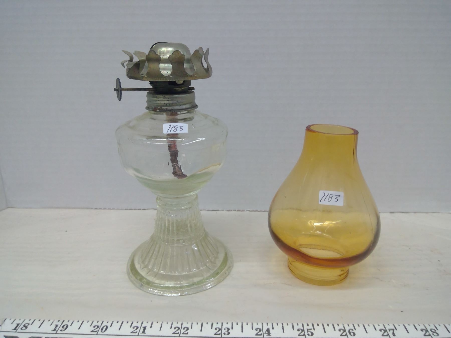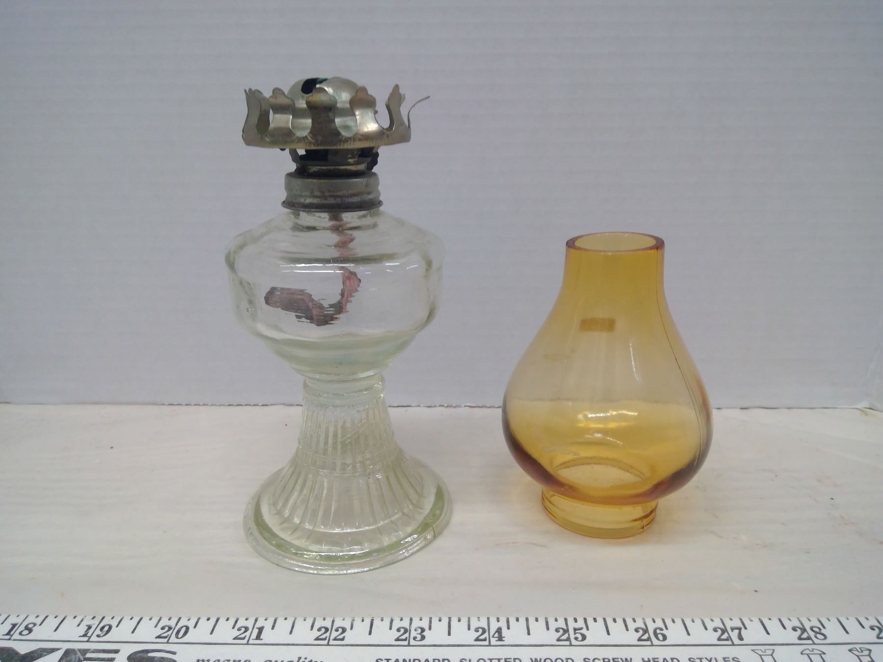Vintage Oil Lamp, Small Glass Chimney (Not Matching Pieces)