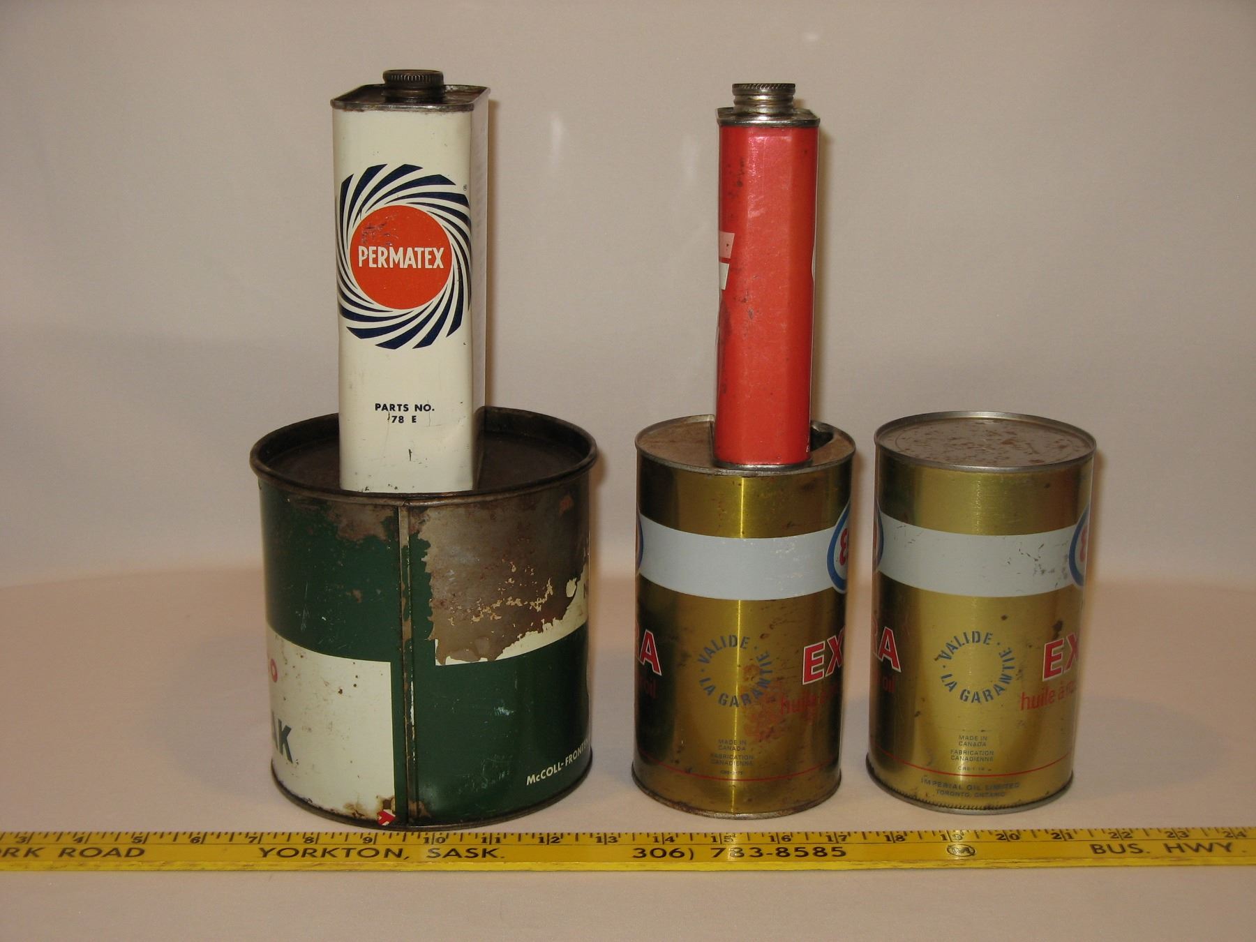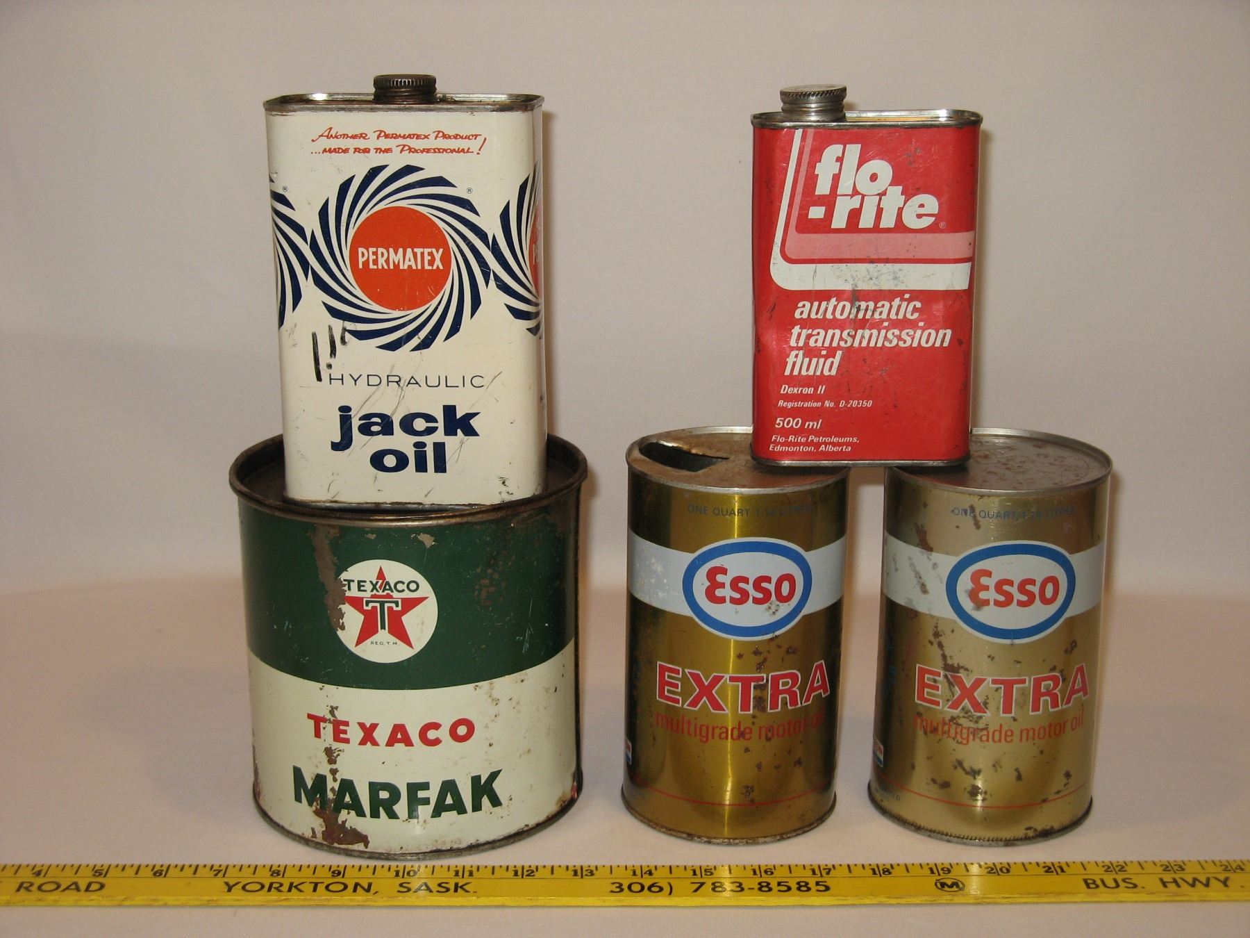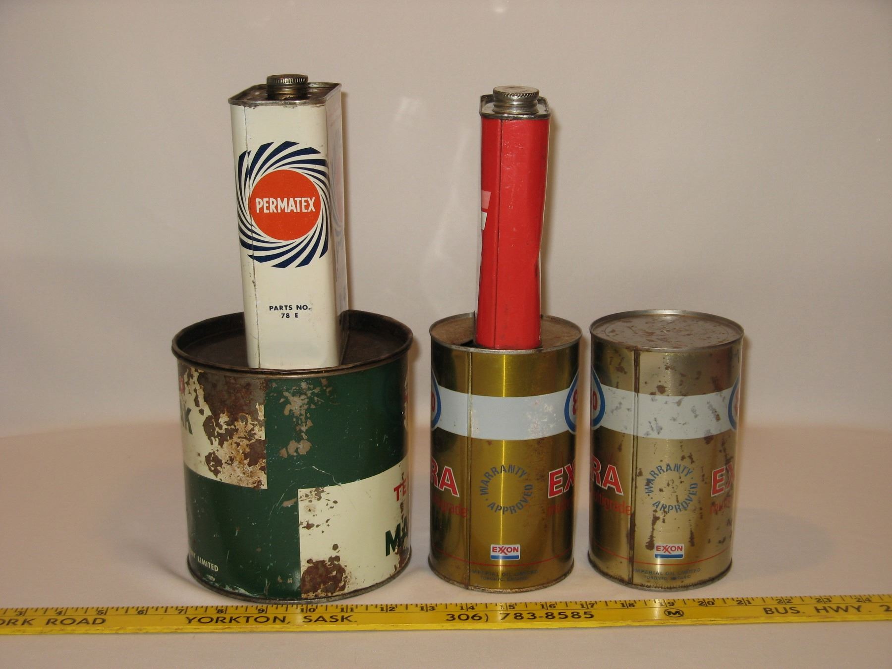 Vintage Oil Tins (Texaco, Esso, Permatex, Flo-Rite)