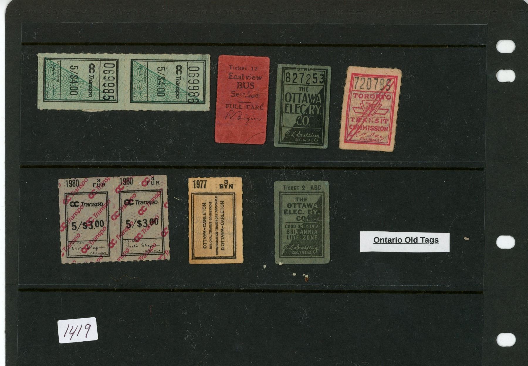 Vintage Ontario Transit Tags/Tickets