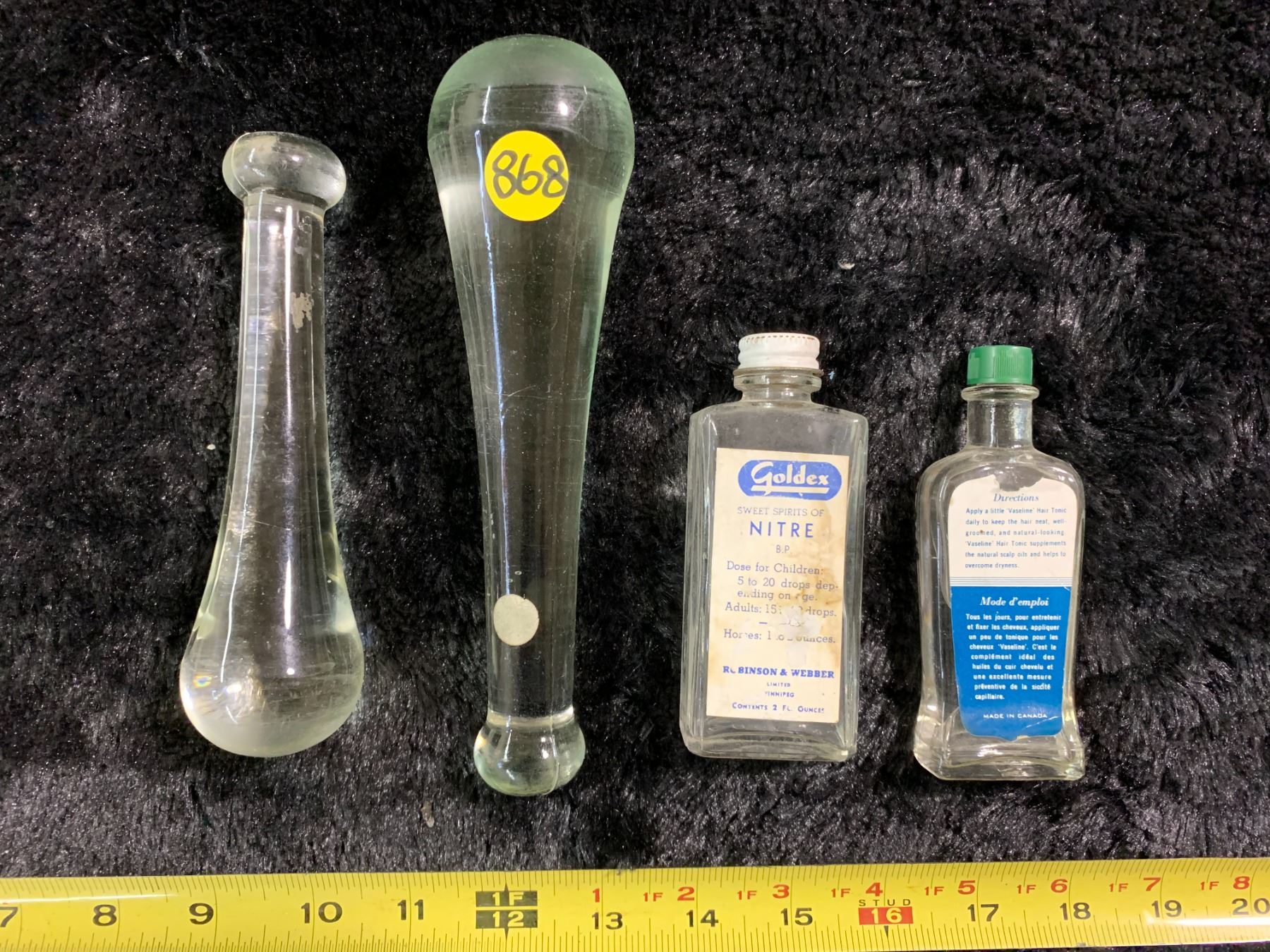 Vintage Pharmacy Items (1x 8oz Pestle, 1x 16oz Pestle, 2 Bottles)