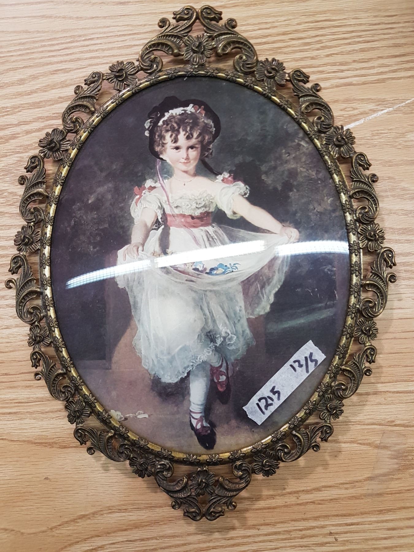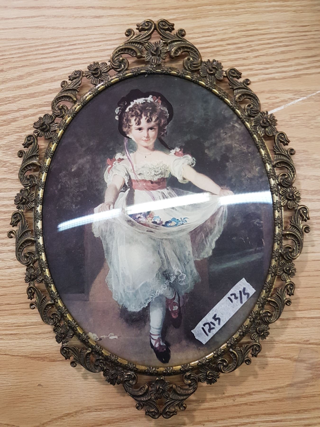 Vintage Pink Girl & Frame (roughly 12x9" glass)