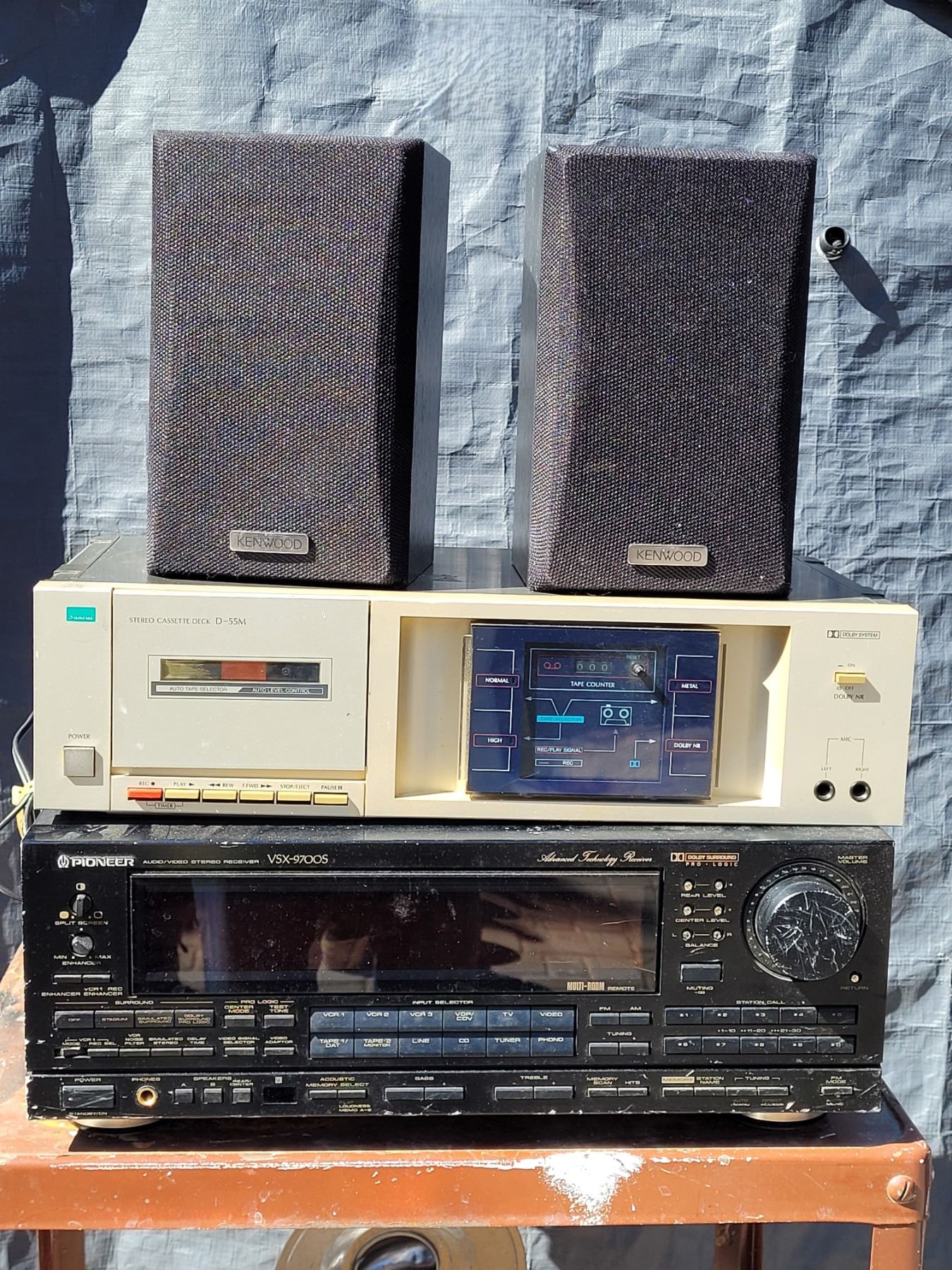 Vintage Pioneer amplifier. Sansui cassette deck & Kenwood speakers.
