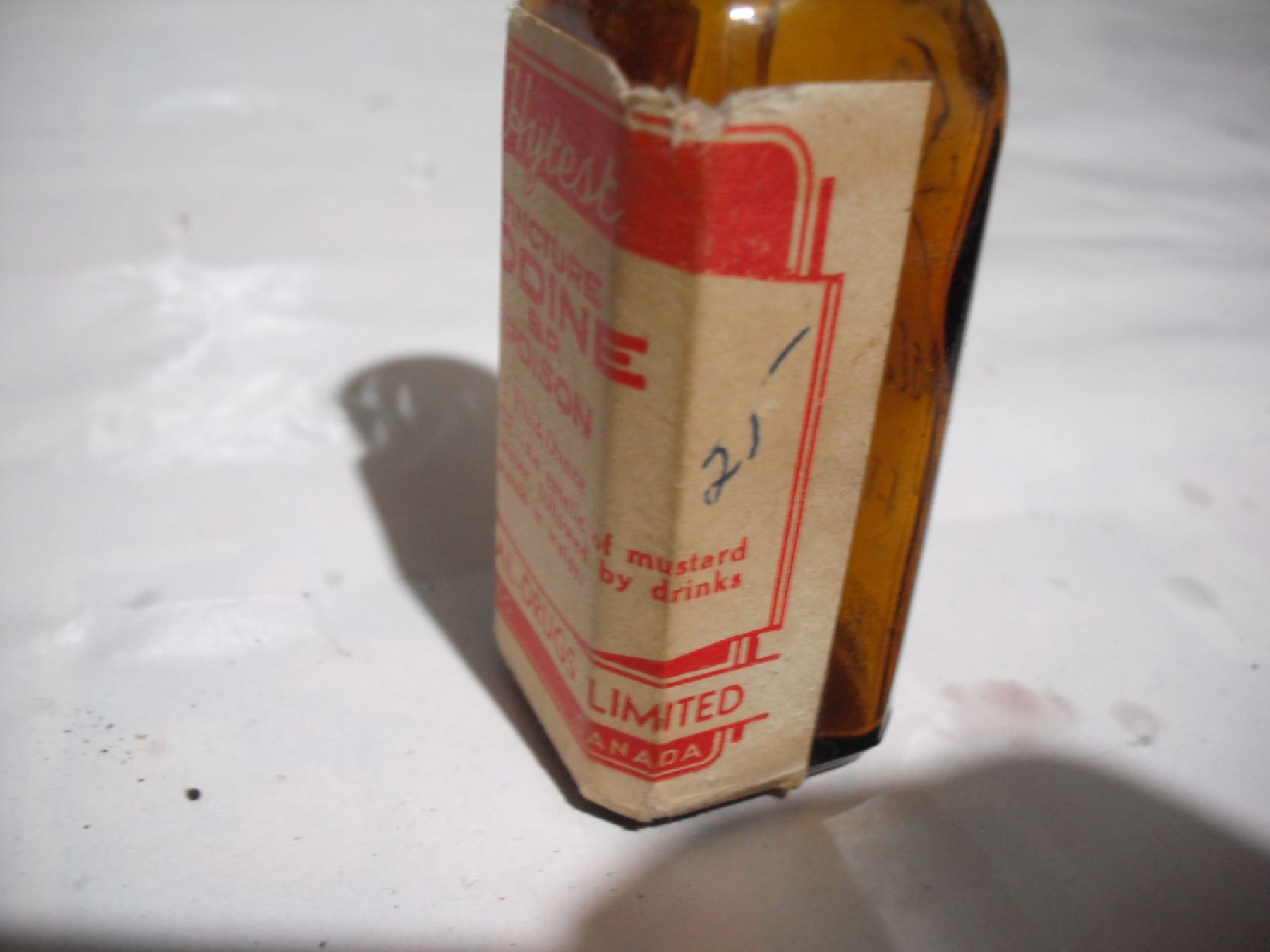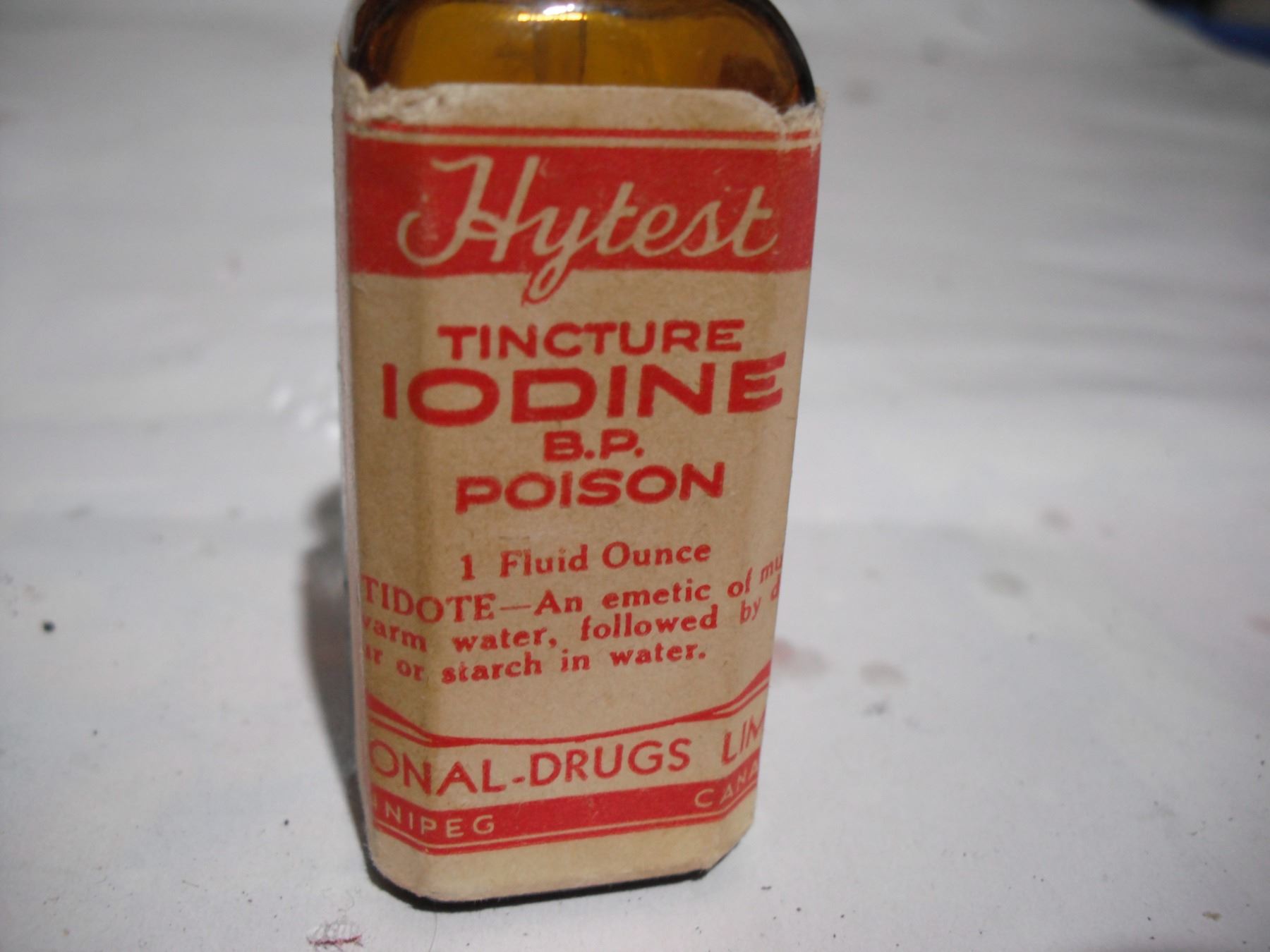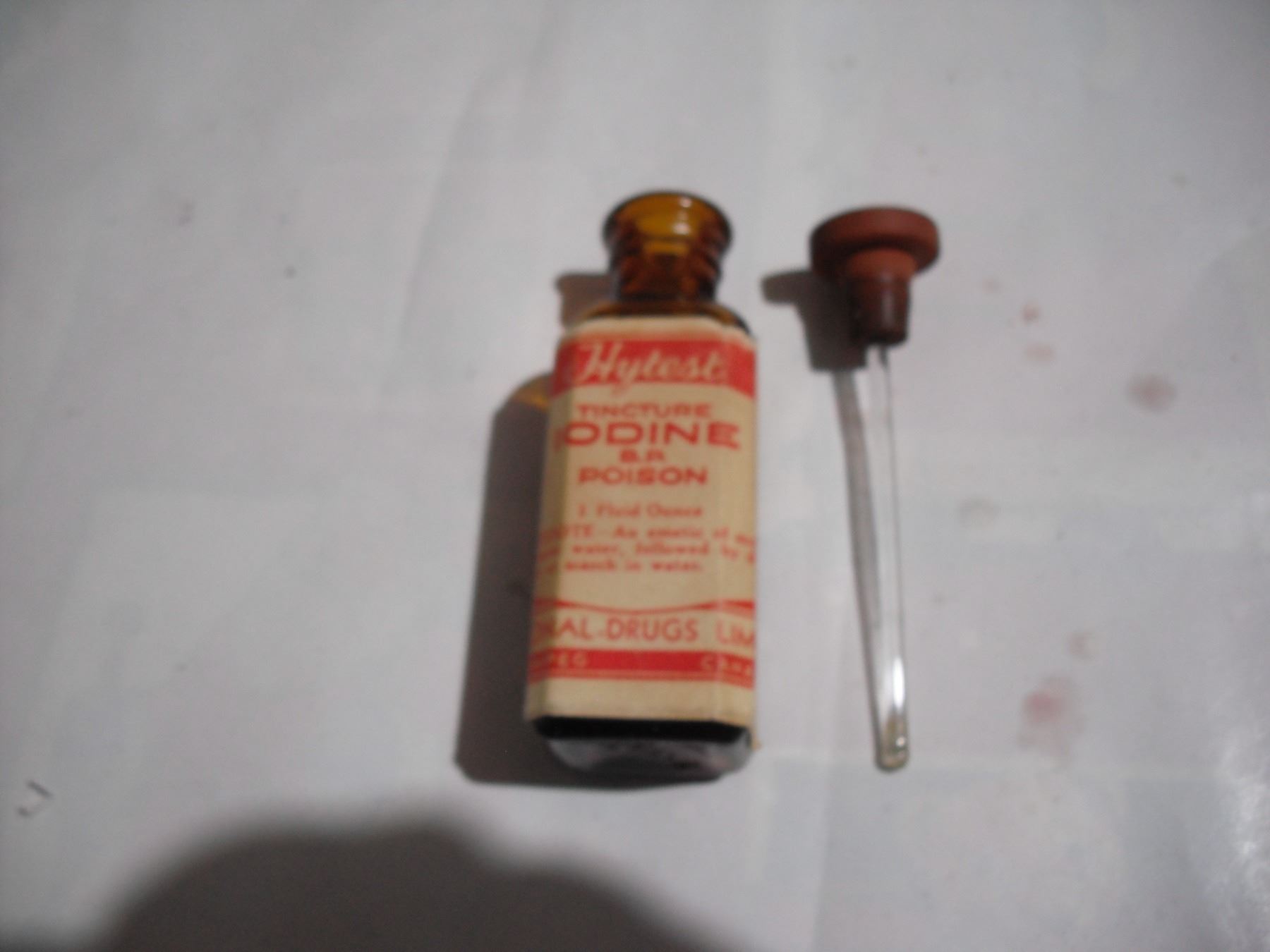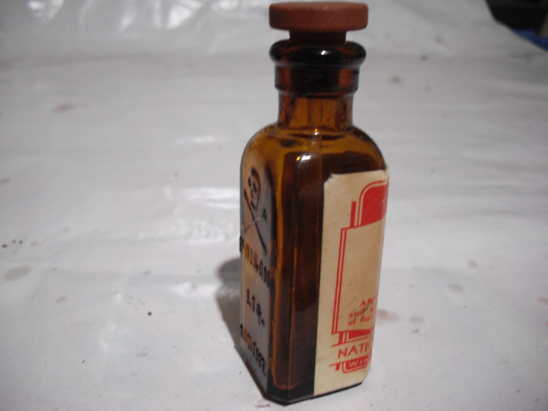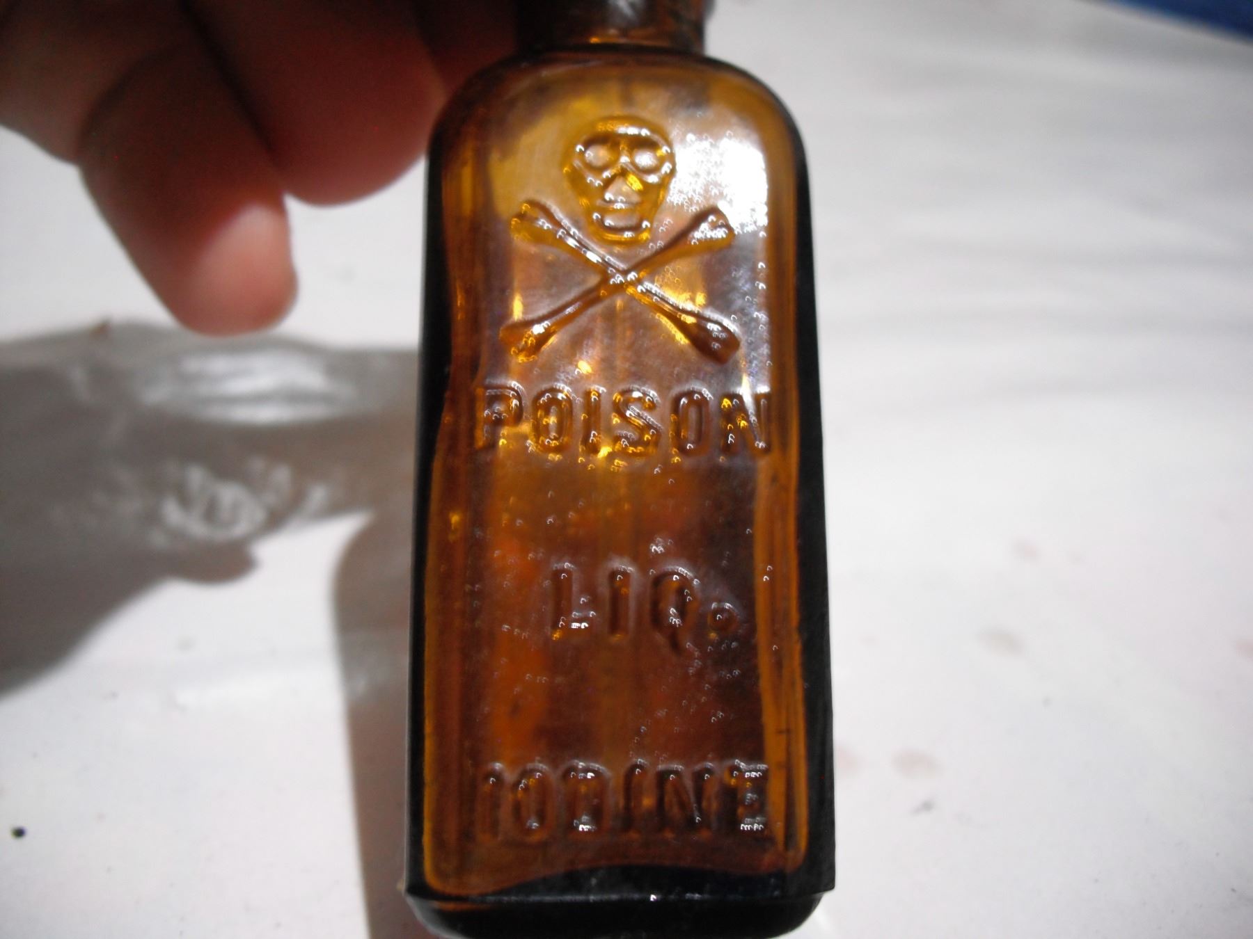 Vintage Poison Iodine Bottle Skull Crossbones Design w/ Label on Top