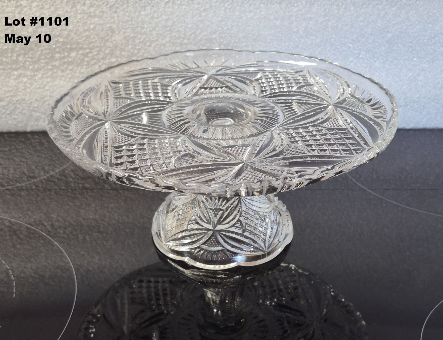 Vintage Pressed Glass Cake Pedestal - 9"W x 4"H