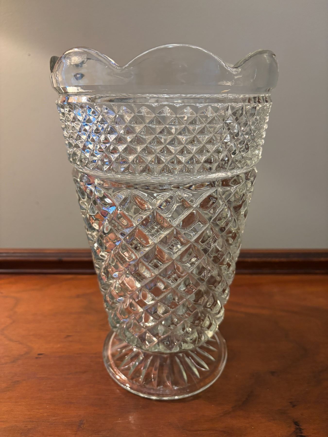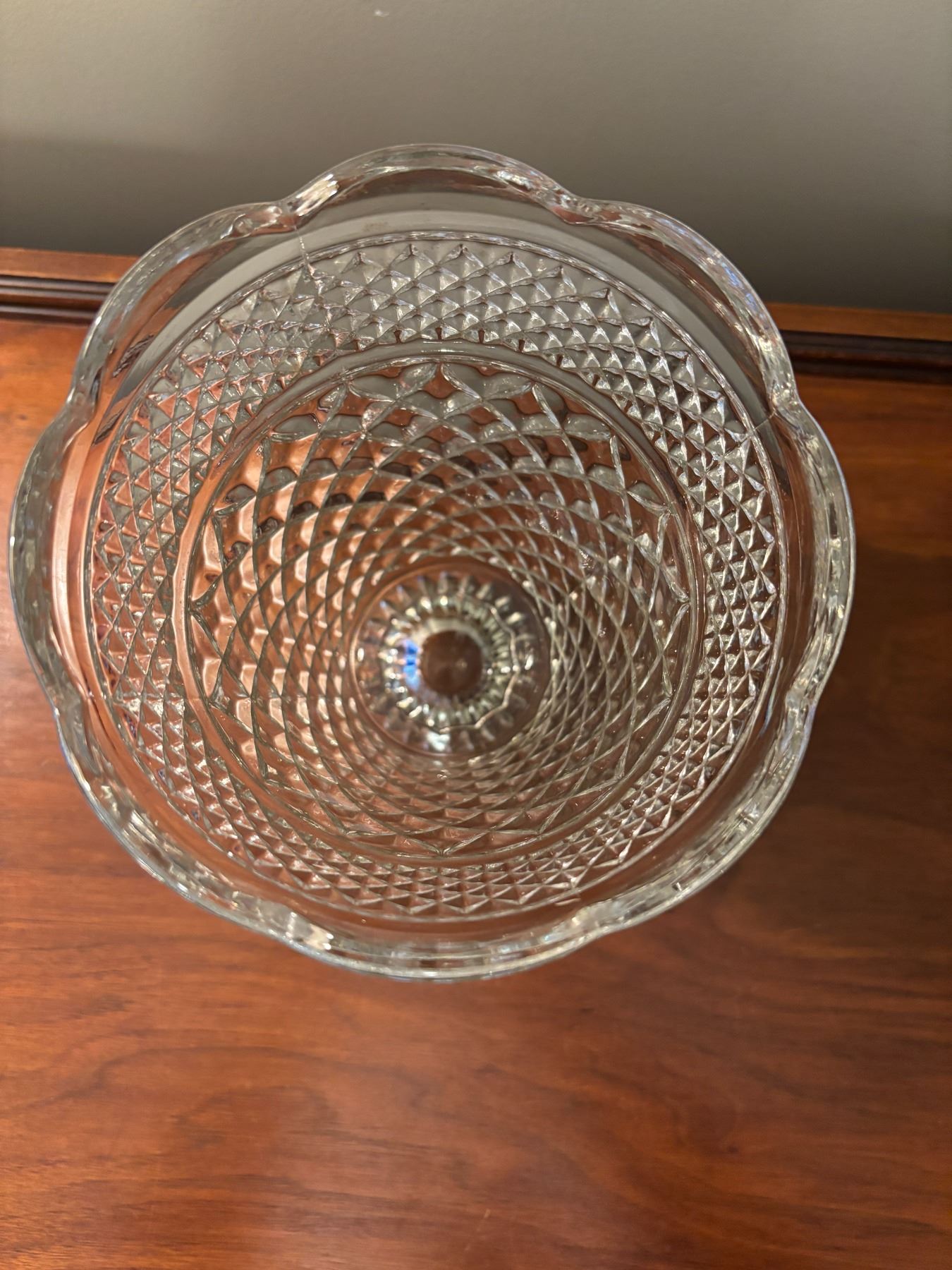 Diamond point pattern; Scalloped edge, 25.5cm x 15cm wide, no chips/cracks