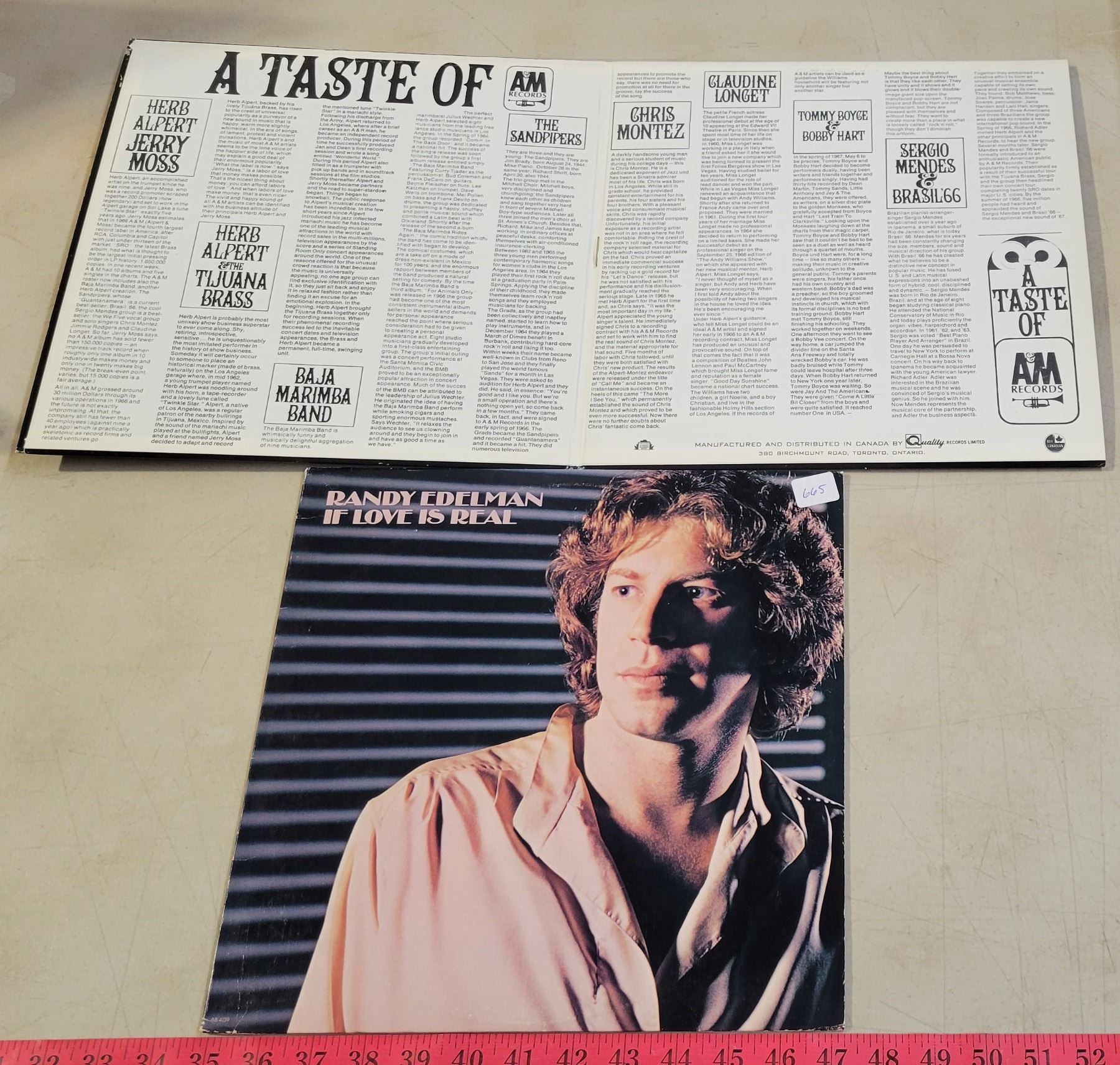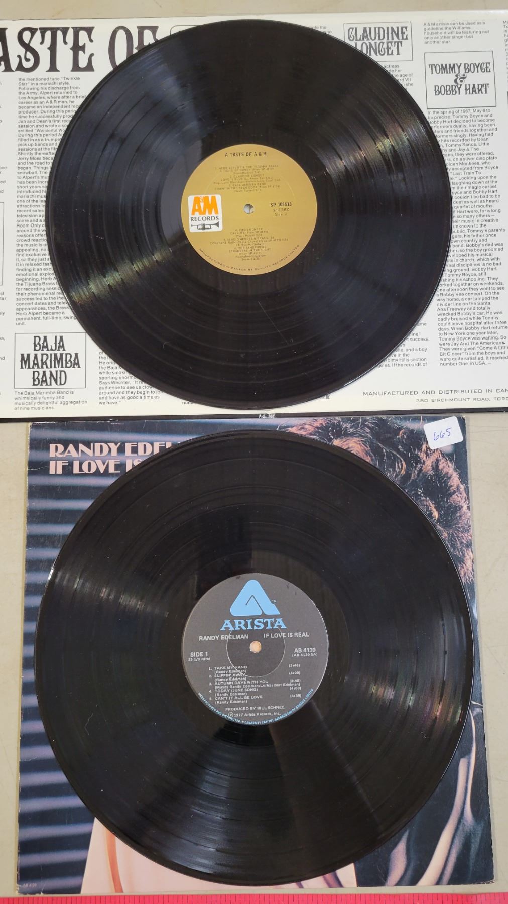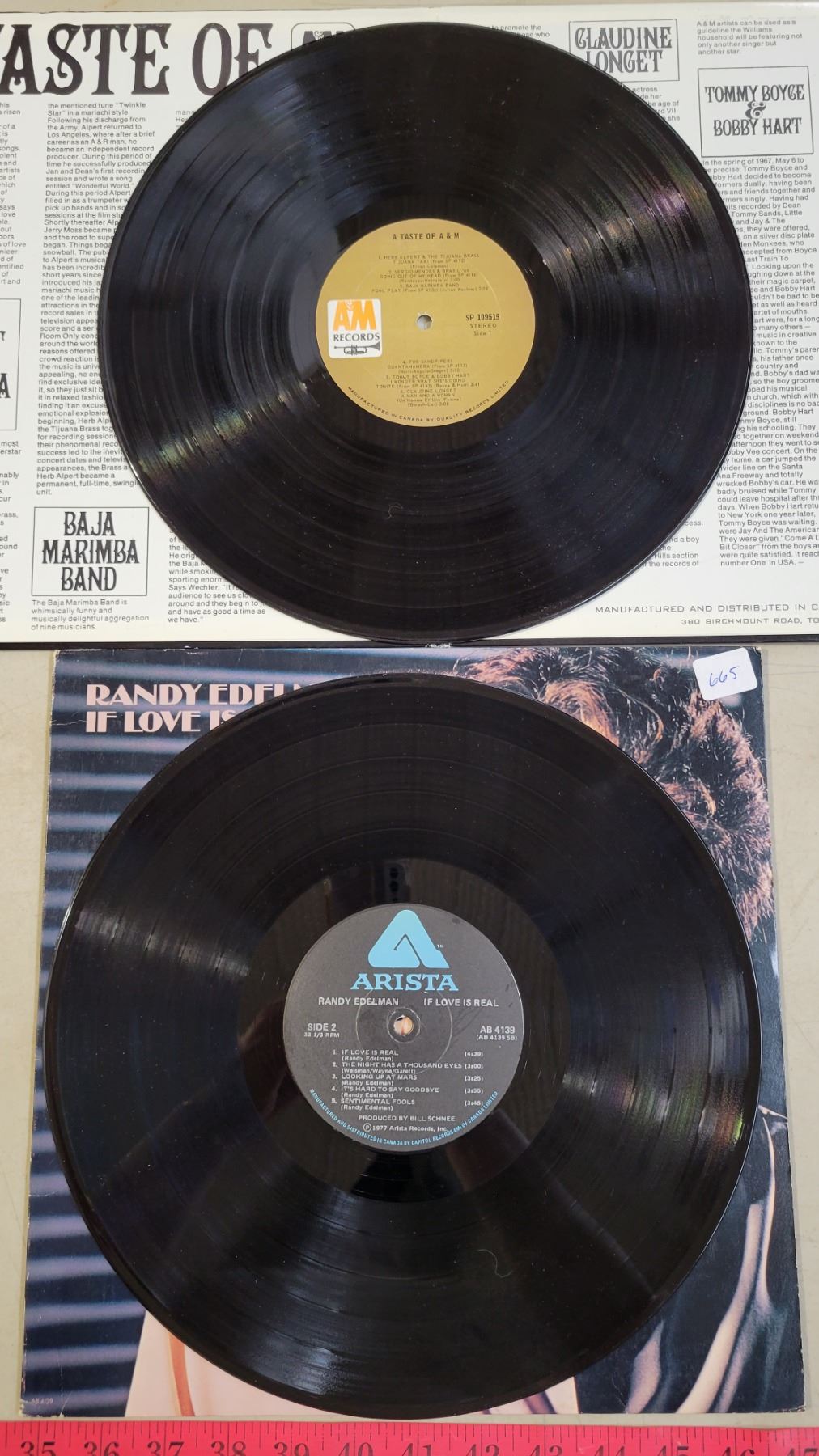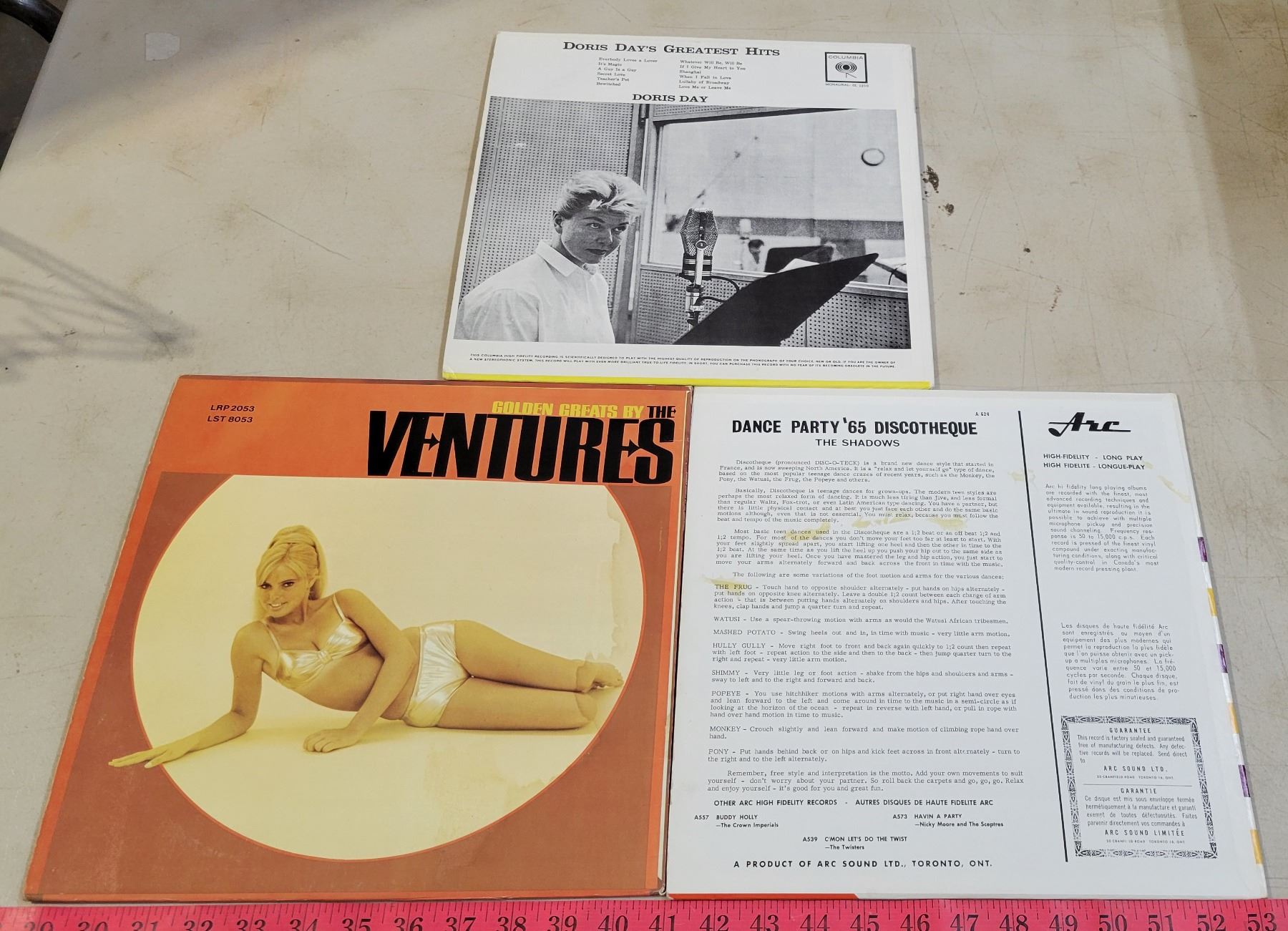 Vintage Record Holder with 7 Records; Ventures, Winchester Cathedral, Everly Brothers, etc.