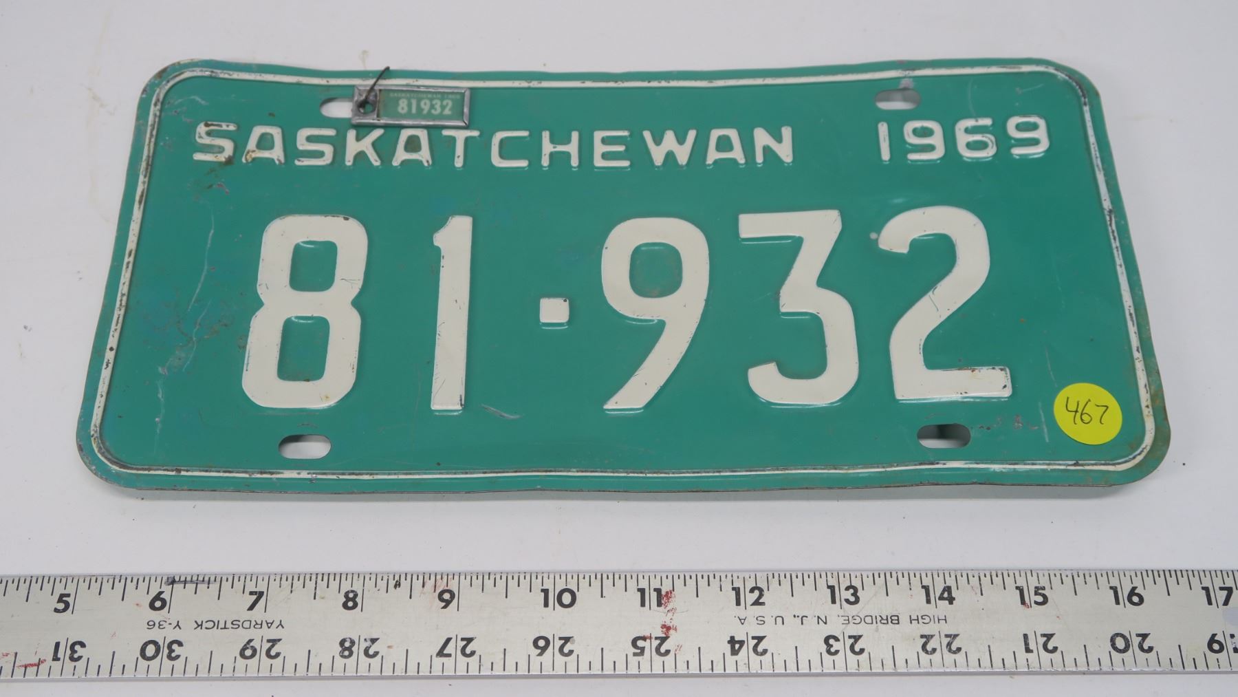 Vintage Sask license plate 1969 ( Anniversary date for classic car's)