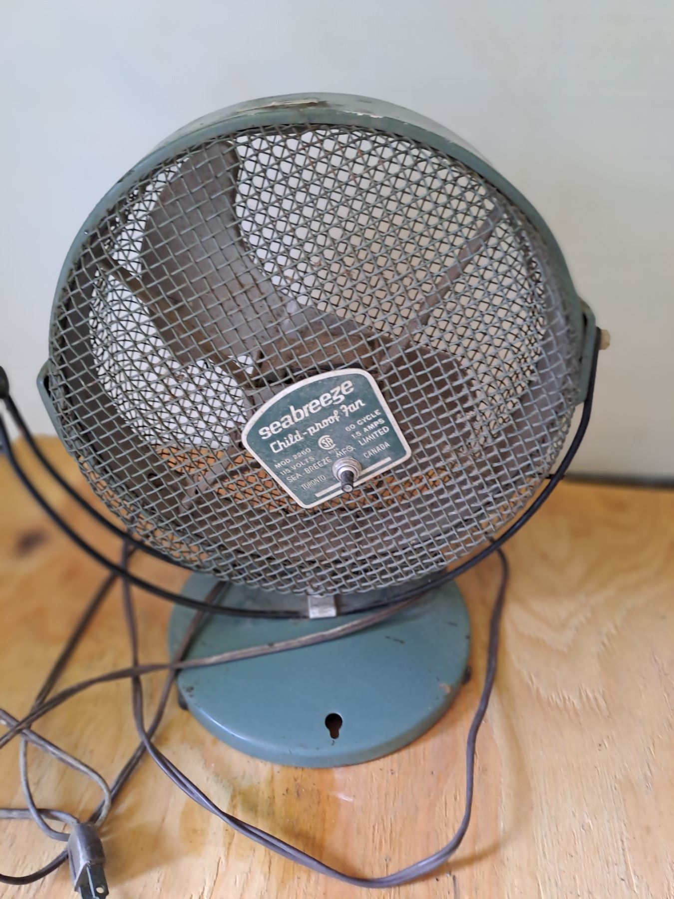 Vintage Seabreeze Childproof 10" Metal Cage Desk Fan