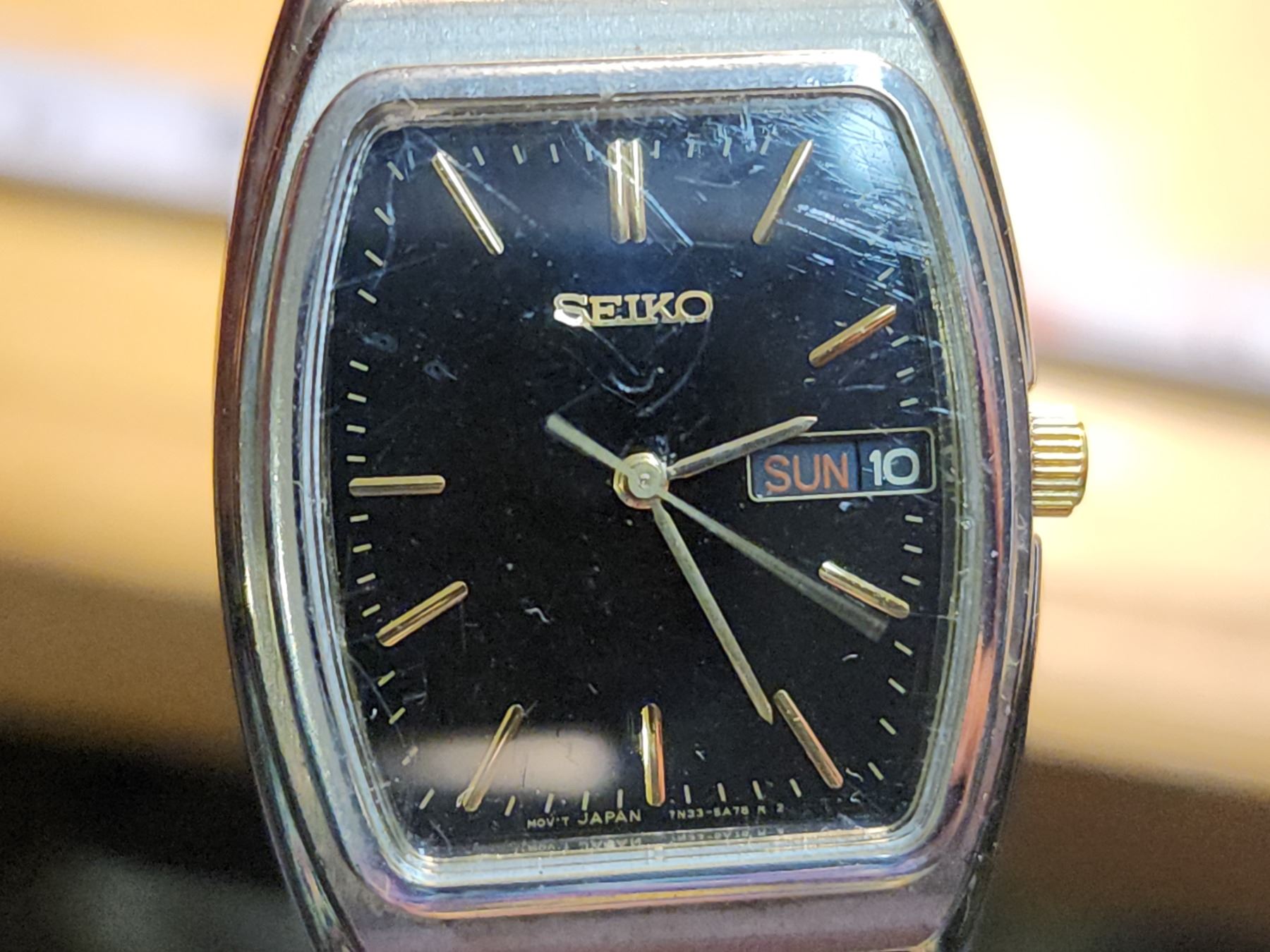 Vintage "Seiko" quartz wrist watch, day/date, new battery - runs