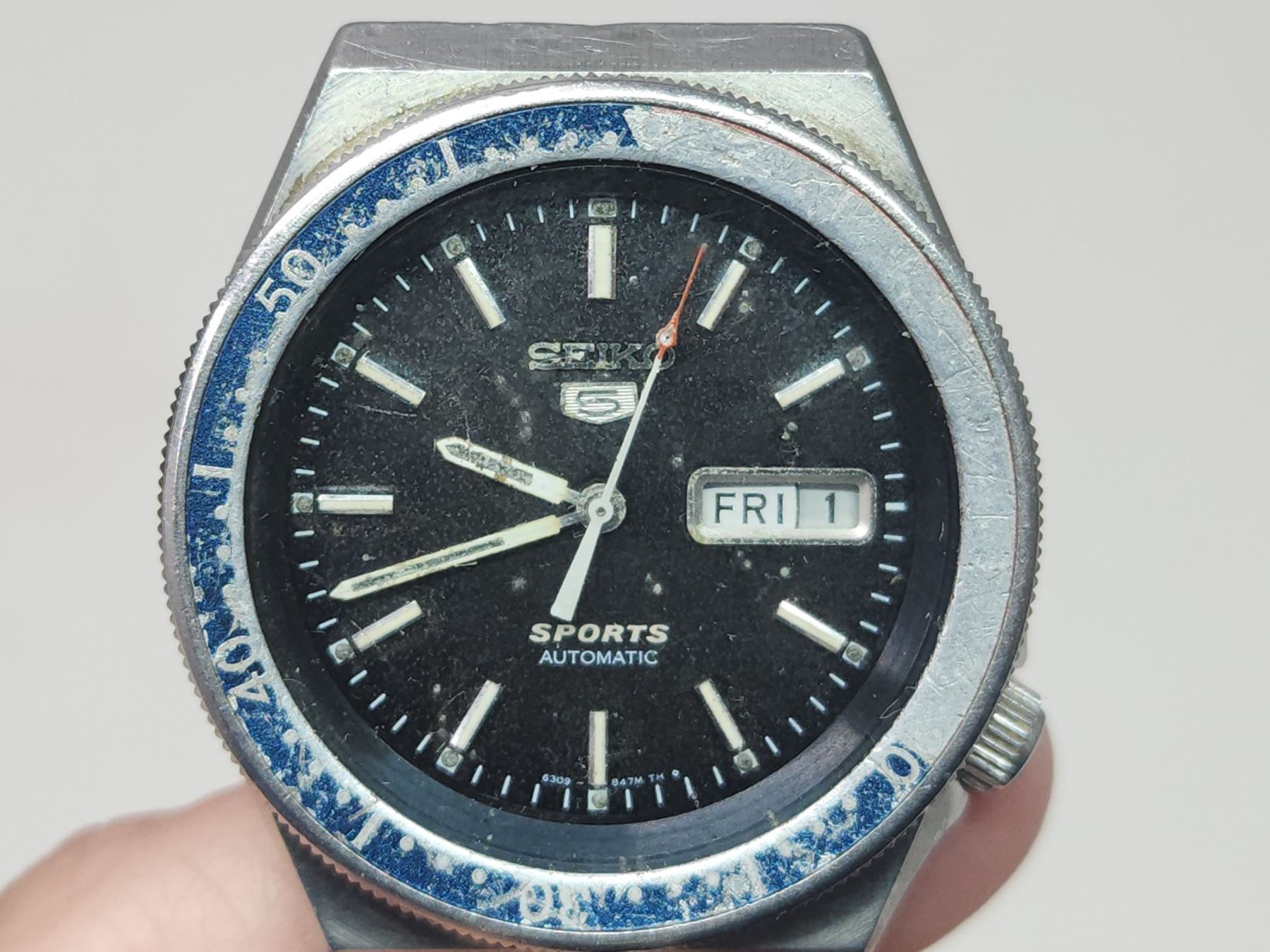 Vintage "Seiko" sports wrist watch. 17 jewels, auto, day/date - doesn't appear to run
