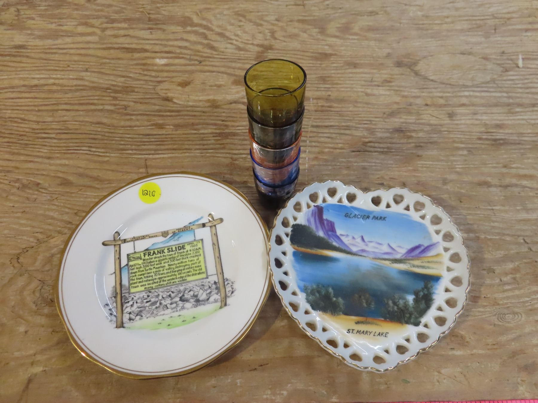 Vintage Shooter Glasses & 2 pcs. Of Collector Porcelain Plates