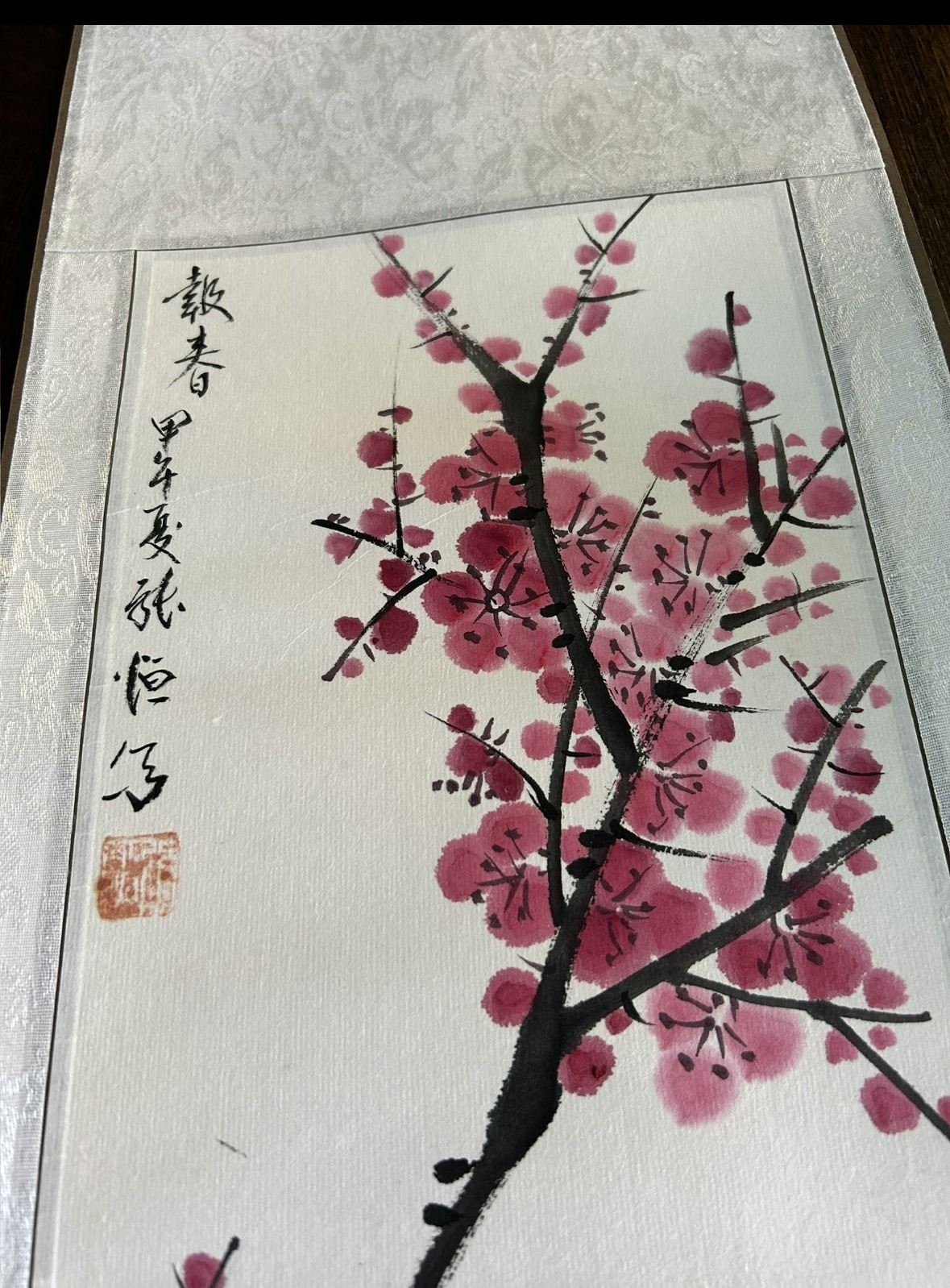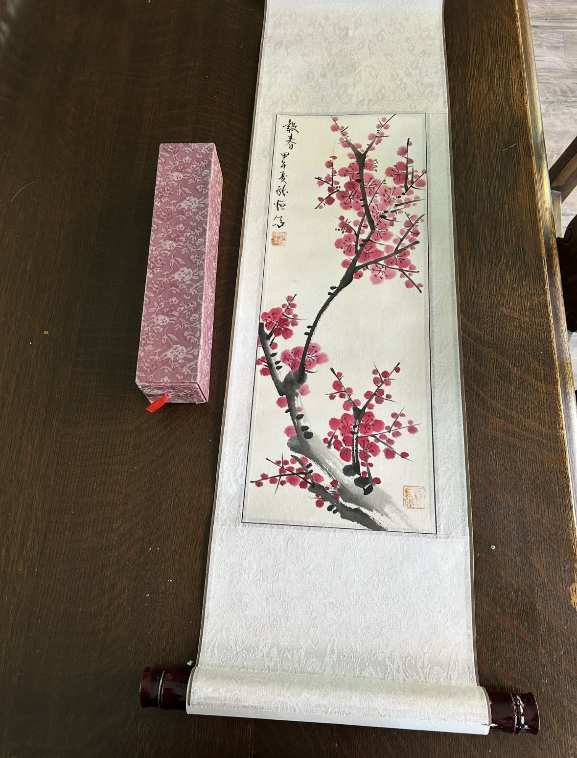 Vintage Signed Original Chinese Cherry Blosom Painting