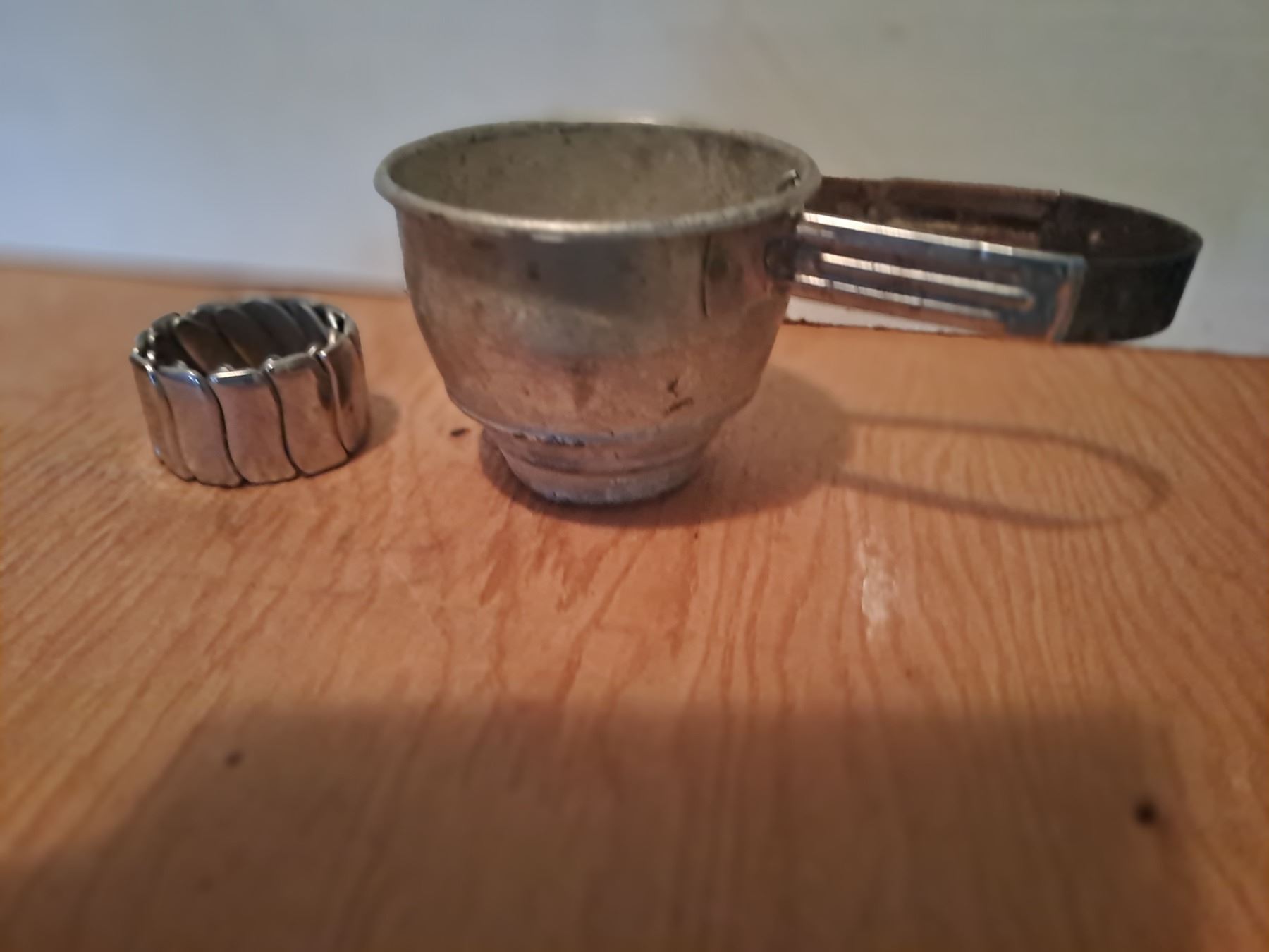Vintage Small Aluminum Hand Squeeze Flour Sifter and Vintage Art Deco Bracelet