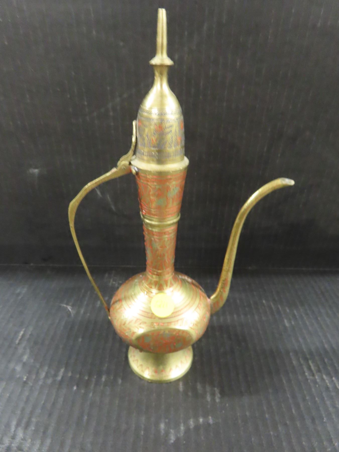 Vintage Solid Brass Patina Engraved Tea Pot