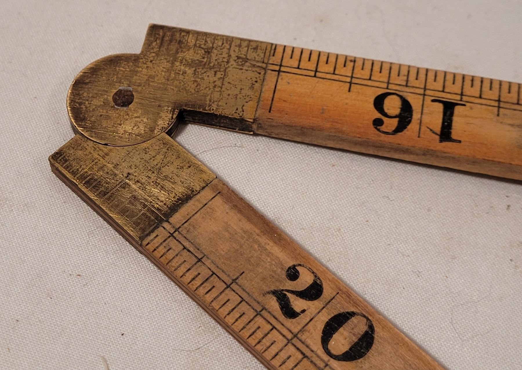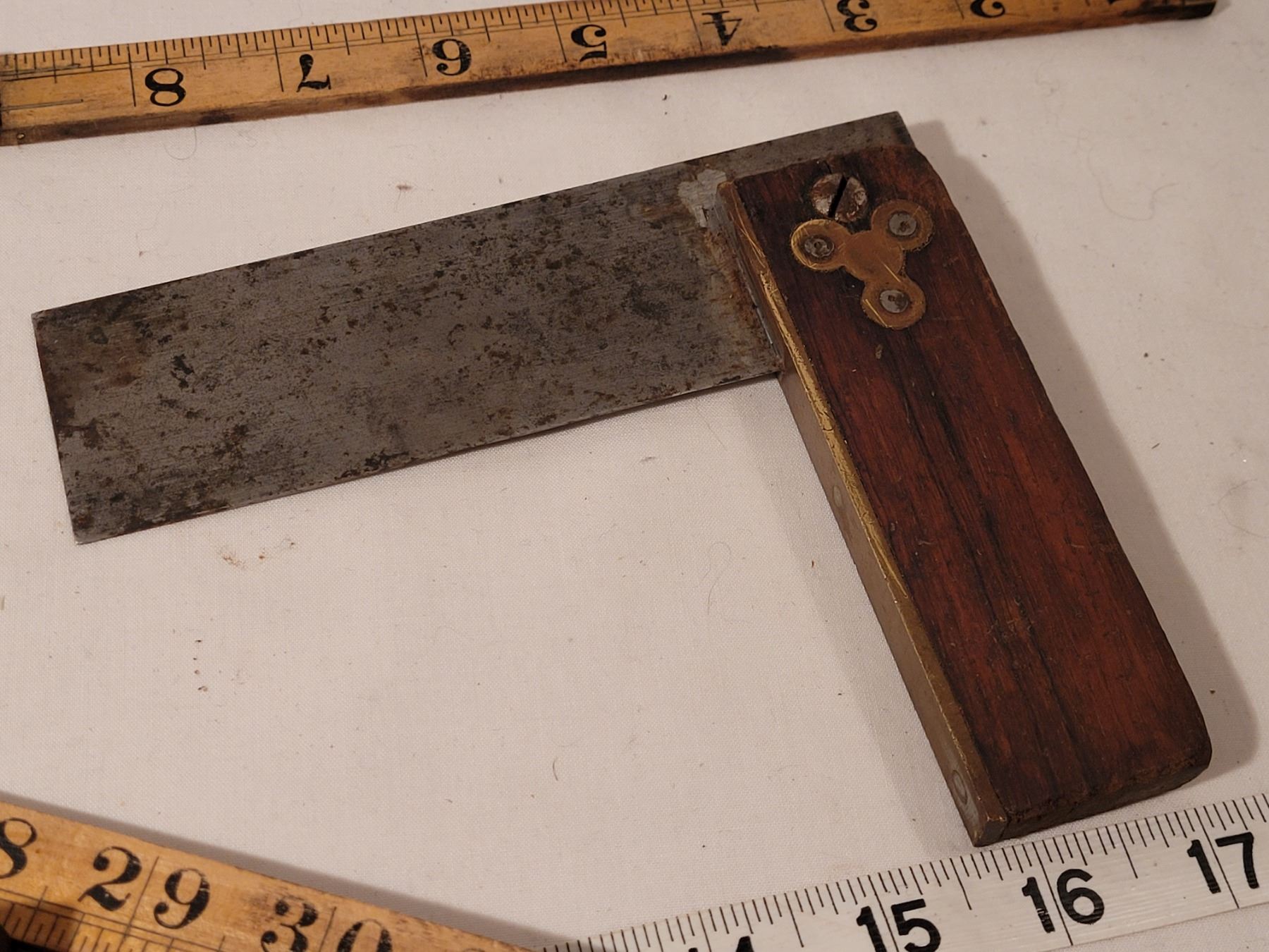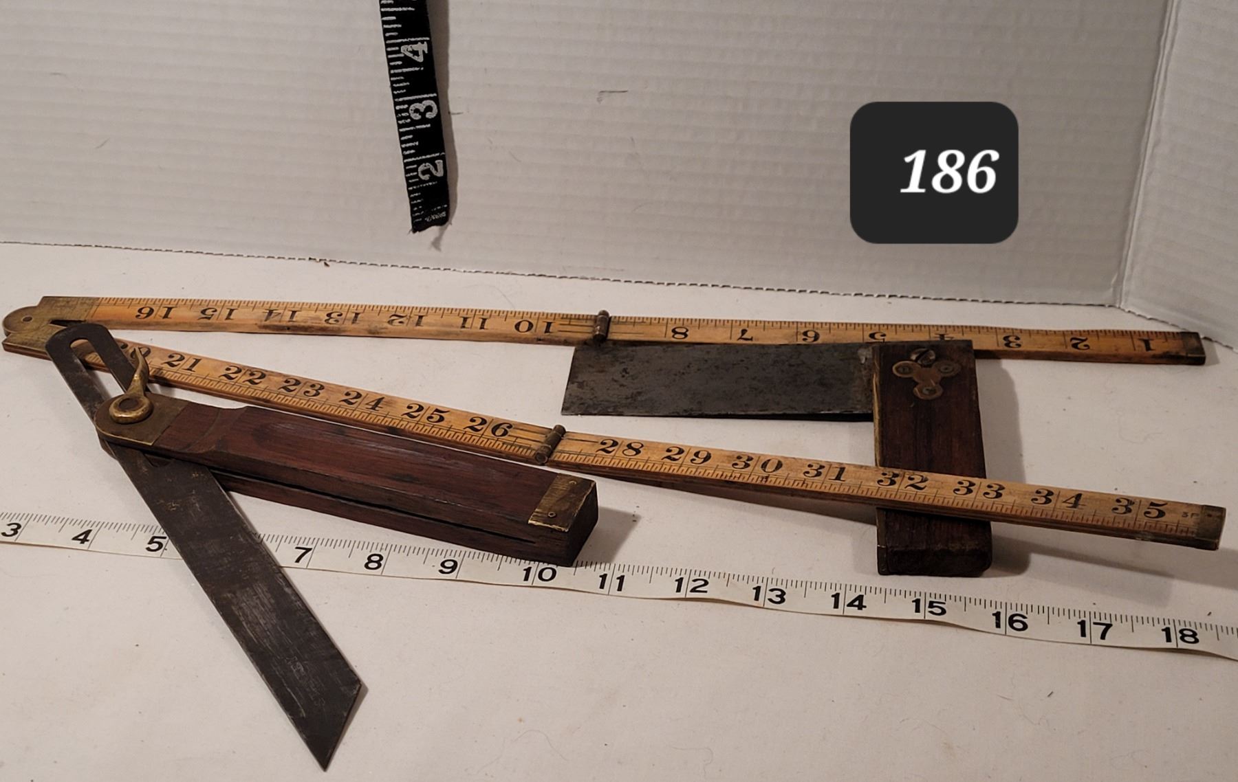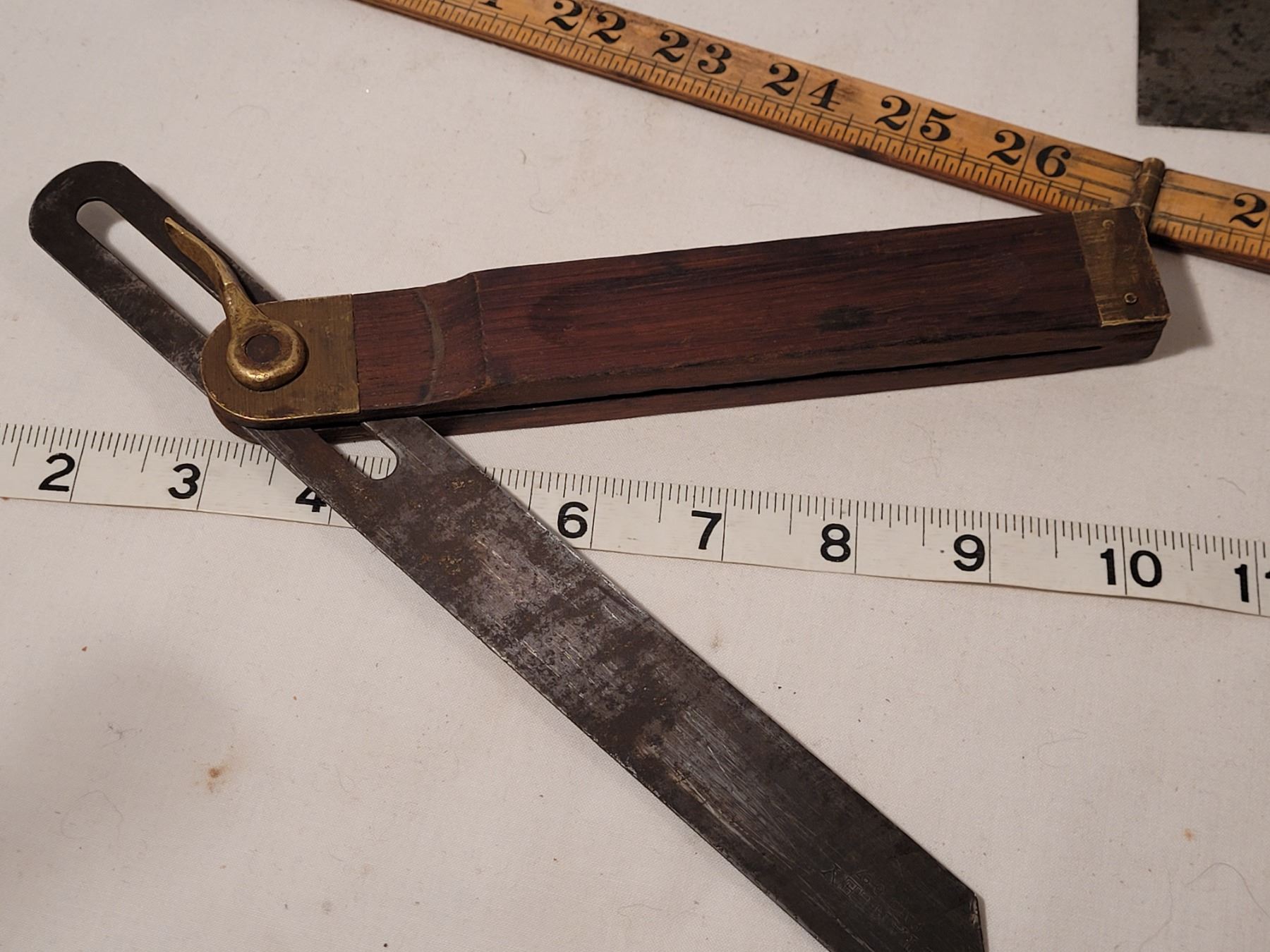 Vintage (Stanley) folding wood ruler, angle gage & square.