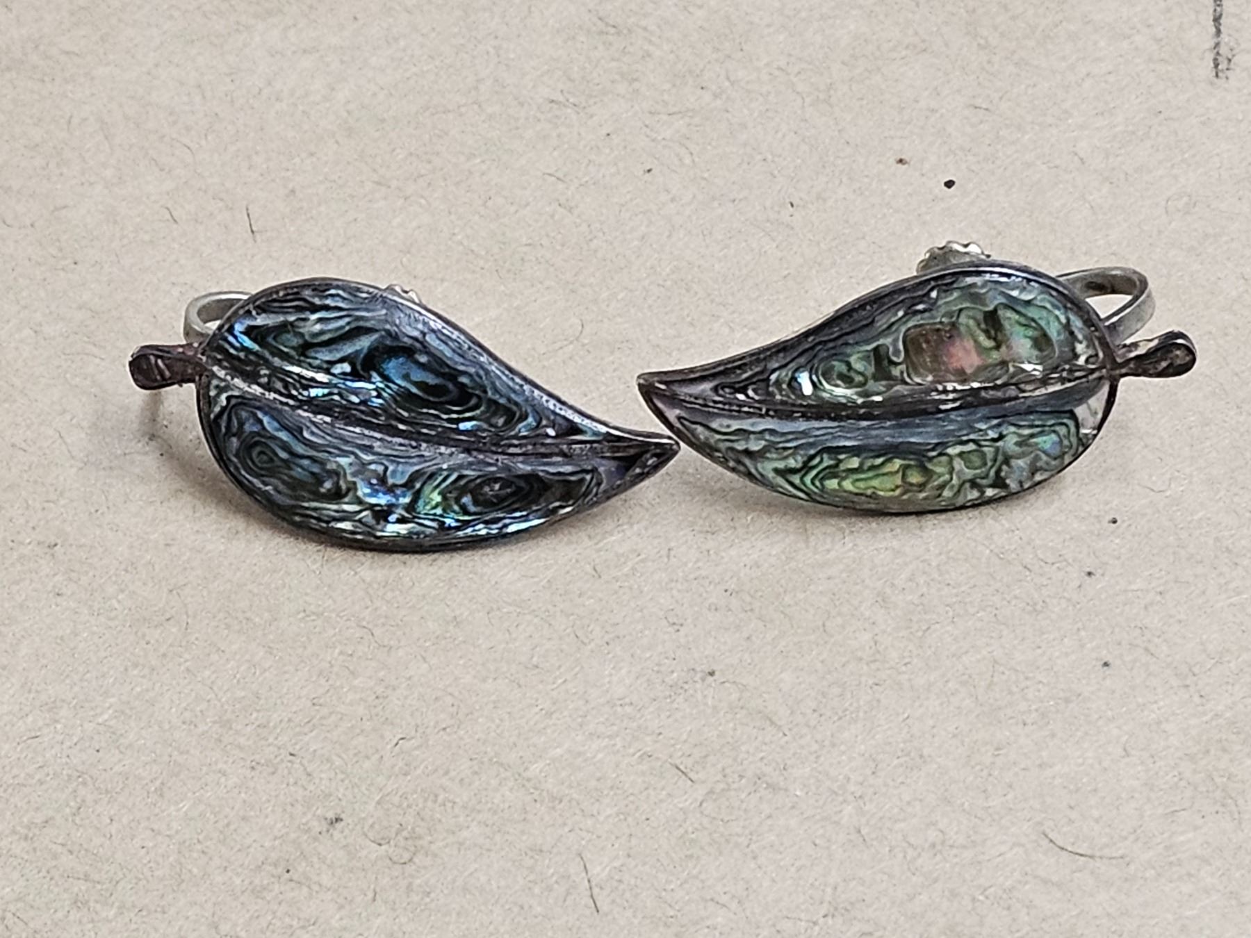 Vintage "Sterling" Silver Earrings (marked) Mexico with inlaid abalone shell