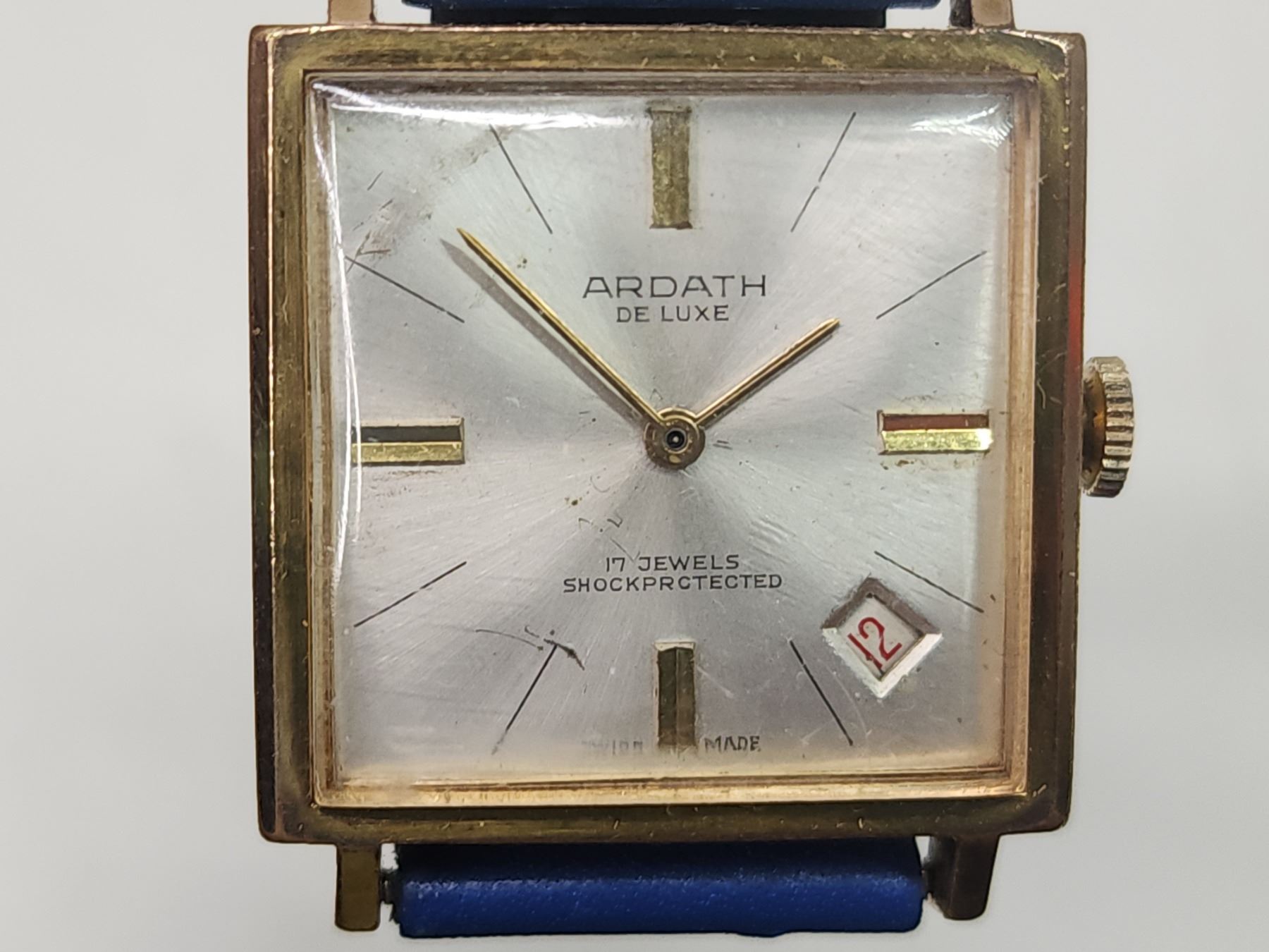 Vintage Swiss made "Ardath" 17 jewel wrist watch. Date @ 4:30, man wind - runs