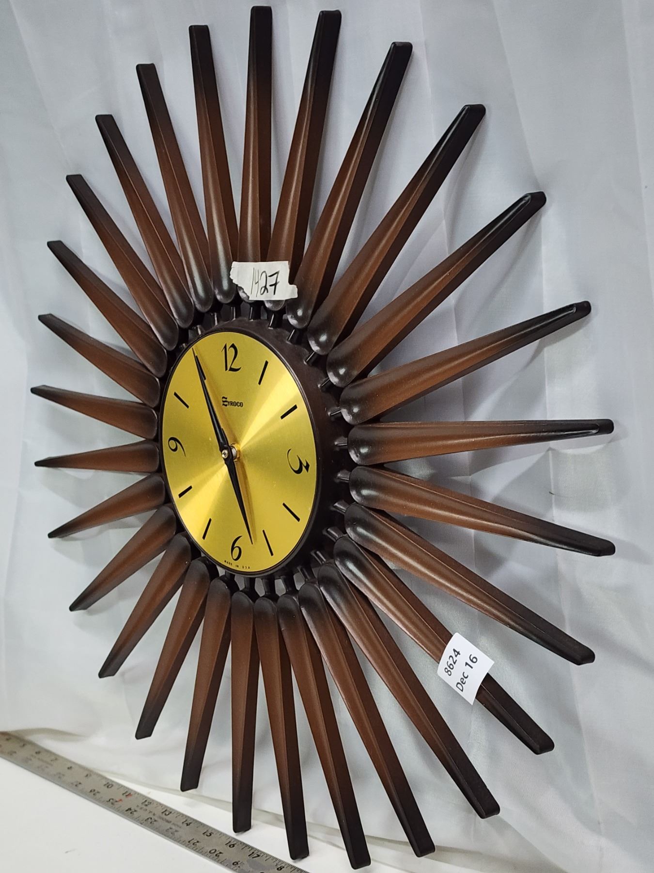 Vintage "Syroco" plastic flower shaped wall clock - 22.5" w