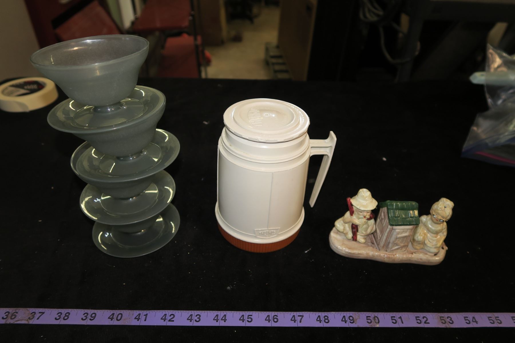 Vintage Thermos (Incomplete), Tupperware Bowls, Hillbilly S&P Shakers
