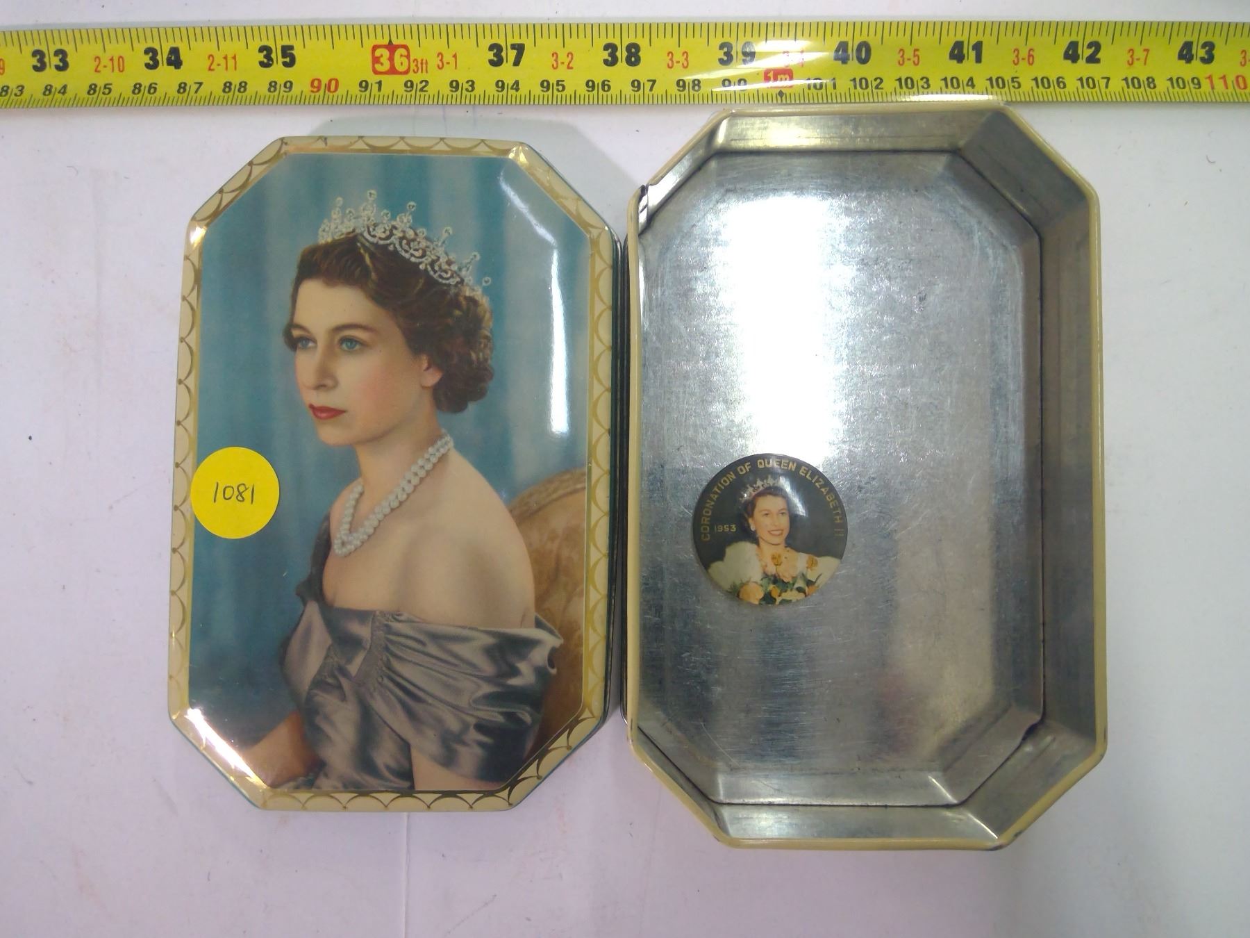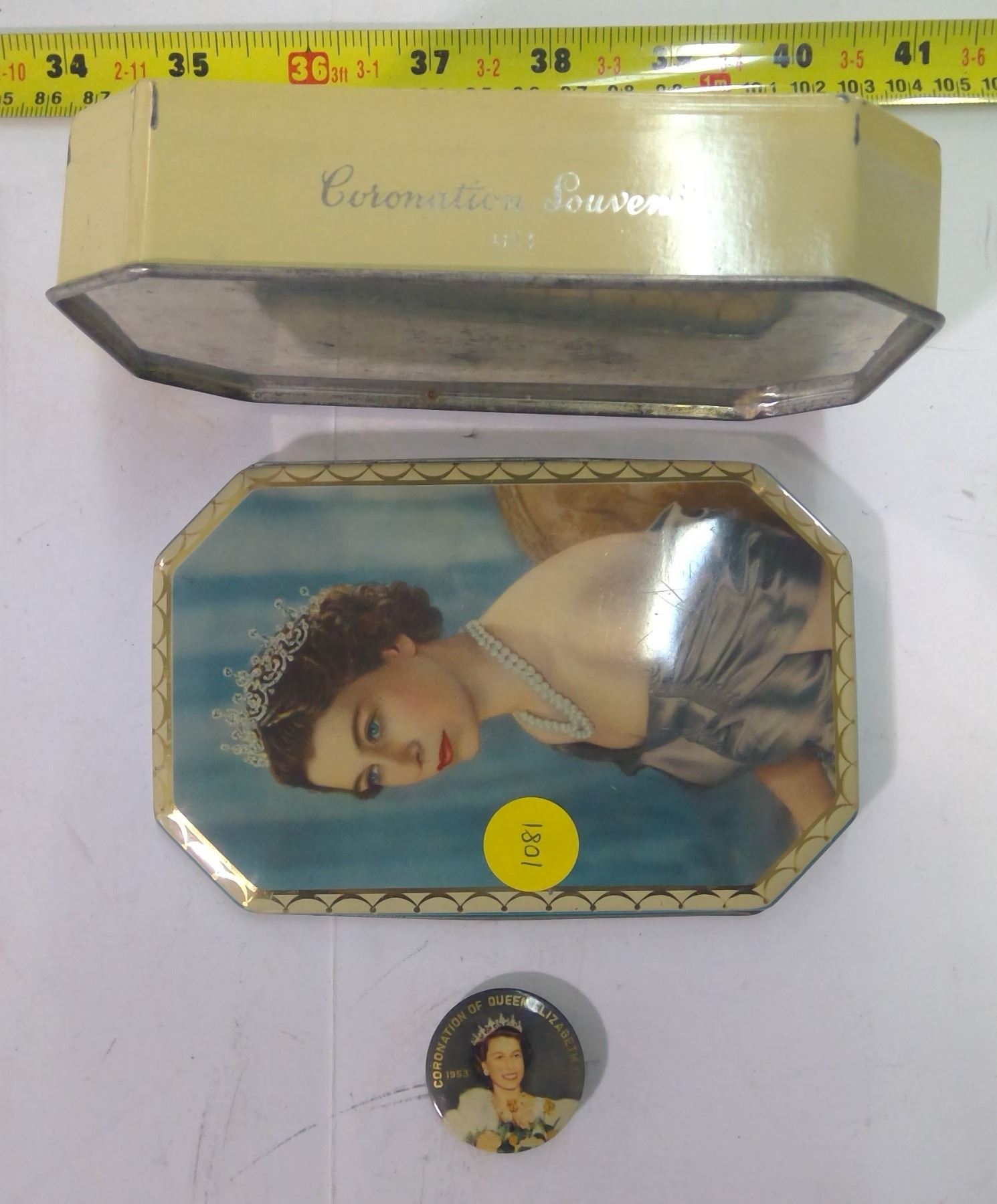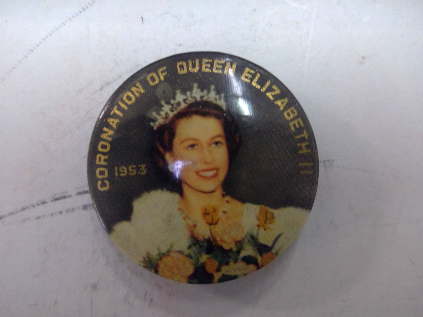 Vintage Tin - Queen Elizabeth II & 1953 Coronation Pin