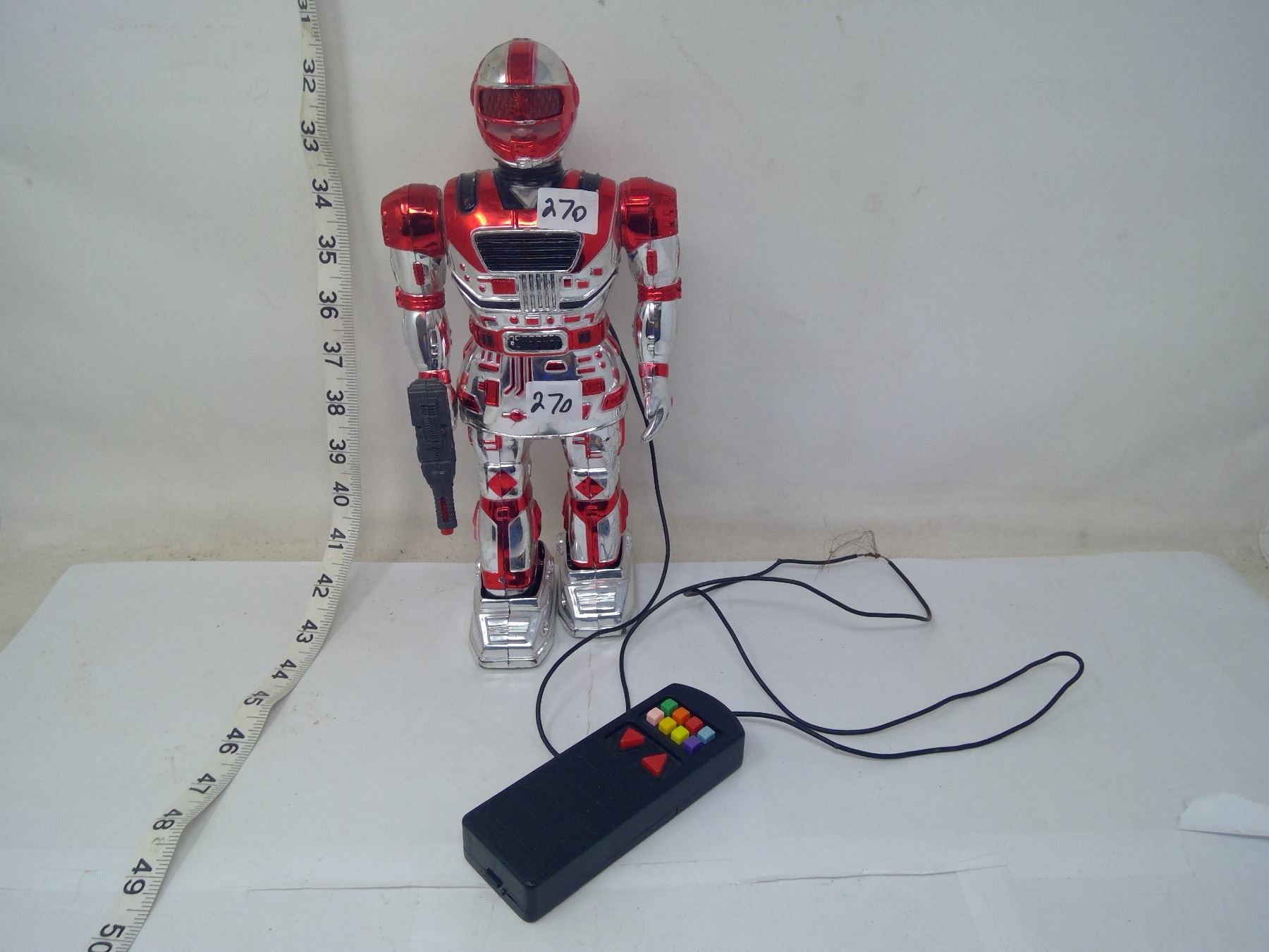 Vintage toy remote control robot, 1992, height 11”.