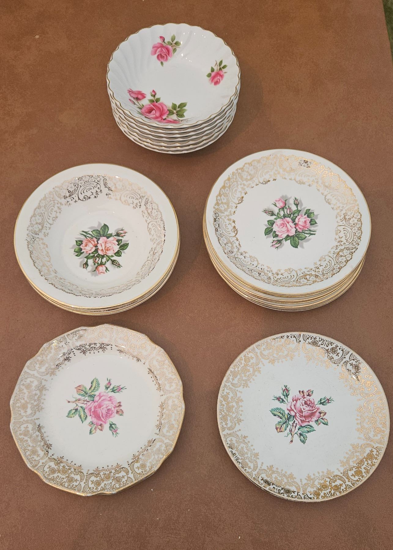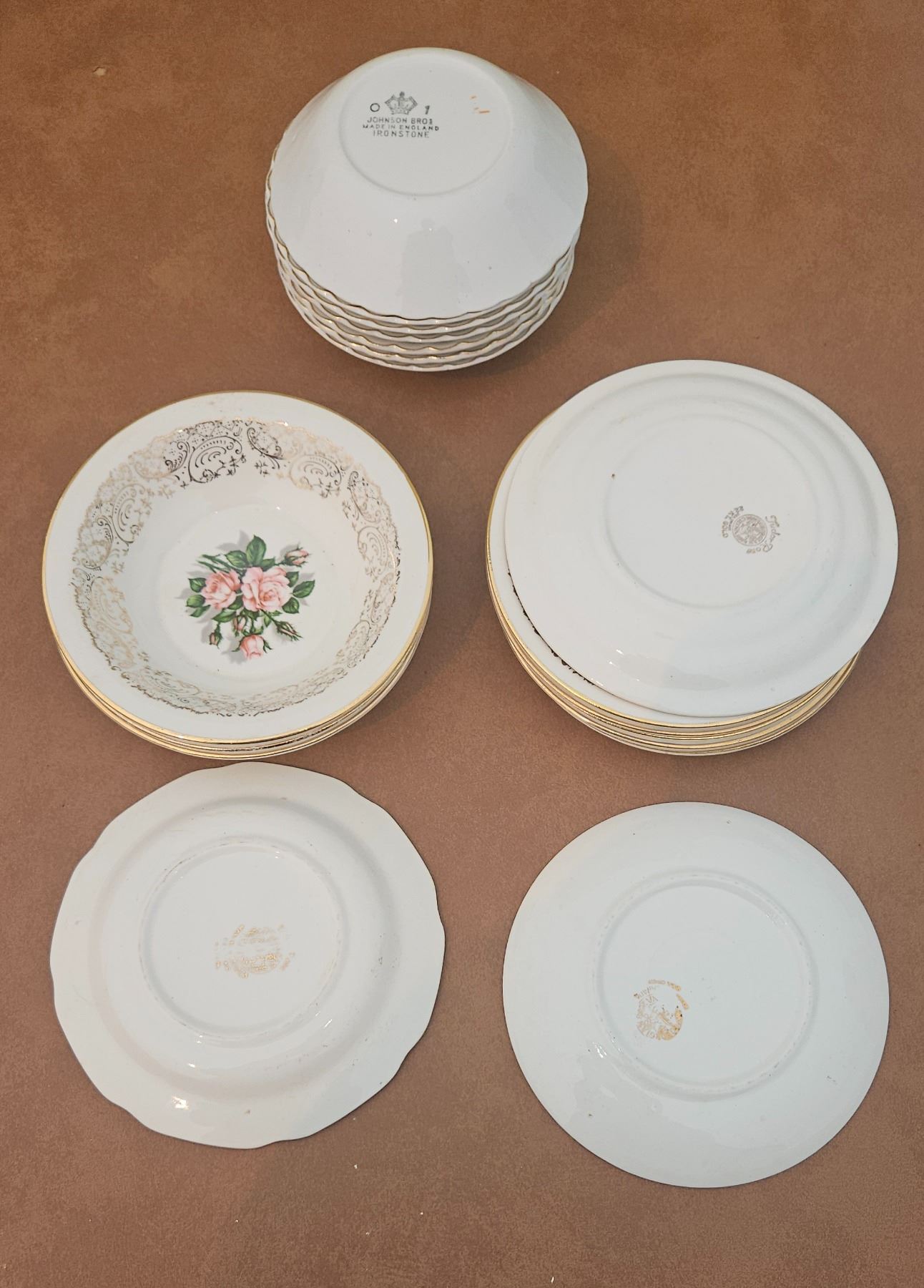 Vintage Tudor Rose Dishes - 7 plates, 3 bowls, 7 ironstone bowls