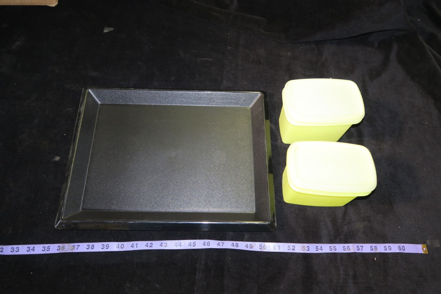 Vintage Tupperware Black Serving Tray 12"×15" & 2 Yellow Shelf Savers