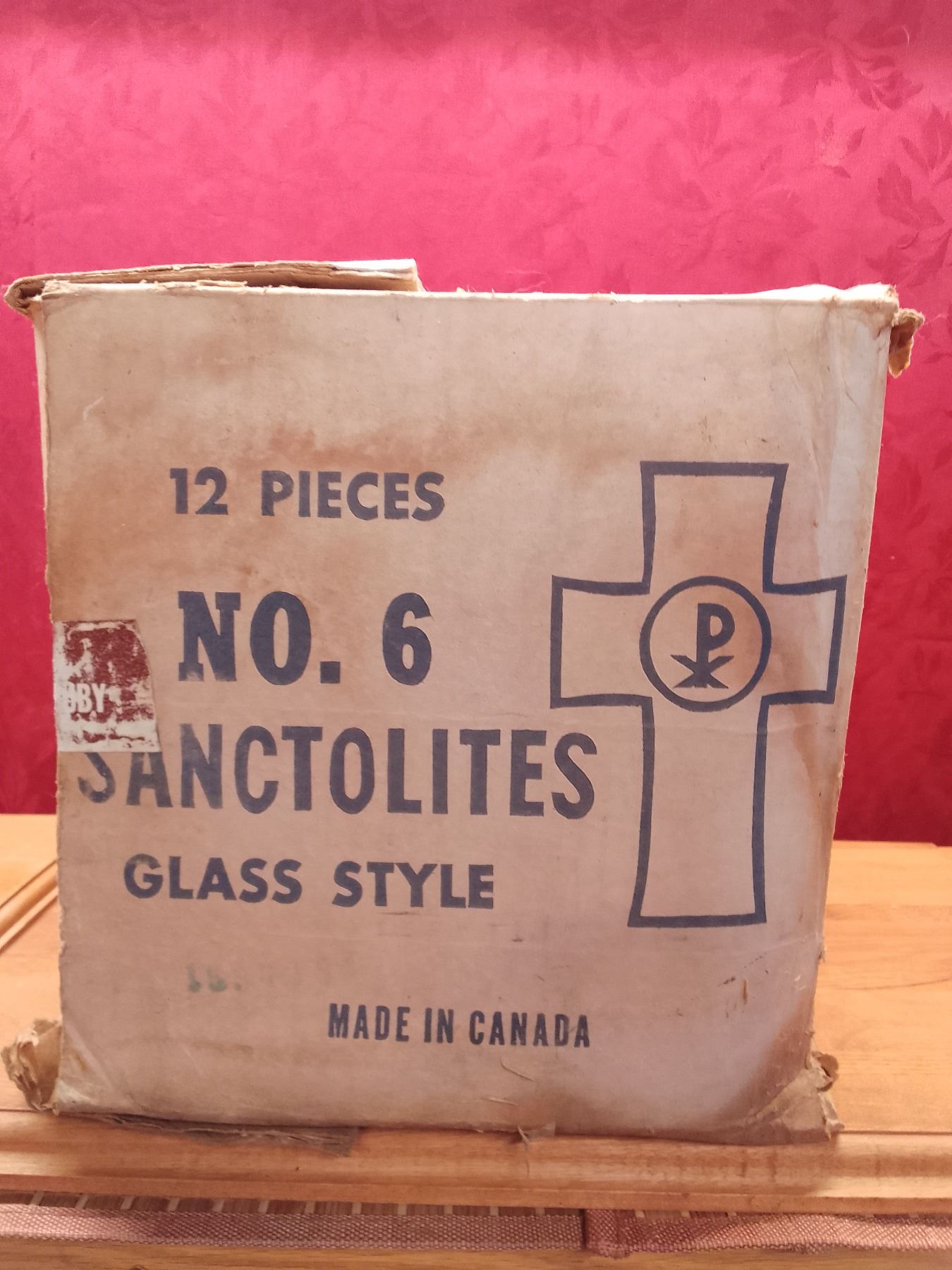 Vintage Used Will & Baumer Sanctolites Glass Sanctuary Lamps (8 pcs)- Eight vintage used Sanctolites glass-style sanctuary candle jars from Will & Baumer Candle Co. Limited, Laval-des-Rapides/Montreal, Quebec. Classic embossed devotional lights, empty and ready for refill or display; from original case of 12.