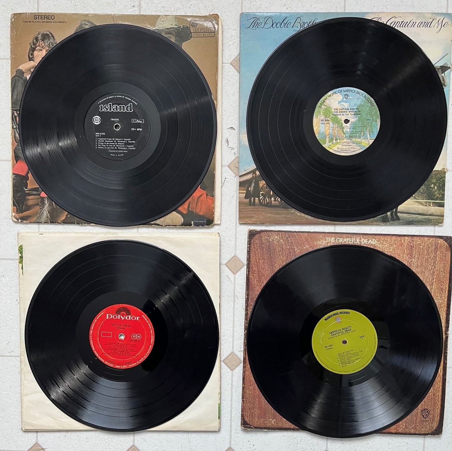 Vintage Vinyl Records (4). Cream, Traffic, Doobie Brothers, Grateful Dead.