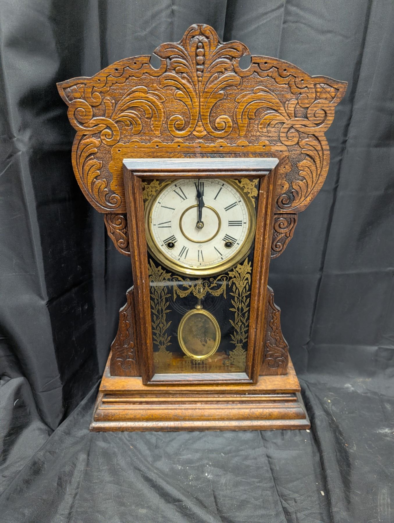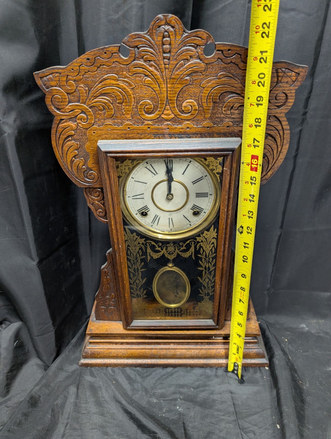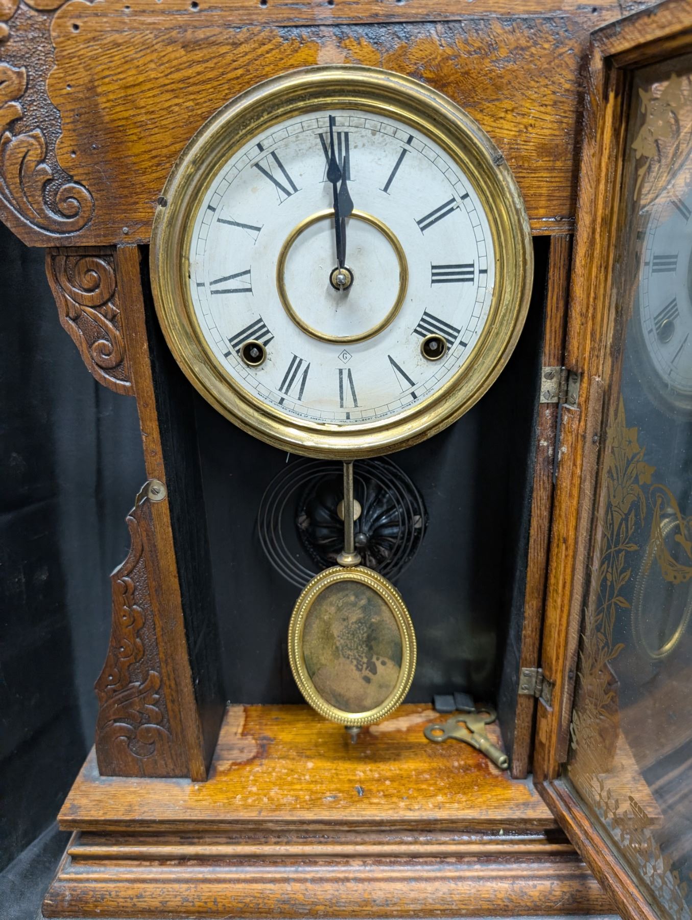 Vintage WM.L.Gilbert Clock Co. Wood Wall Clock 23"x14"x4"