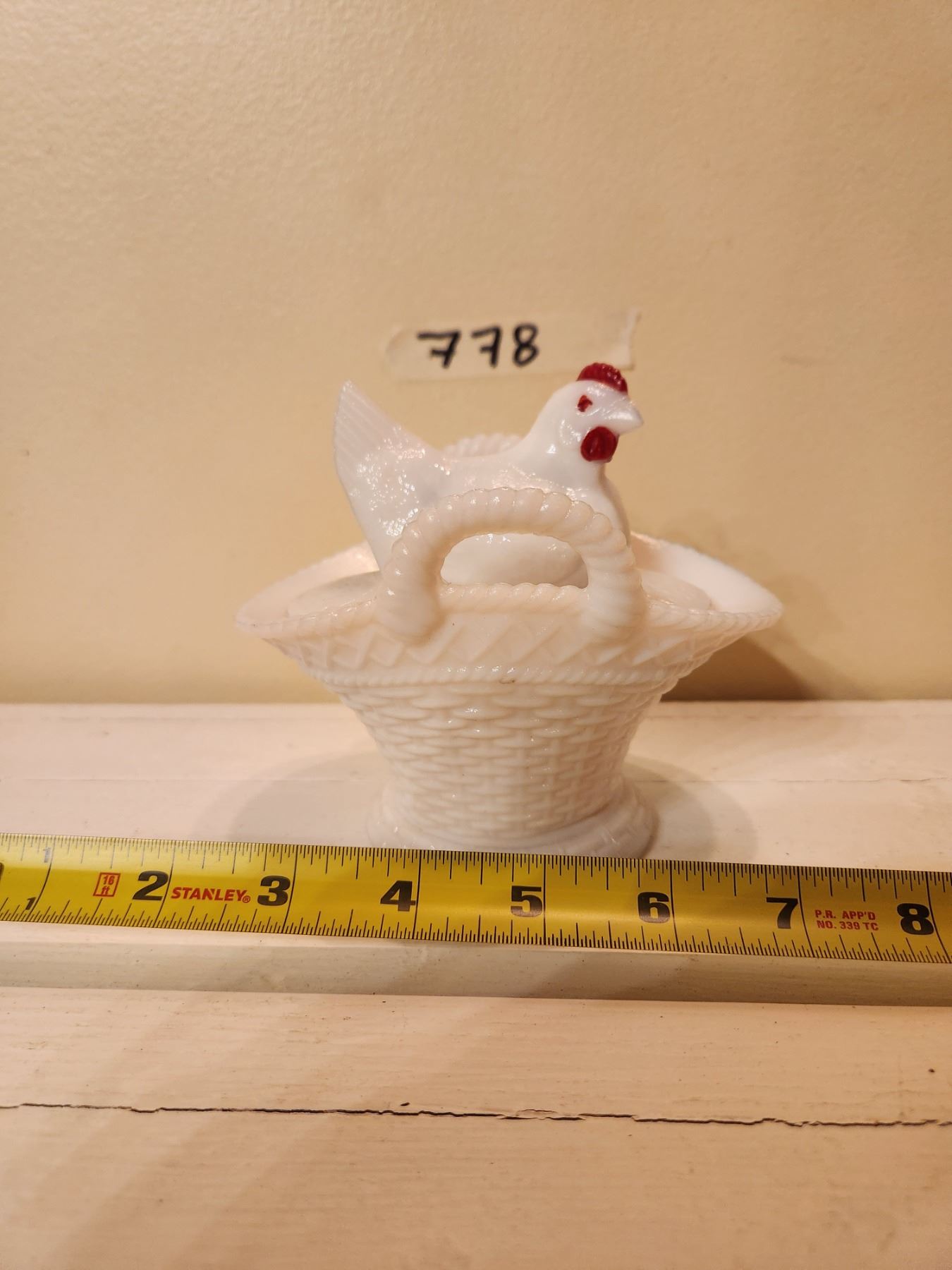 Vintage Westmoreland Milk Glass Chicken on a Basket Candy Dish