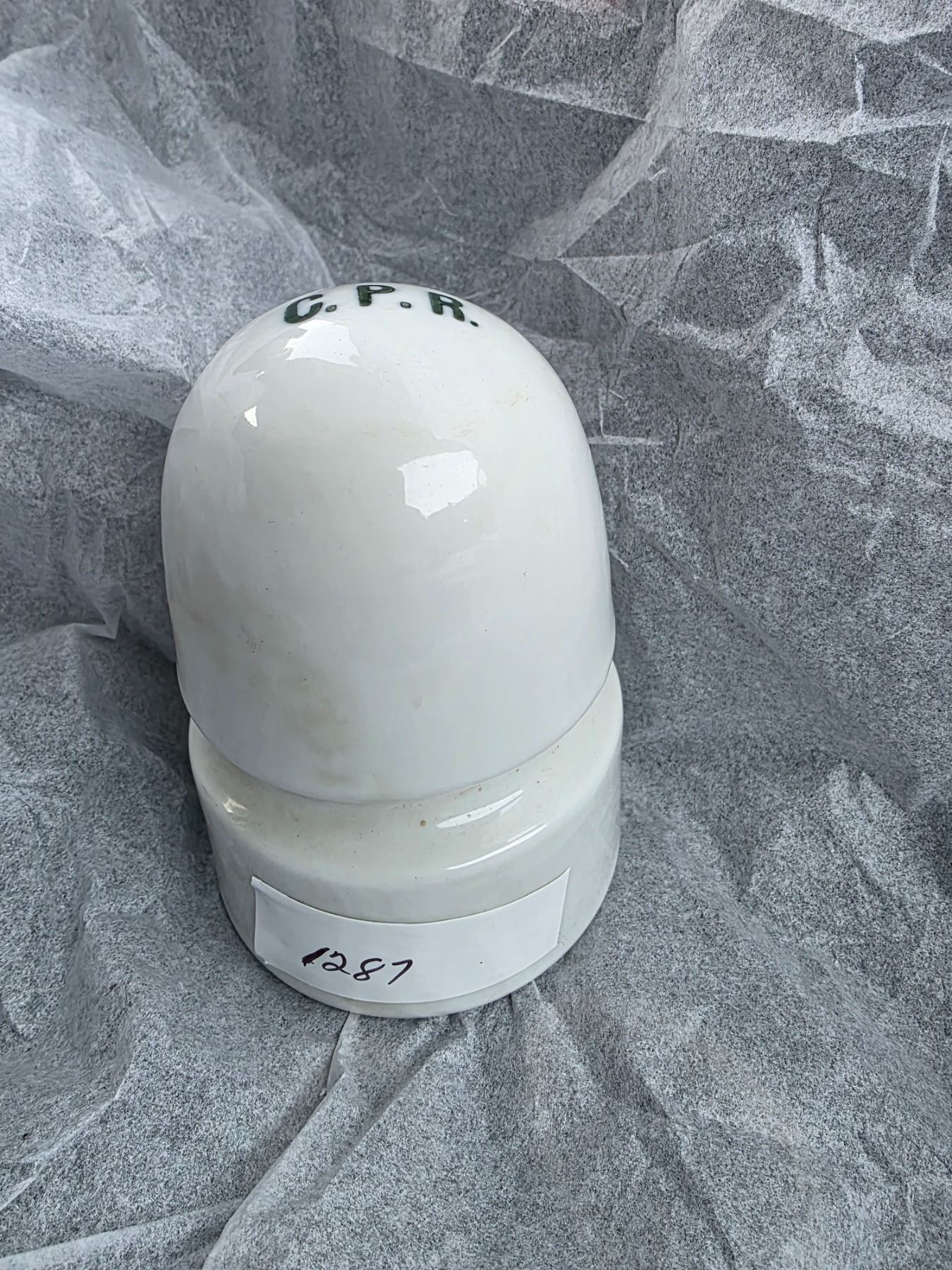 Vintage White Porcelain C.P.R Electrical Insulator