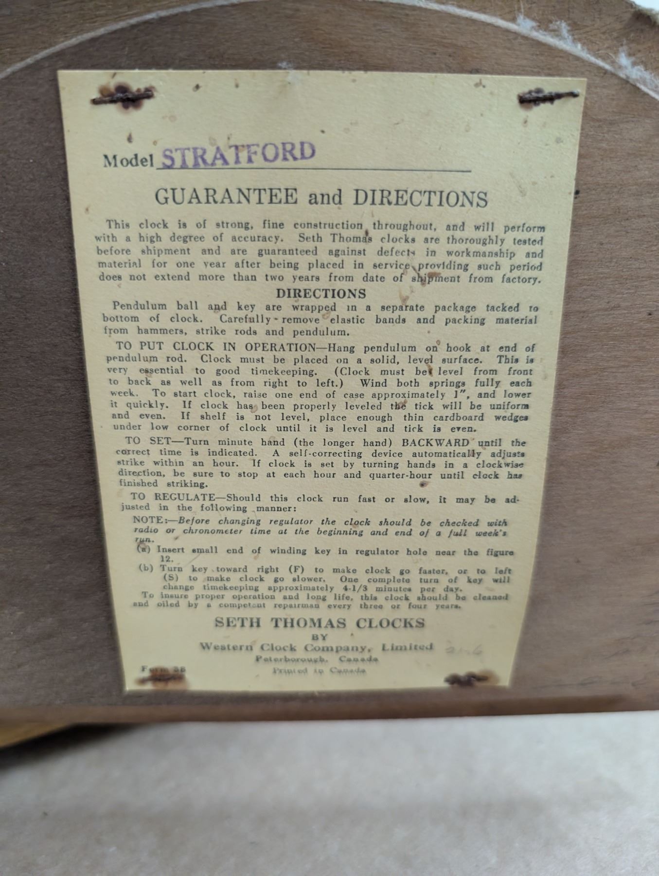 Vintage Wood Seth Thomas Made in Canada Clock (Not Working) July 19th 1948