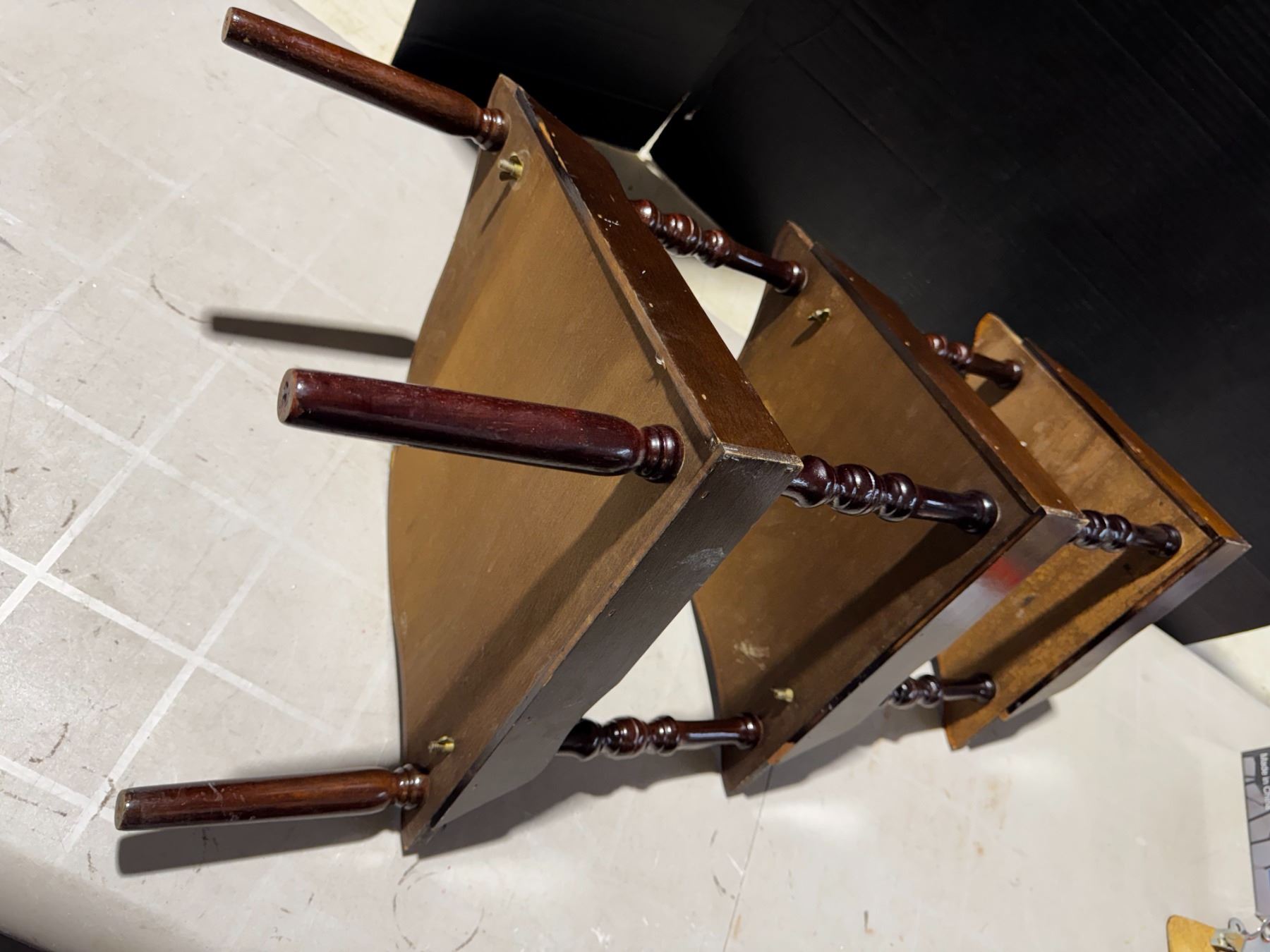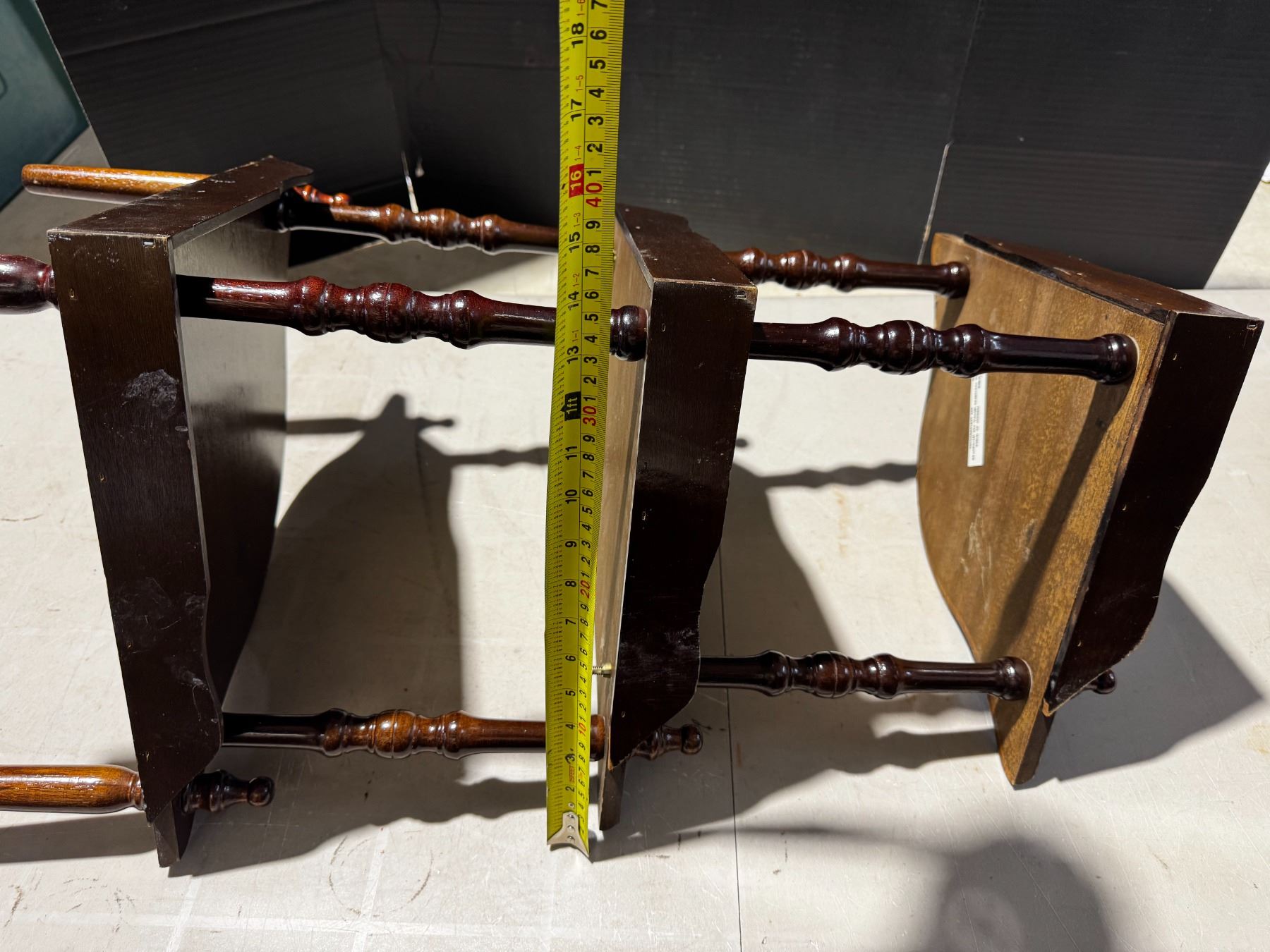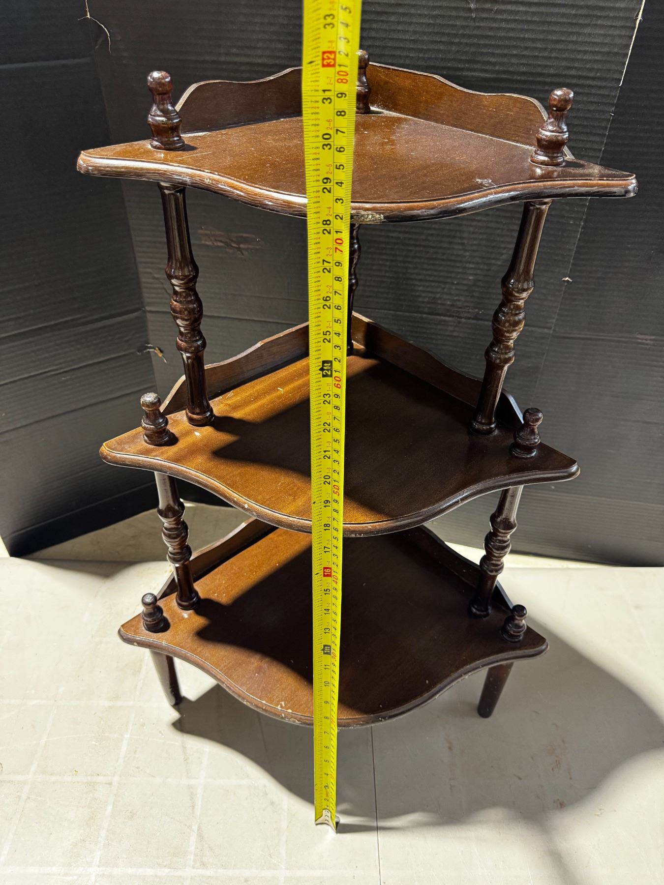 Vintage Wood Spindle Corner Hanging Standing Shelf 3 Tier Wood Table.