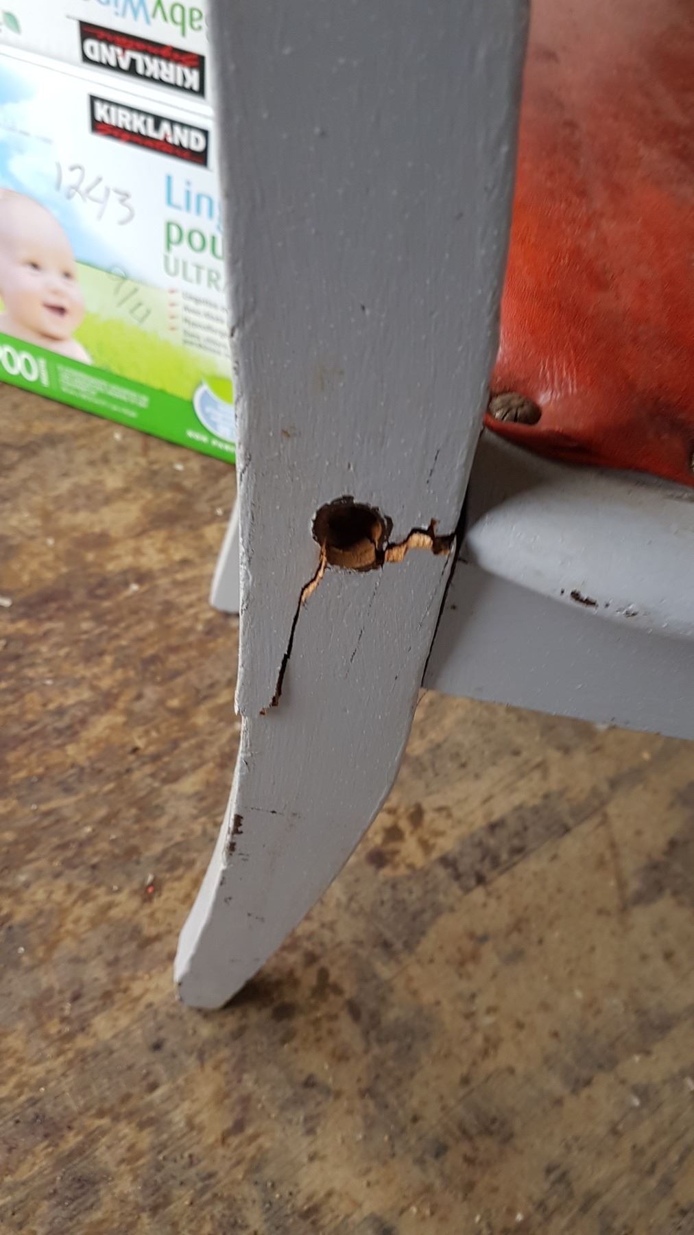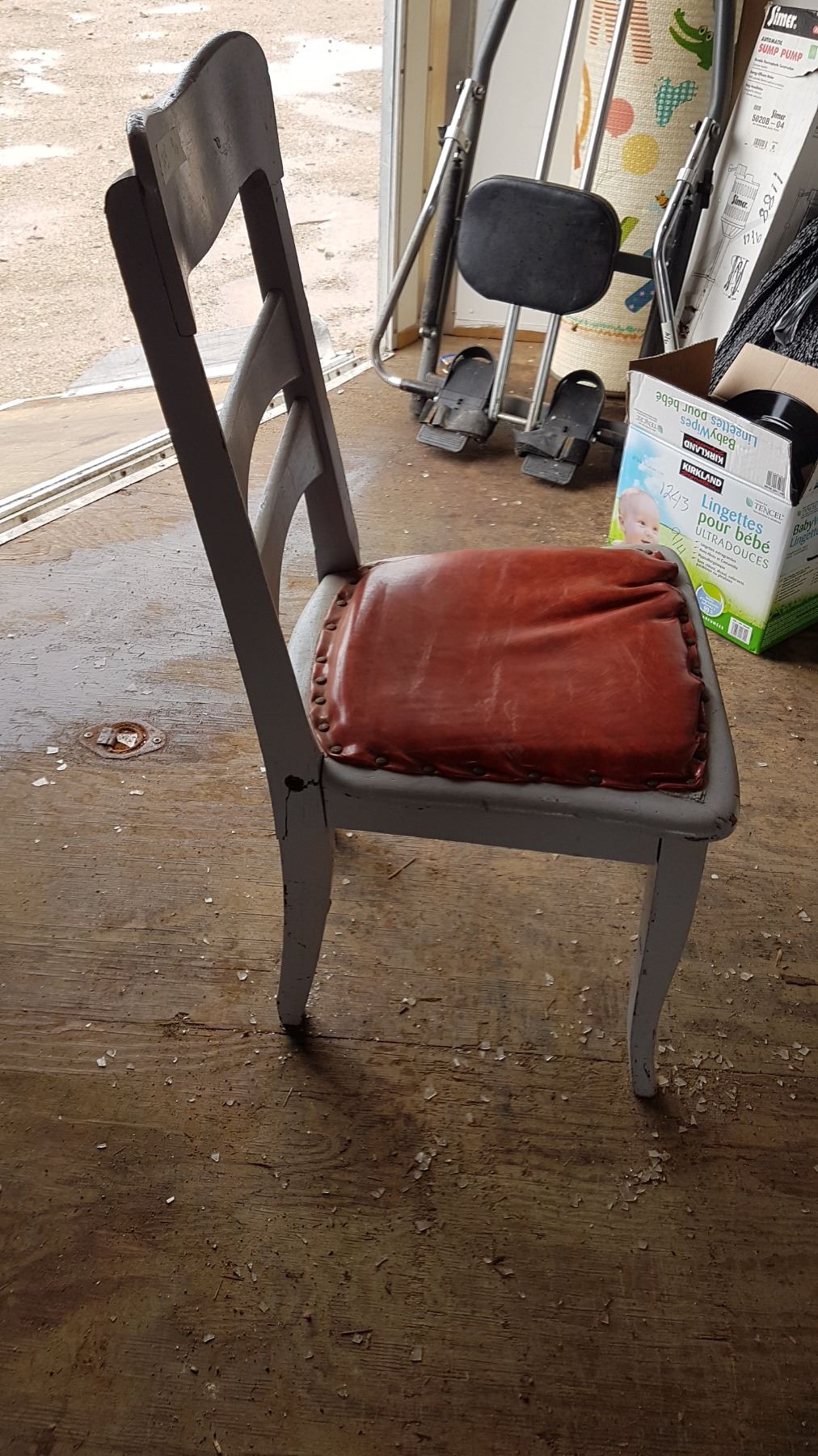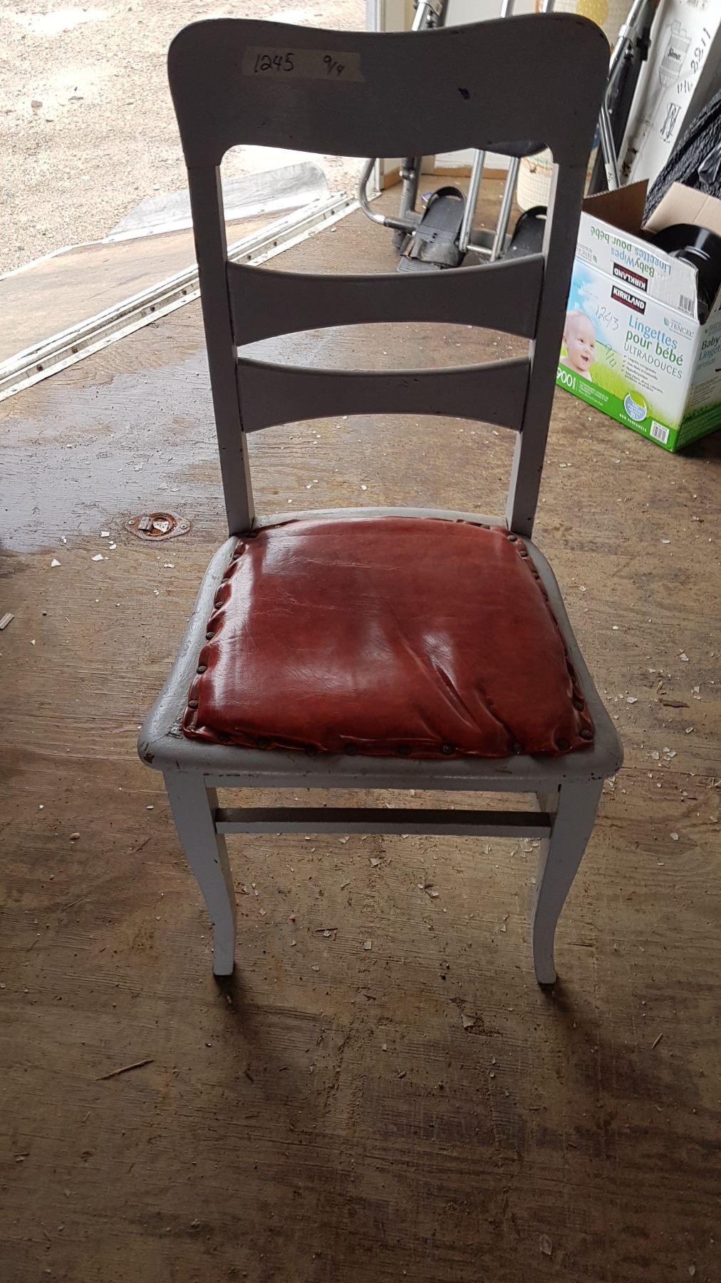 Vintage Wooden Chair With Leather Seat (Some Damage)