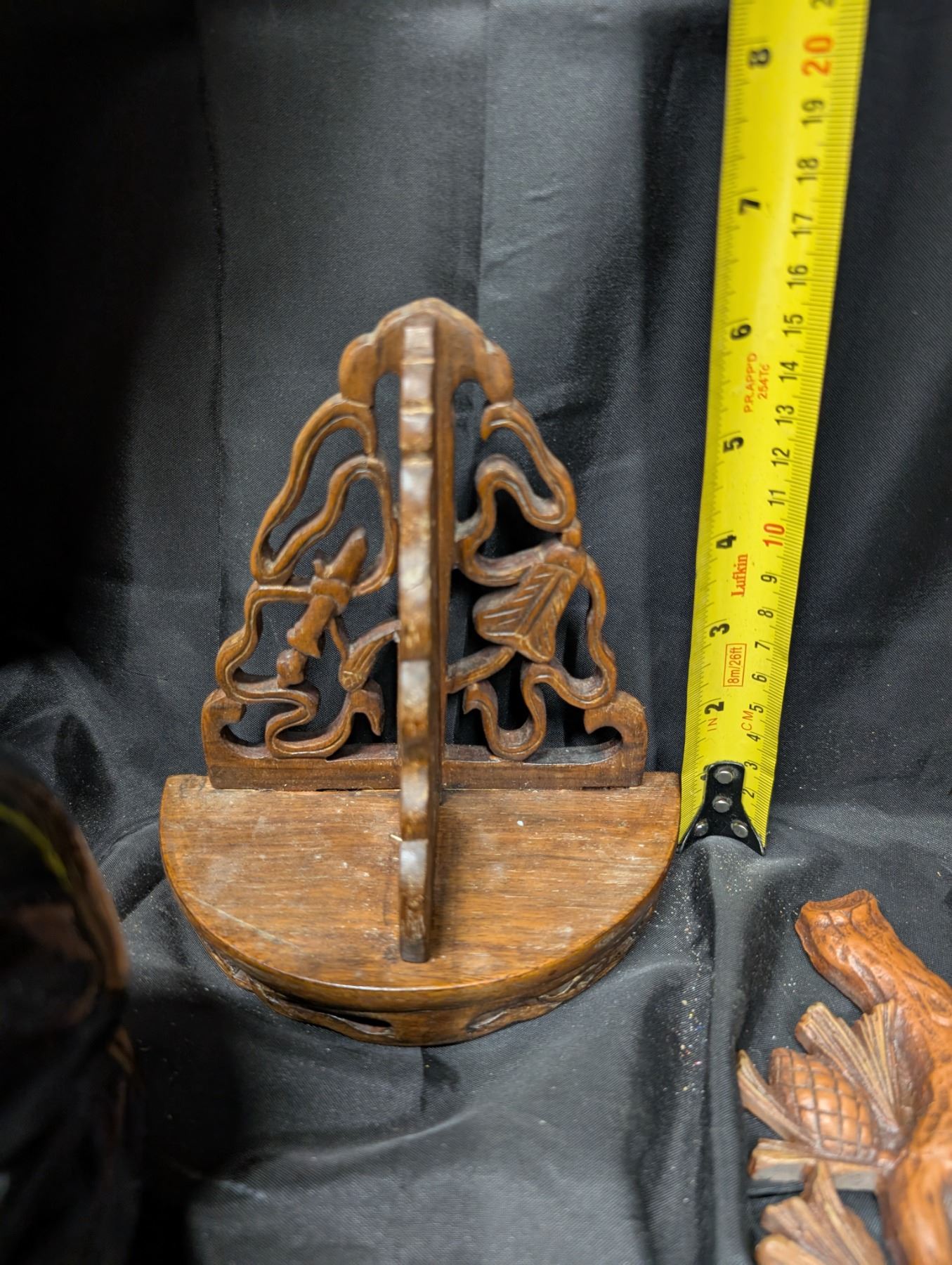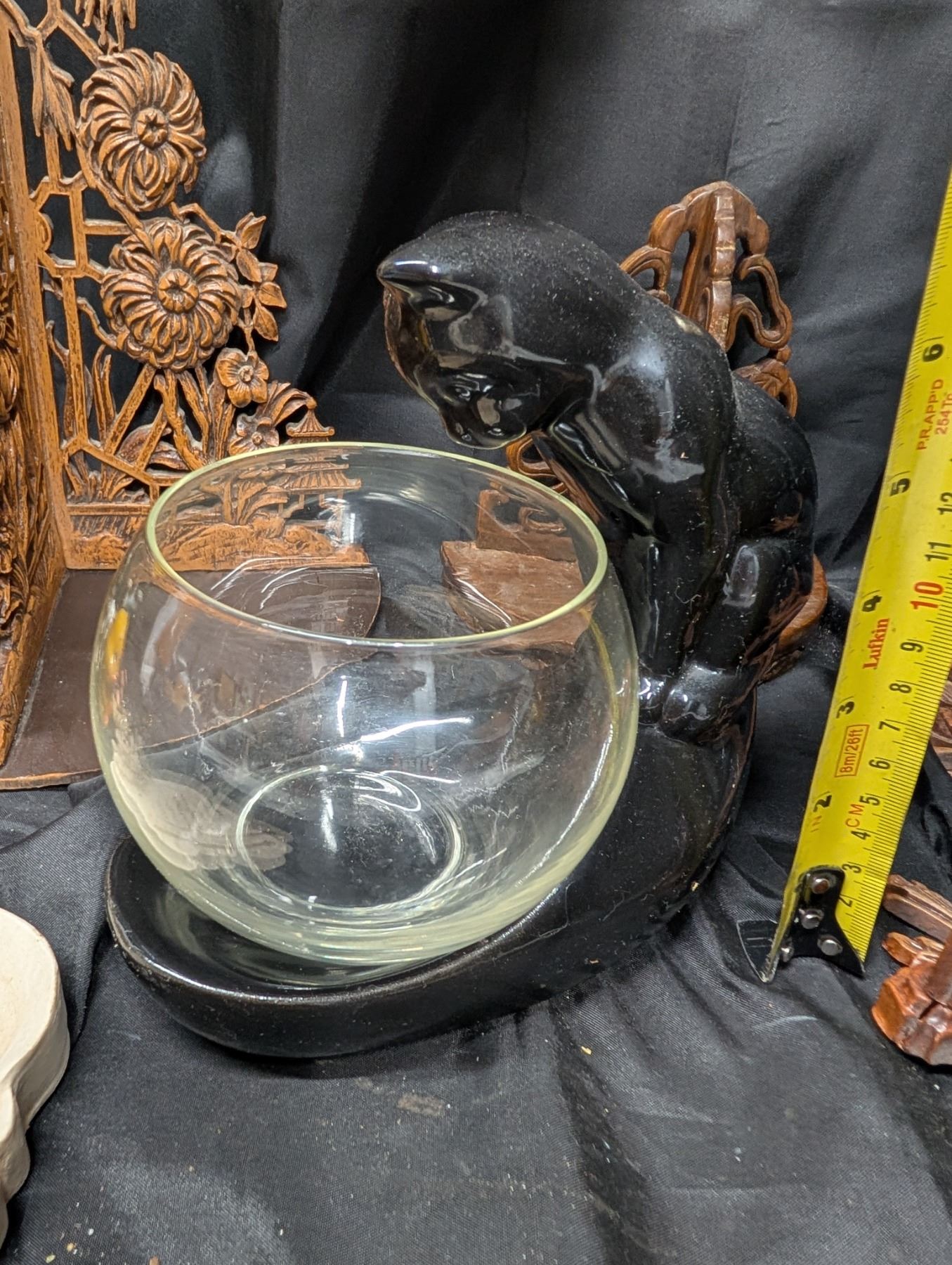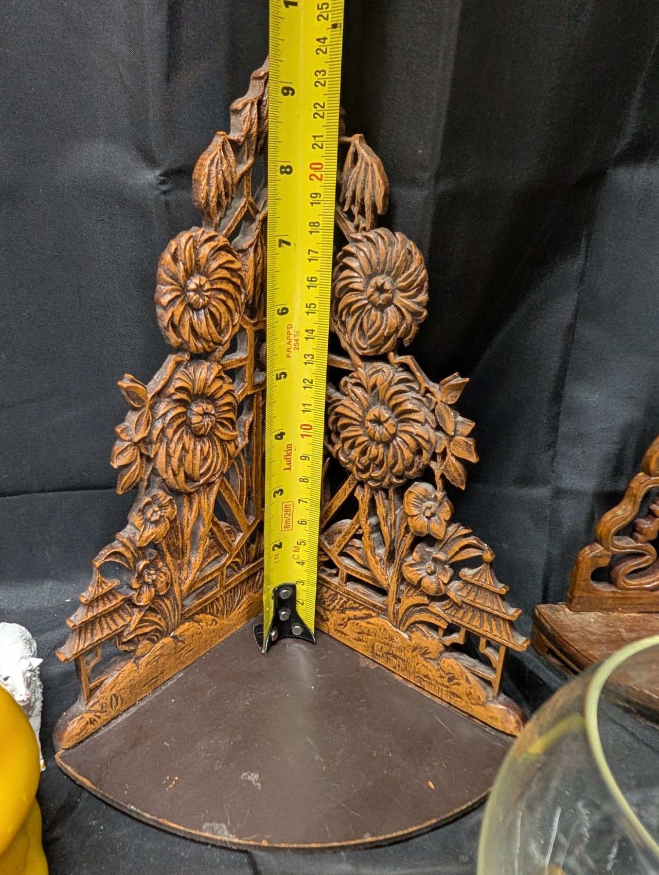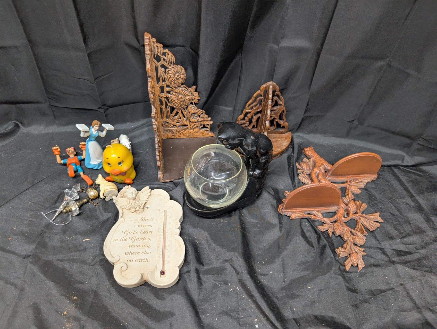 Vintage Wooden Corner Shelf Pieces, Cat Fish Bowl Design, and Misc.