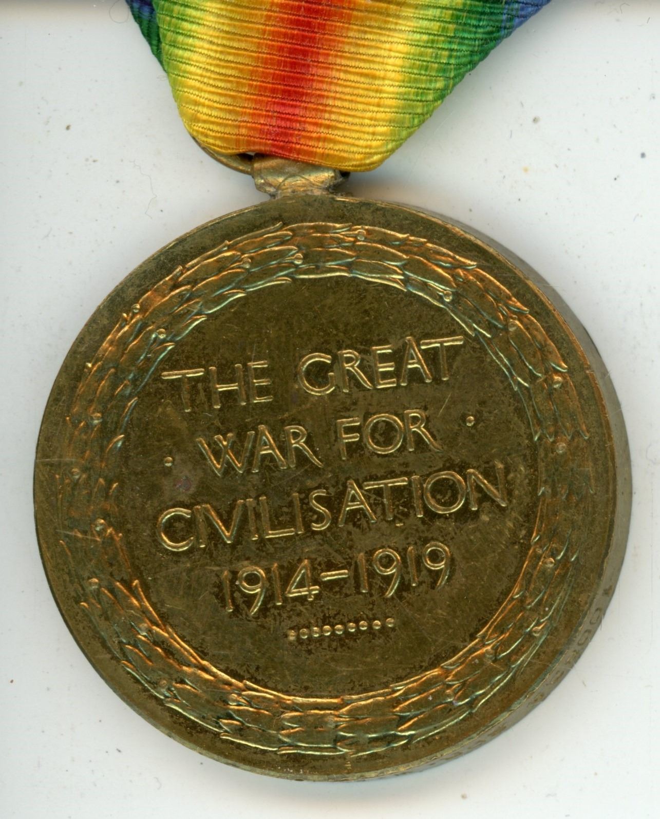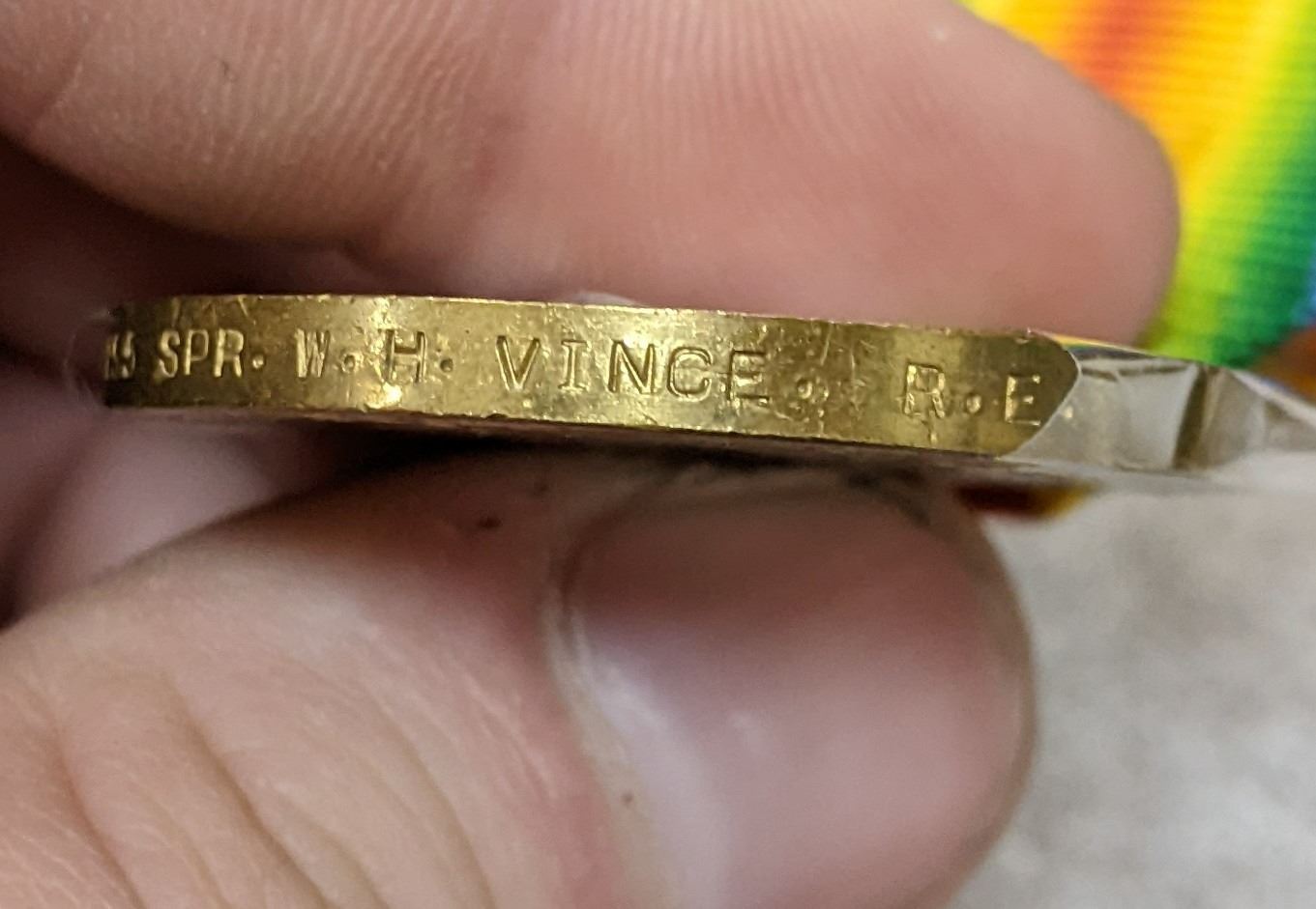 Vintage World War I Victory Medal - edge marked "100895 SPR. W.H. Vince R.E"