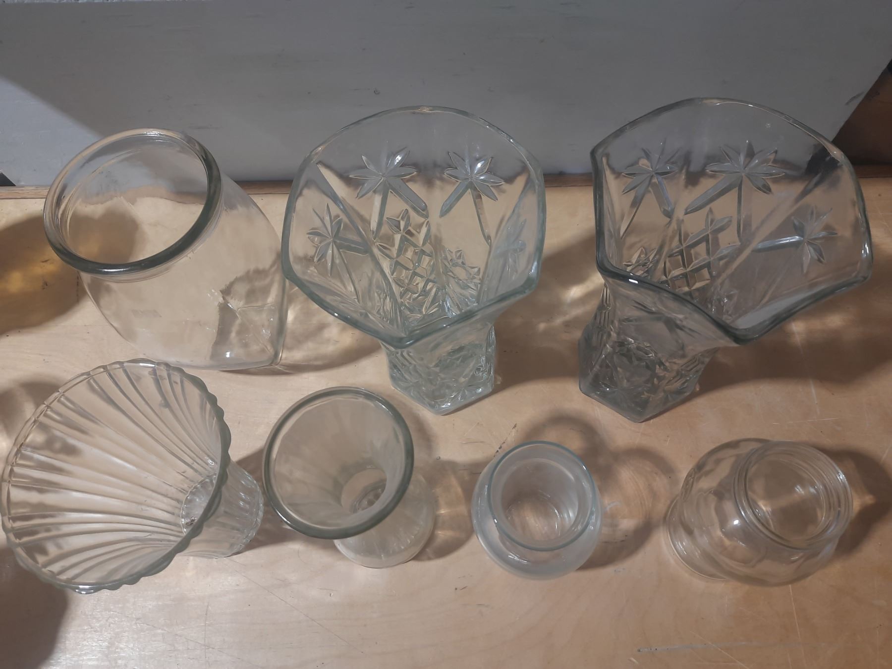 Vintage and antique glass collectibles, likely featuring patterns such as starburst, sunburst, or St