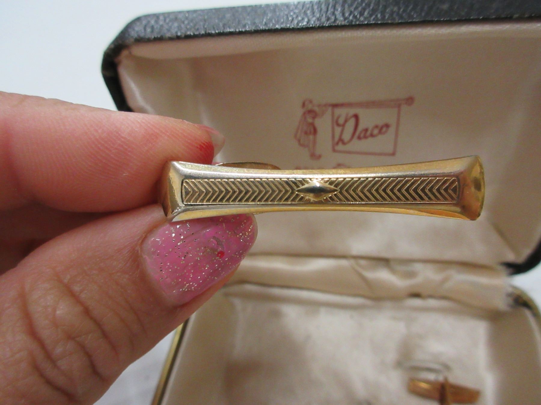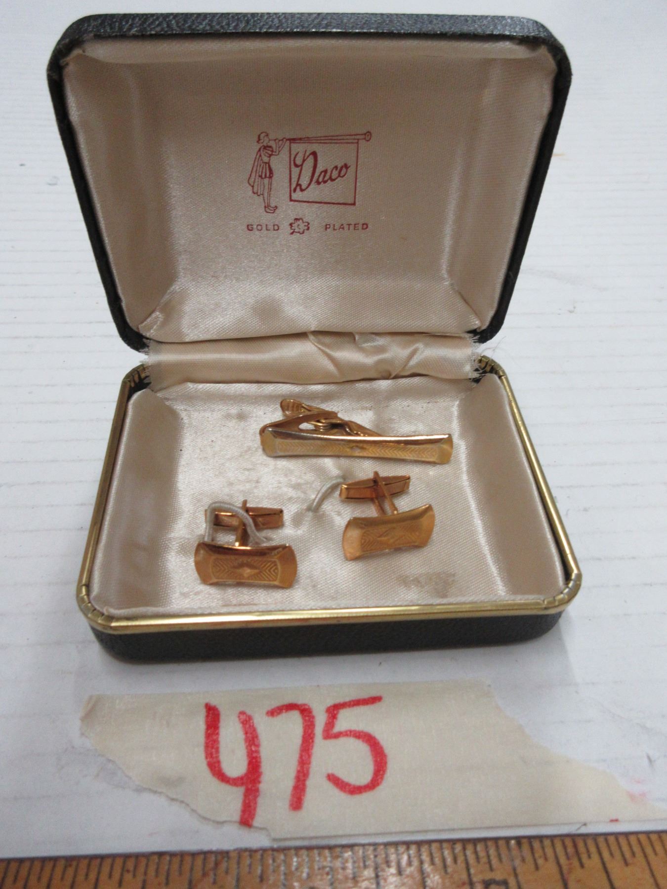 Vintage art deco gold plated cufflinks and tie clip set