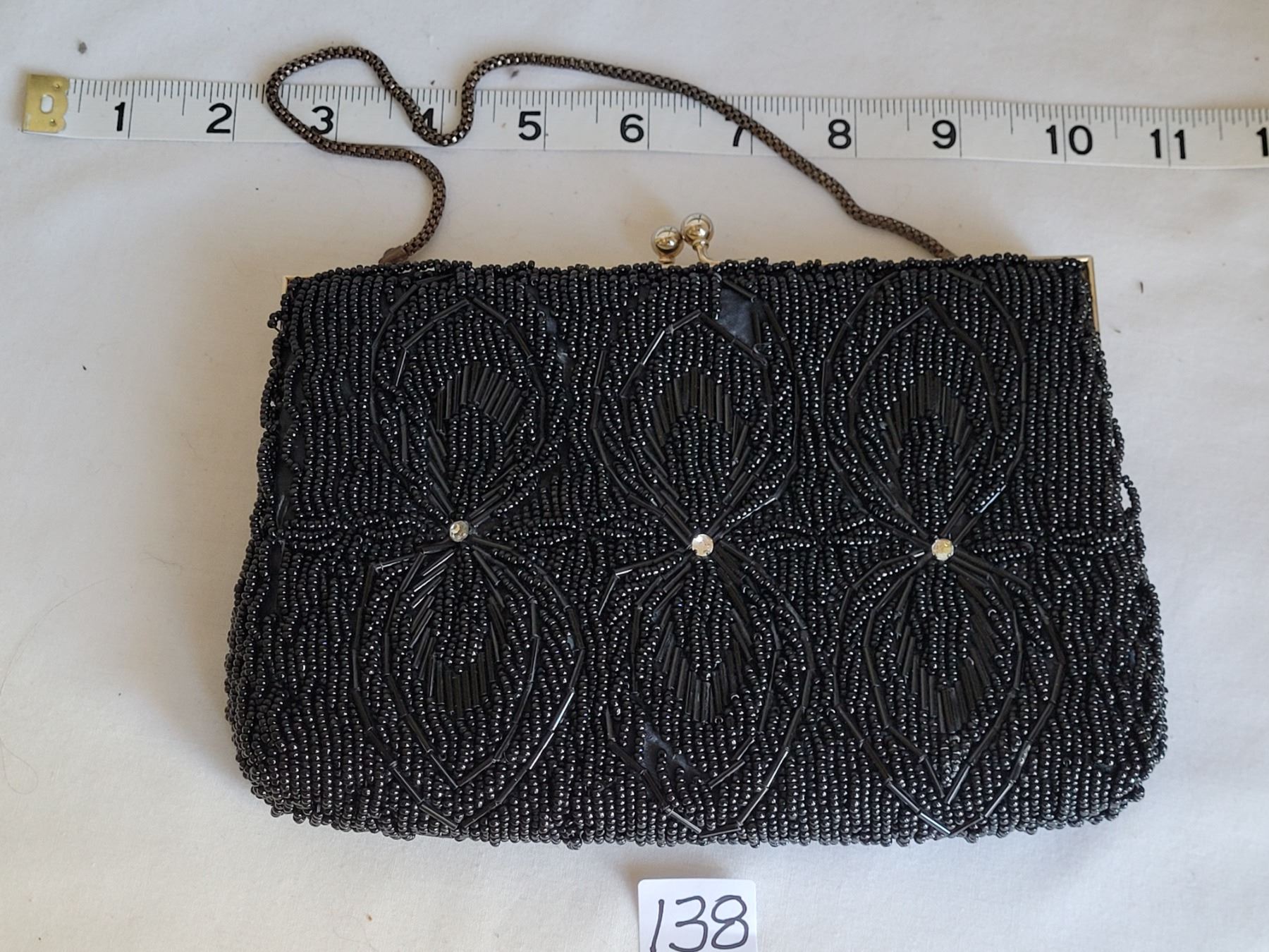Vintage beaded clutch with hidden carrying chain.