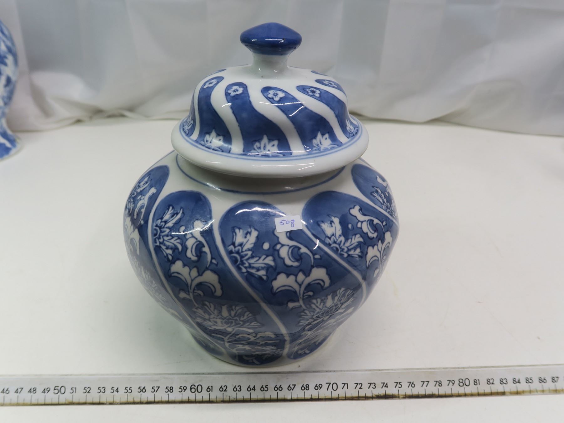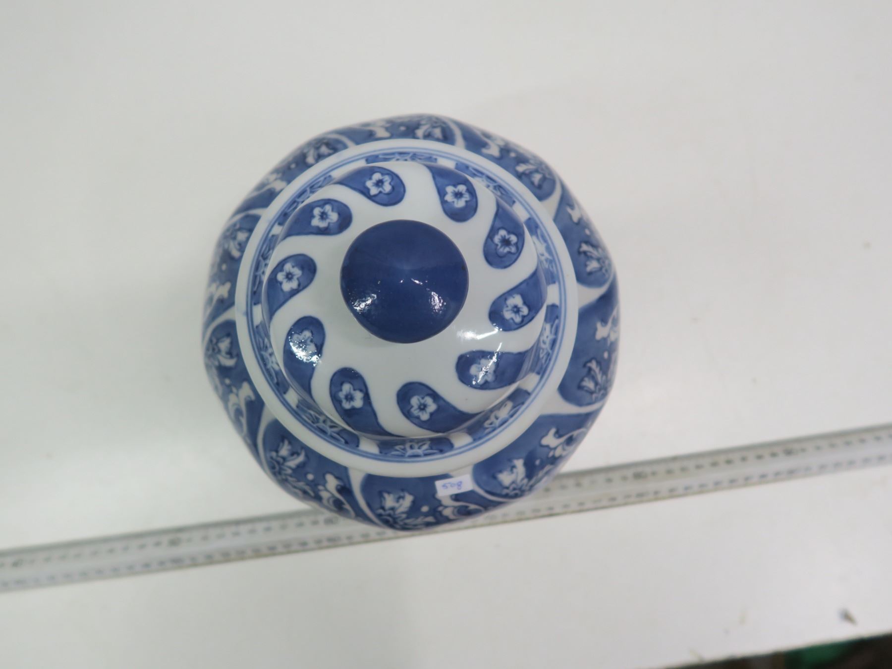 Vintage blue and white oriental ginger jar pumpkin shape country house interier (25cm tall)