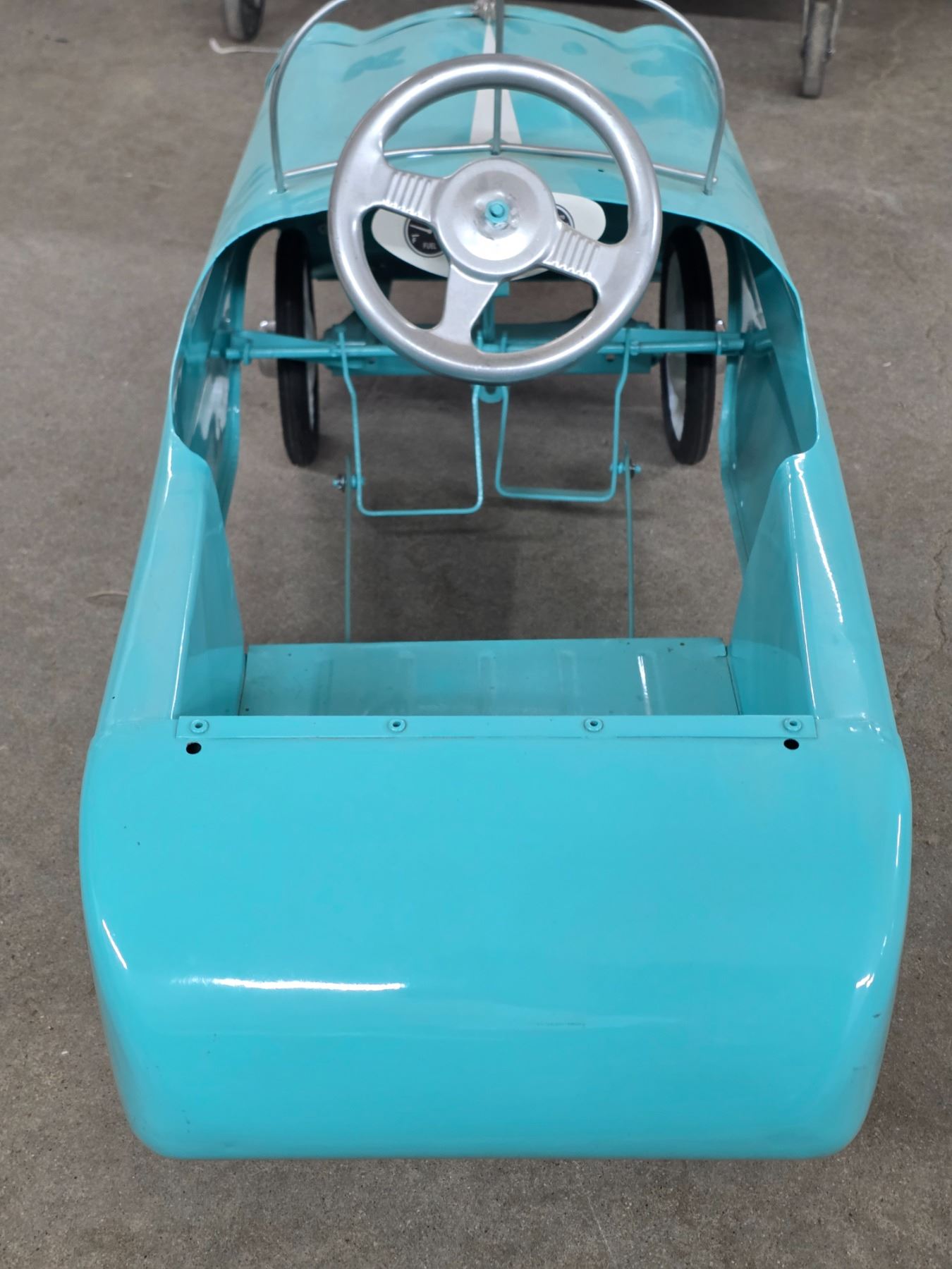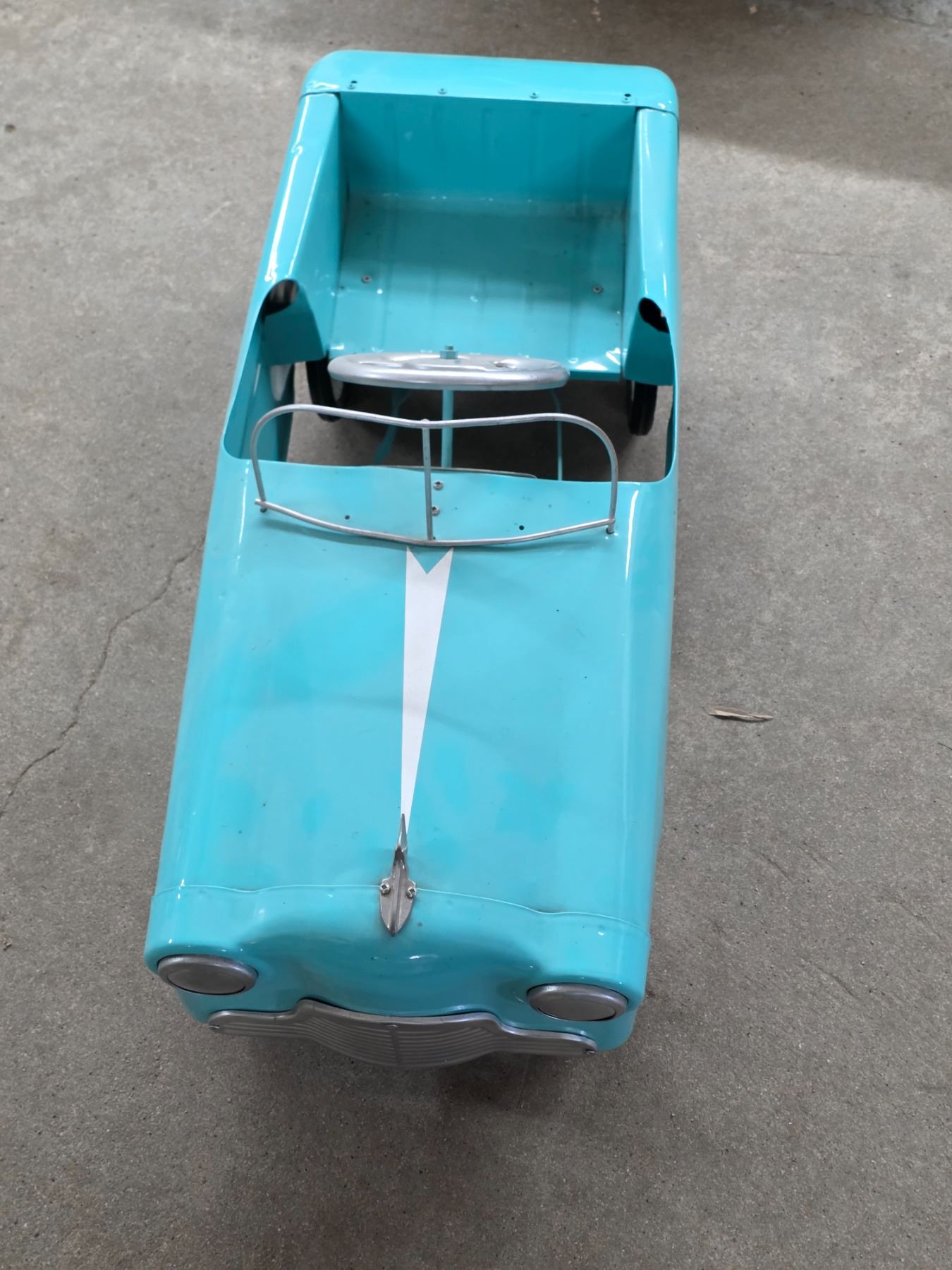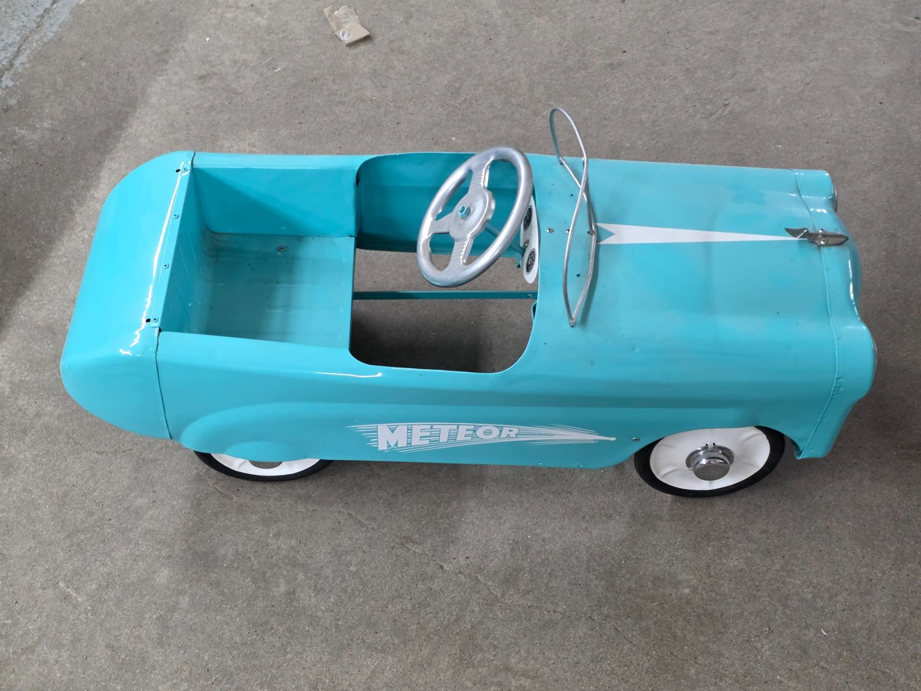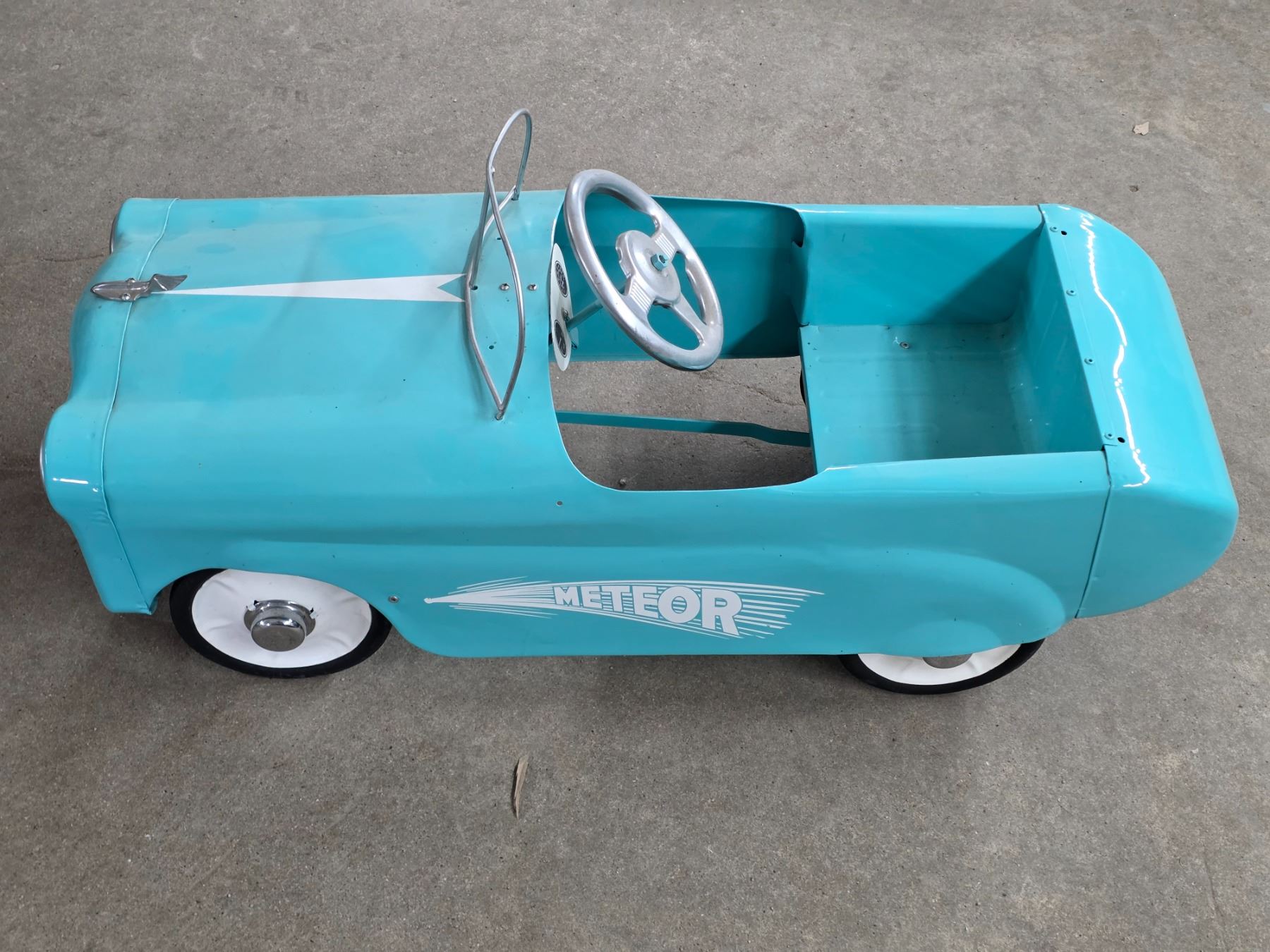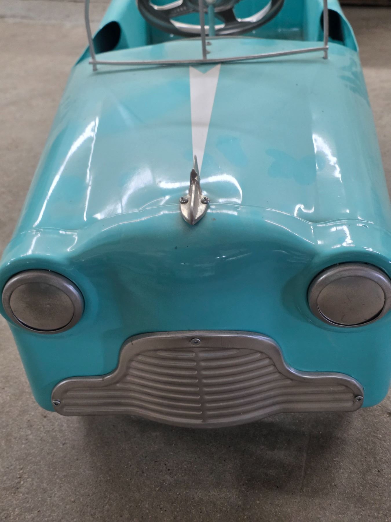 Vintage blue metoer pedal car- 36" by 14" by 15"H