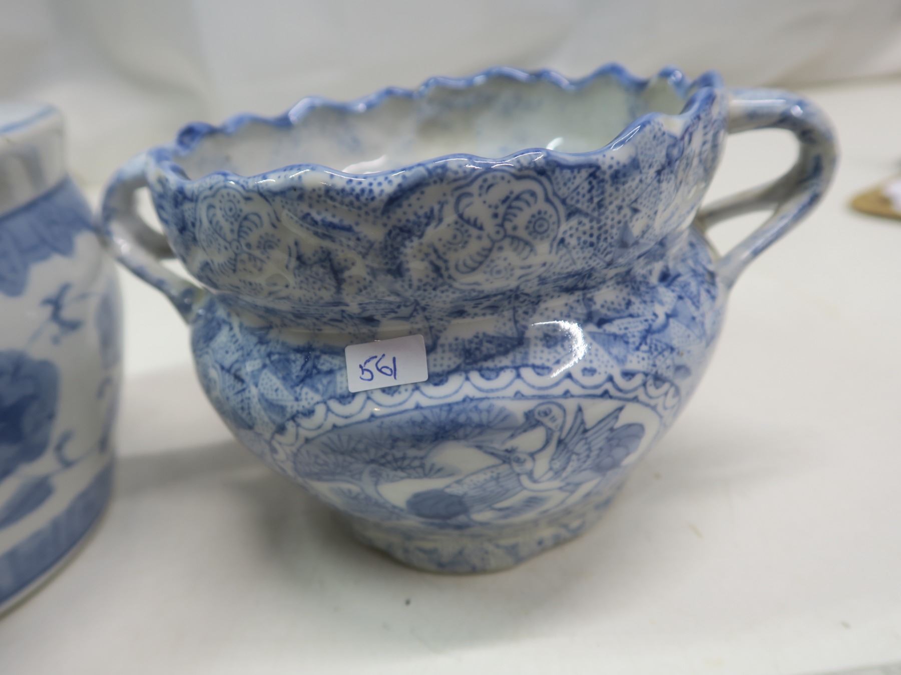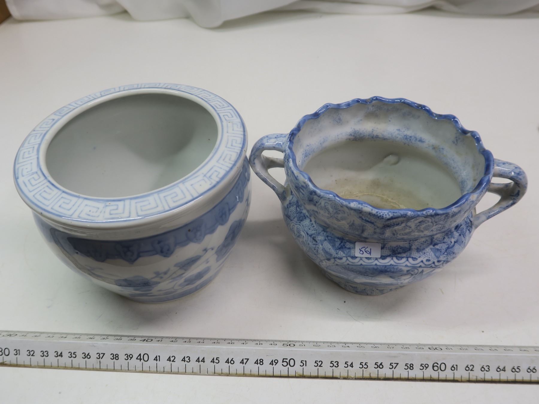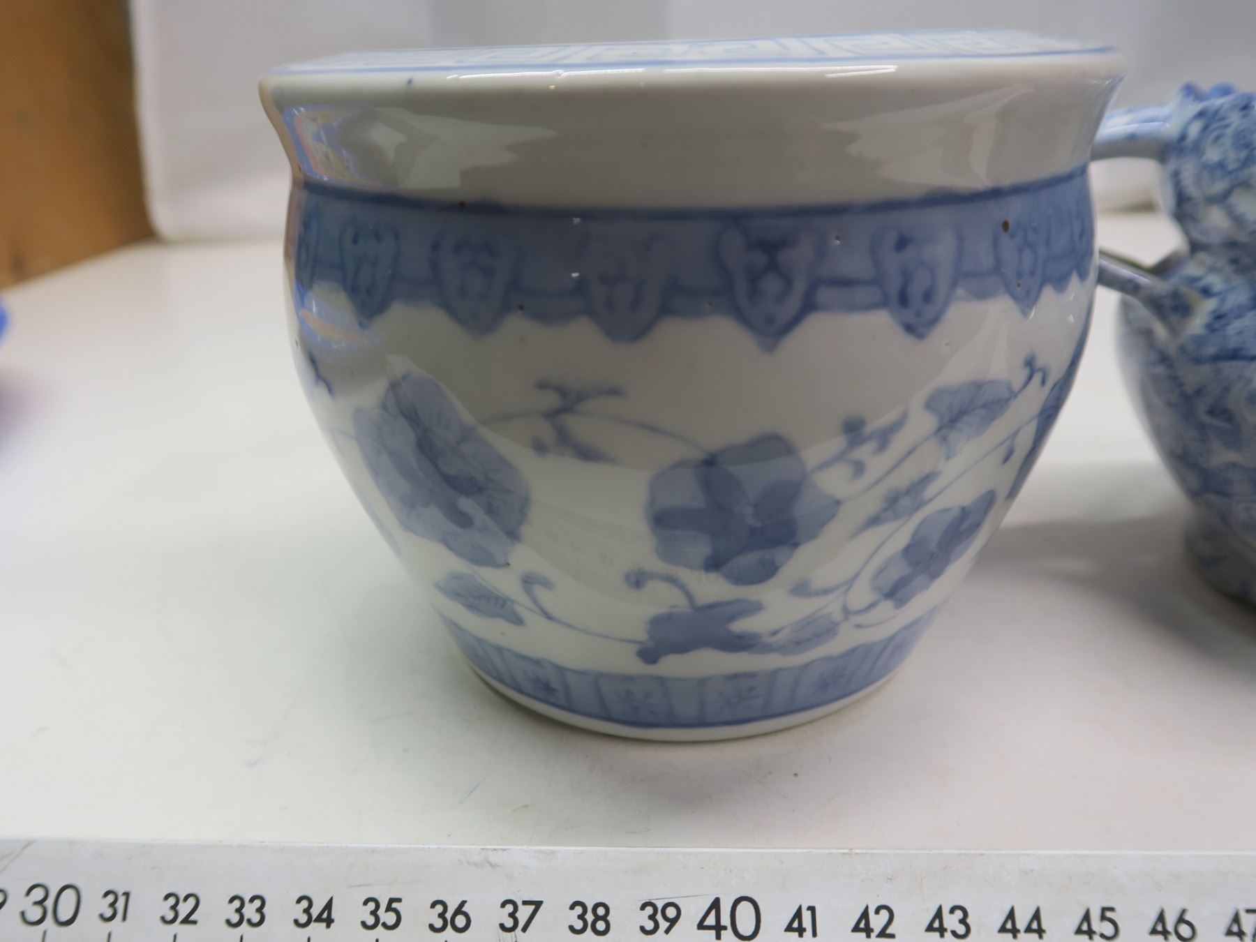 Vintage blue & white tureen style vessel/ vintage chinese porcelain fish bowl planter