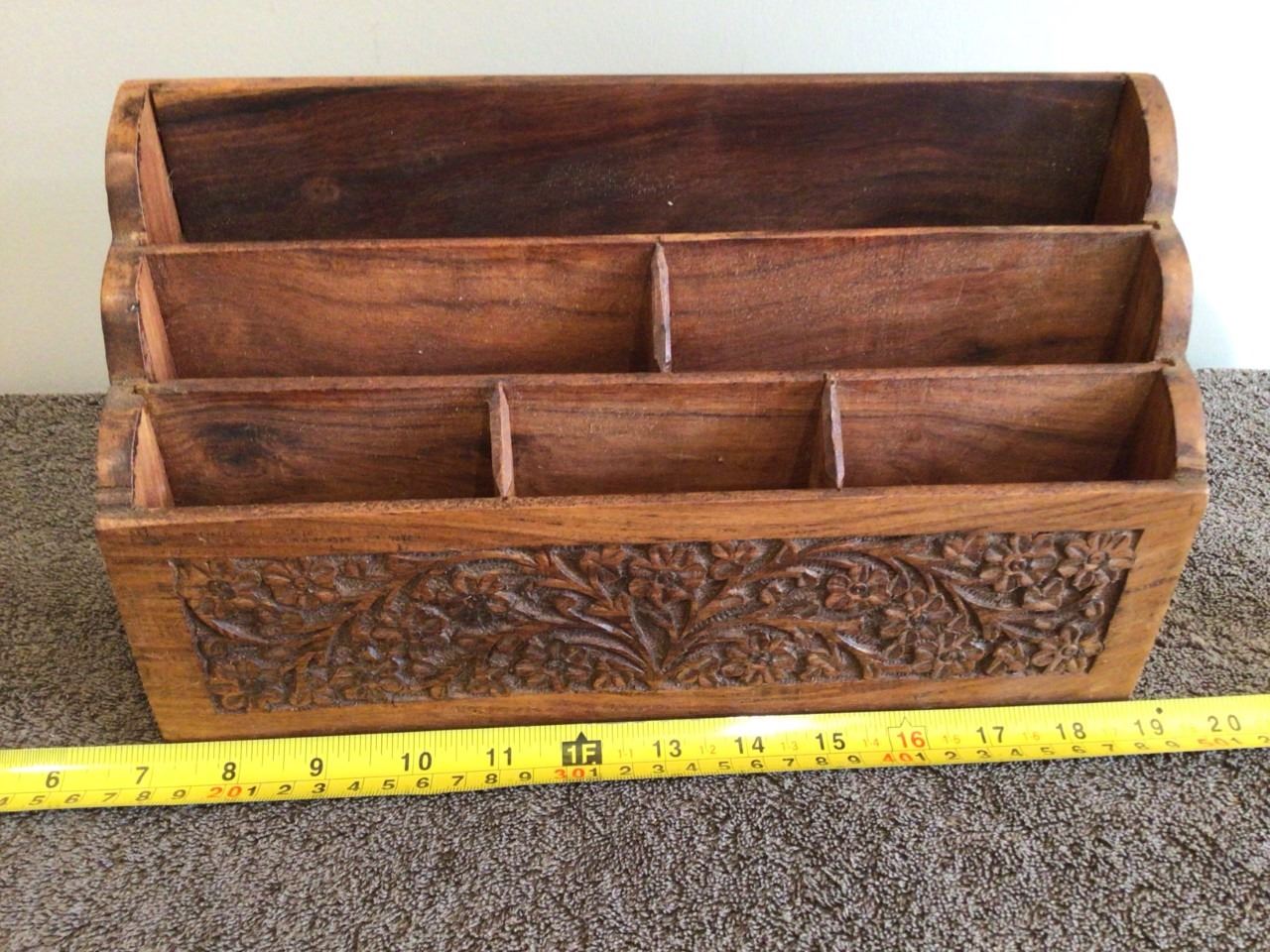 Vintage carved wood letter holder. Heavy