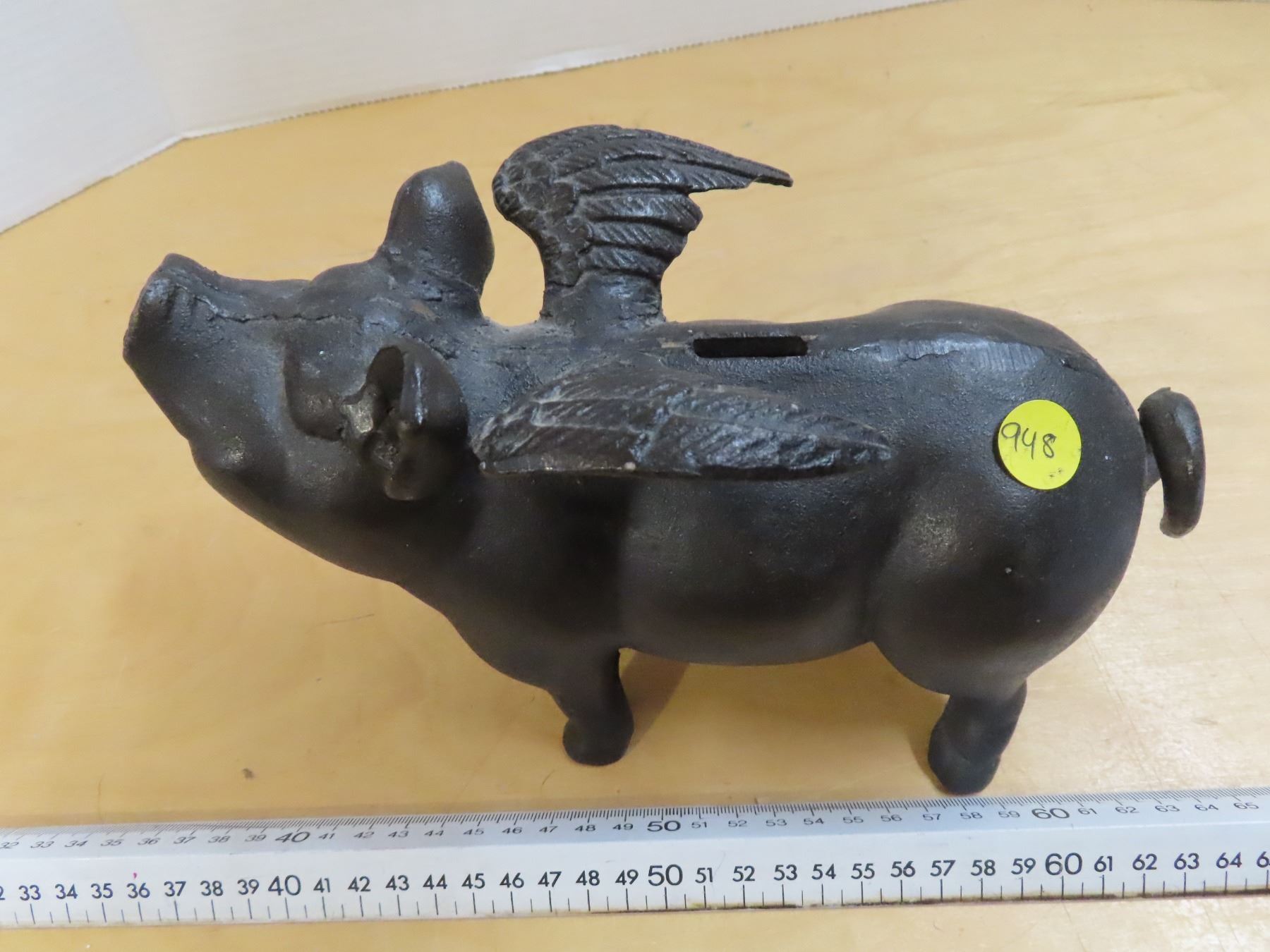 Vintage cast iron flying pig piggy bank